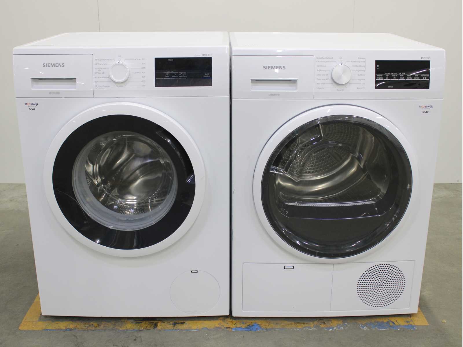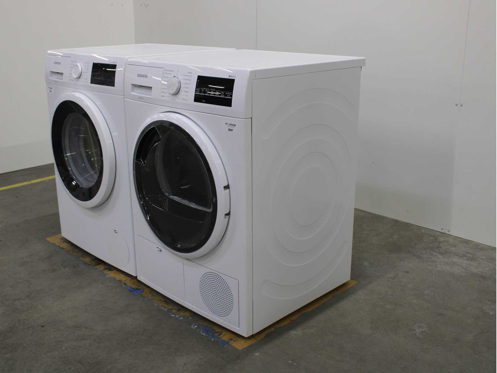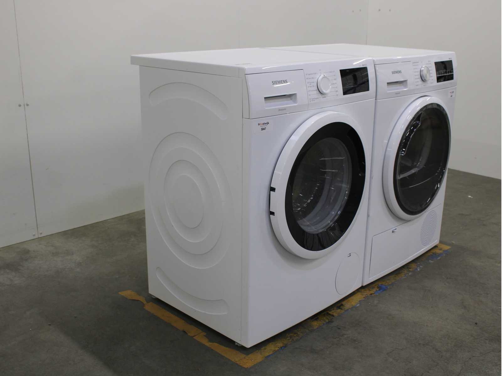 Deze wasmachine en wasdroger komen uit een partij jong gebruikt A-Merk witgoed. De machines zijn volledig getest, gereinigd en indien nodig gerepareerd. Houdt er rekening mee dat de machines lichte gebruikssporen kunnen hebben. Wasmachines en wasdrogers hebben vaak standaard afmetingen. Hoogte 85cm, Breedte 60cm en Diepte 60 tot 70cm, incl. uitstekende slangen e.d. aan de achterzijde. Als de machine vrij komt te staan is de afmeting minder relevant. Wil je de machine in een nis plaatsen of inbouwen? Controleer dan de exacte afmetingen op basis van het aangeboden merk en model/type. Within 7 days Merk: Siemens Serienummer: WM14N021NL en WT46G472NL