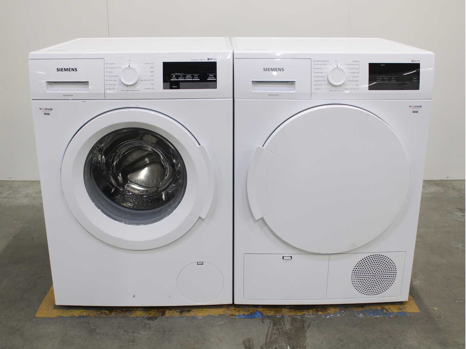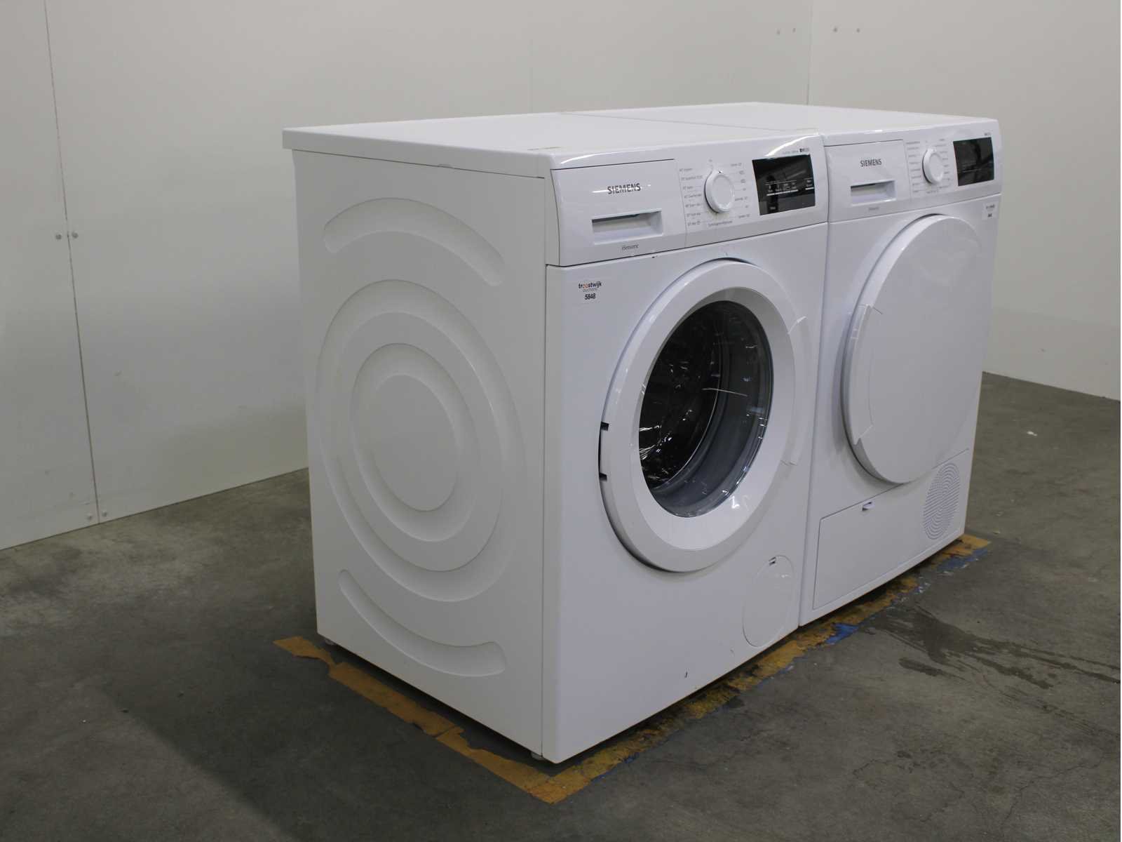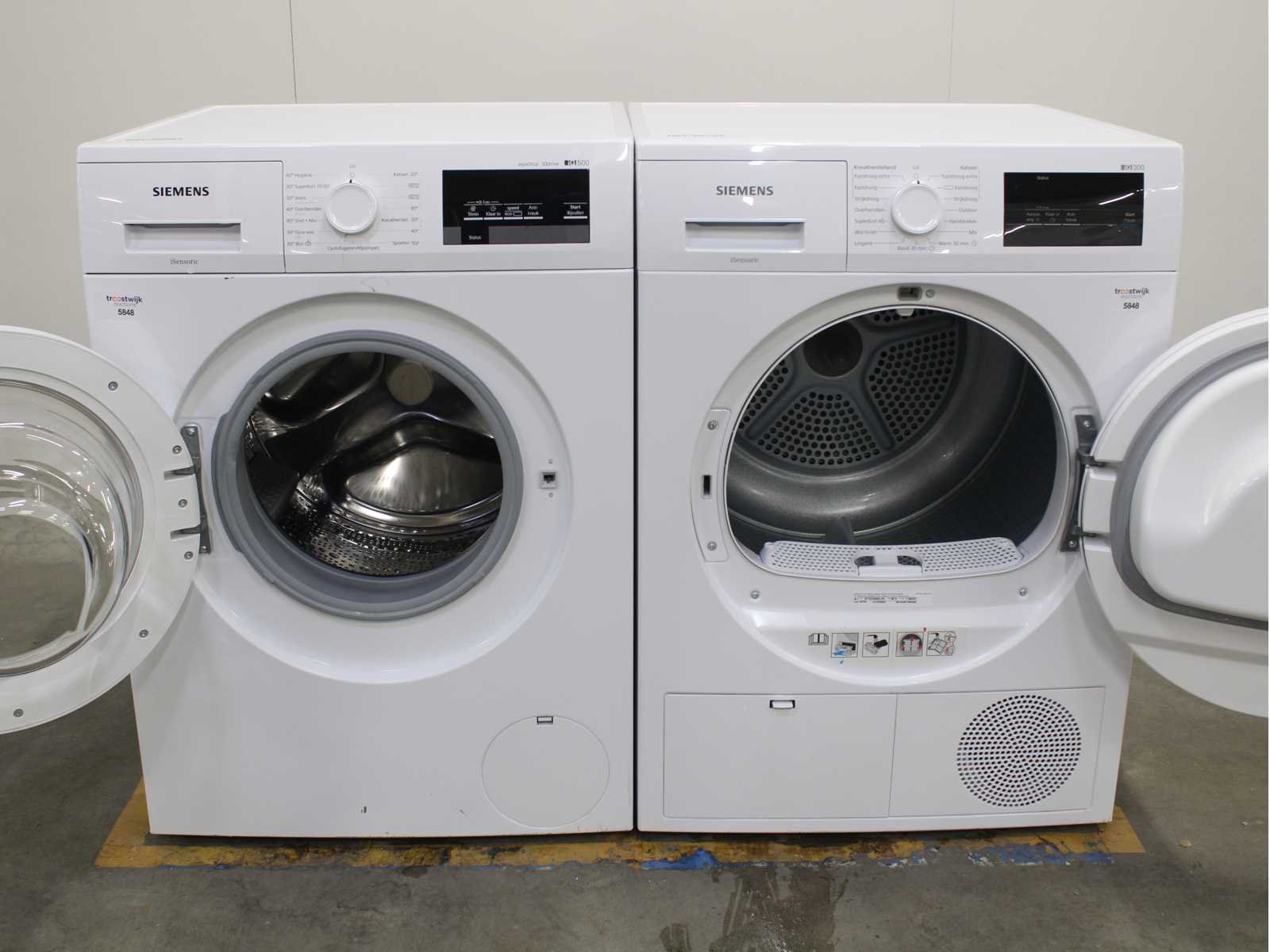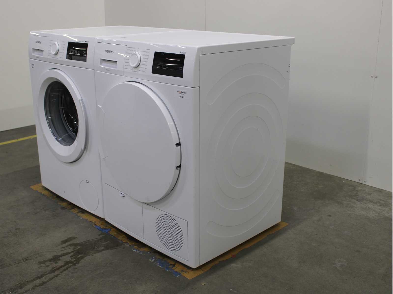 Deze wasmachine en wasdroger komen uit een partij jong gebruikt A-Merk witgoed. De machines zijn volledig getest, gereinigd en indien nodig gerepareerd. Houdt er rekening mee dat de machines lichte gebruikssporen kunnen hebben. Wasmachines en wasdrogers hebben vaak standaard afmetingen. Hoogte 85cm, Breedte 60cm en Diepte 60 tot 70cm, incl. uitstekende slangen e.d. aan de achterzijde. Als de machine vrij komt te staan is de afmeting minder relevant. Wil je de machine in een nis plaatsen of inbouwen? Controleer dan de exacte afmetingen op basis van het aangeboden merk en model/type. Within 7 days Merk: Siemens Serienummer: WMN16T3471NL/14 en WT43H000NL/04