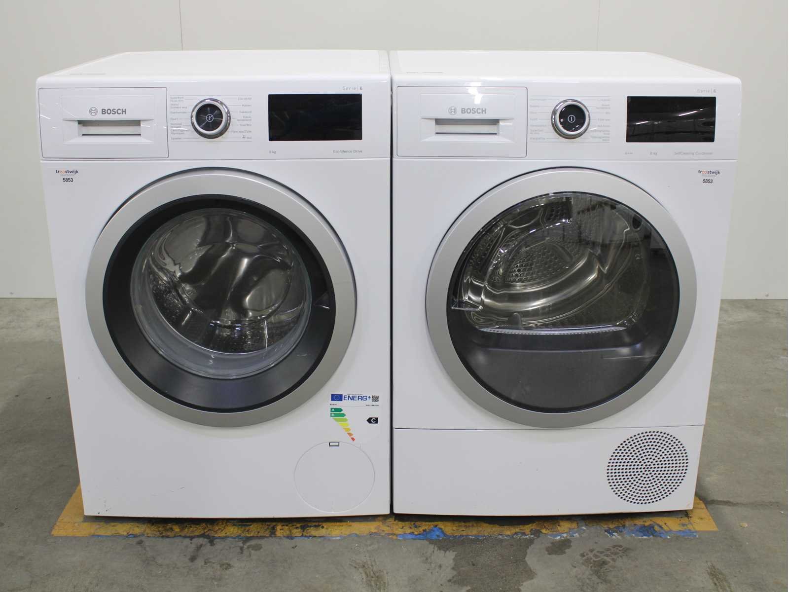 Deze wasmachine en wasdroger komen uit een partij jong gebruikt A-Merk witgoed. De machines zijn volledig getest, gereinigd en indien nodig gerepareerd. Houdt er rekening mee dat de machines lichte gebruikssporen kunnen hebben. Wasmachines en wasdrogers hebben vaak standaard afmetingen. Hoogte 85cm, Breedte 60cm en Diepte 60 tot 70cm, incl. uitstekende slangen e.d. aan de achterzijde. Als de machine vrij komt te staan is de afmeting minder relevant. Wil je de machine in een nis plaatsen of inbouwen? Controleer dan de exacte afmetingen op basis van het aangeboden merk en model/type. Within 7 days Merk: Bosch Serienummer: WAU28R70NL en WTU87675NL/12