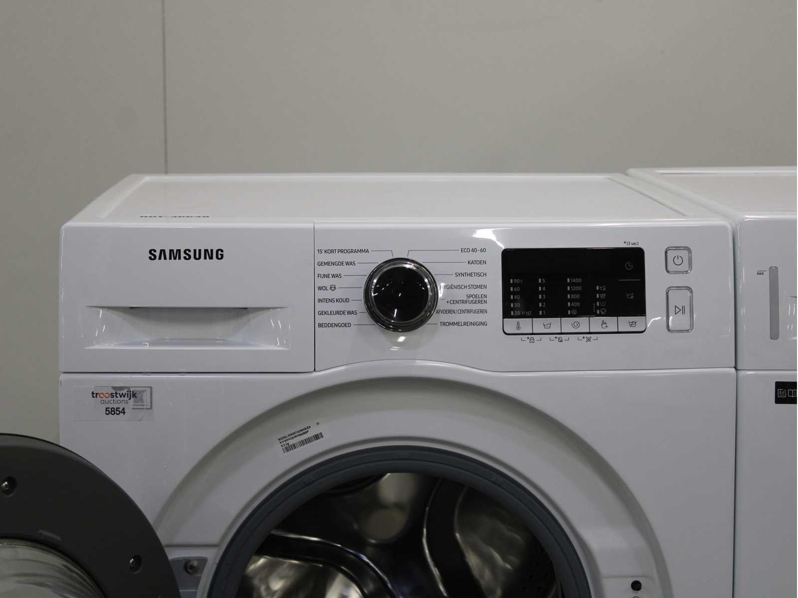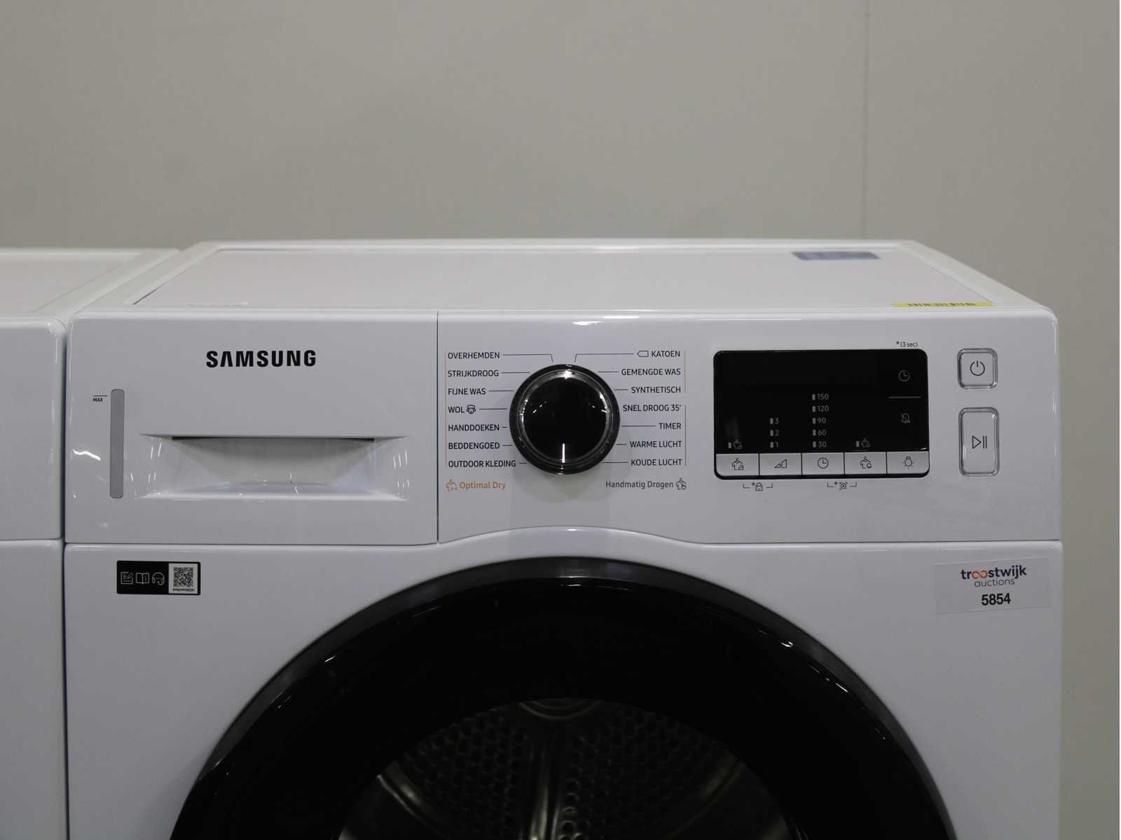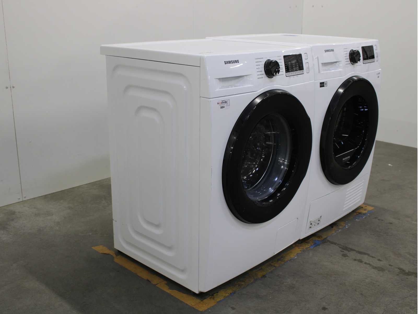 Deze wasmachine en wasdroger komen uit een partij jong gebruikt A-Merk witgoed. De machines zijn volledig getest, gereinigd en indien nodig gerepareerd. Houdt er rekening mee dat de machines lichte gebruikssporen kunnen hebben. Wasmachines en wasdrogers hebben vaak standaard afmetingen. Hoogte 85cm, Breedte 60cm en Diepte 60 tot 70cm, incl. uitstekende slangen e.d. aan de achterzijde. Als de machine vrij komt te staan is de afmeting minder relevant. Wil je de machine in een nis plaatsen of inbouwen? Controleer dan de exacte afmetingen op basis van het aangeboden merk en model/type. Within 7 days Merk: Samsung Serienummer: WW90TA049AE/EN 0WXQ5ABW902880P en DV80TA220AE/EN 0VM65ABW500256K