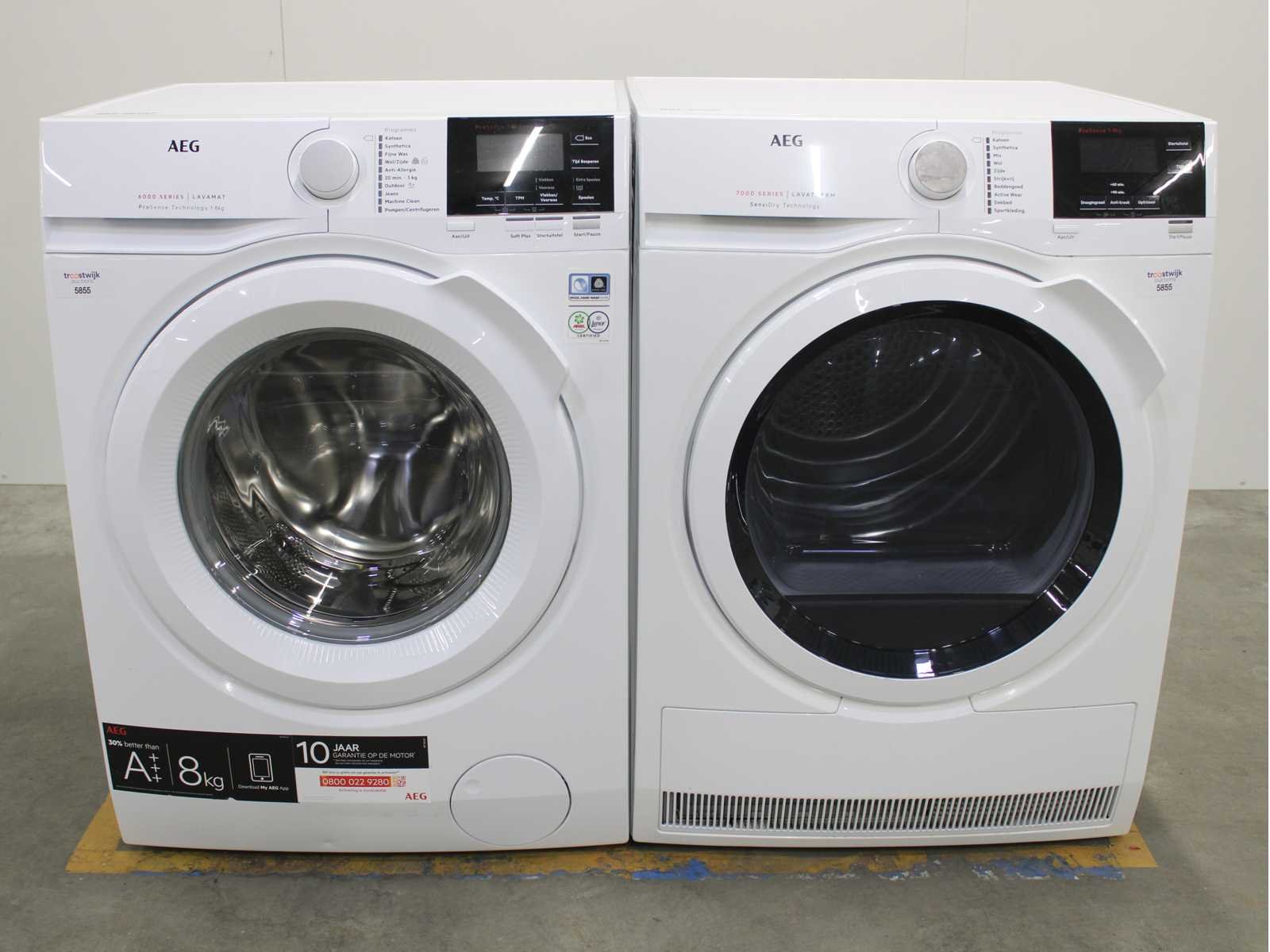 Deze wasmachine en wasdroger komen uit een partij jong gebruikt A-Merk witgoed. De machines zijn volledig getest, gereinigd en indien nodig gerepareerd. Houdt er rekening mee dat de machines lichte gebruikssporen kunnen hebben. Wasmachines en wasdrogers hebben vaak standaard afmetingen. Hoogte 85cm, Breedte 60cm en Diepte 60 tot 70cm, incl. uitstekende slangen e.d. aan de achterzijde. Als de machine vrij komt te staan is de afmeting minder relevant. Wil je de machine in een nis plaatsen of inbouwen? Controleer dan de exacte afmetingen op basis van het aangeboden merk en model/type. Within 7 days Merk: AEG Serienummer: L6FBN84GP en T7DB83GW