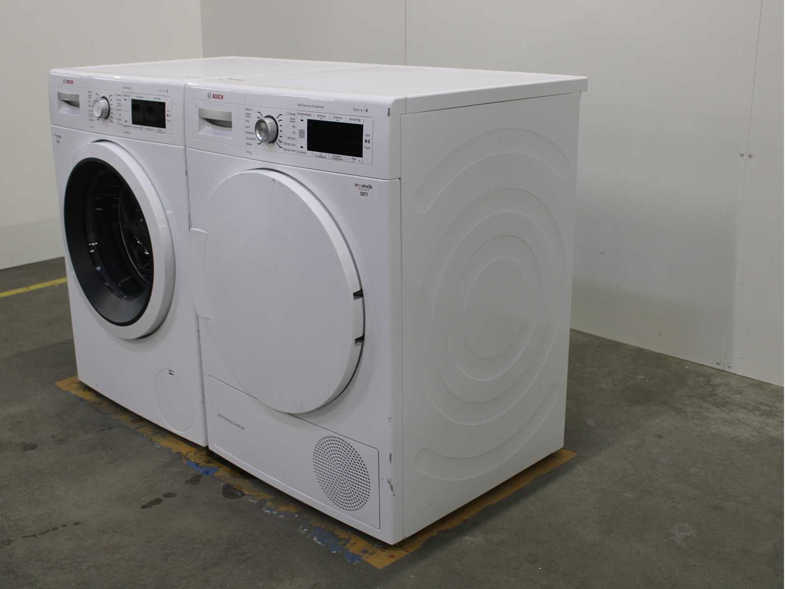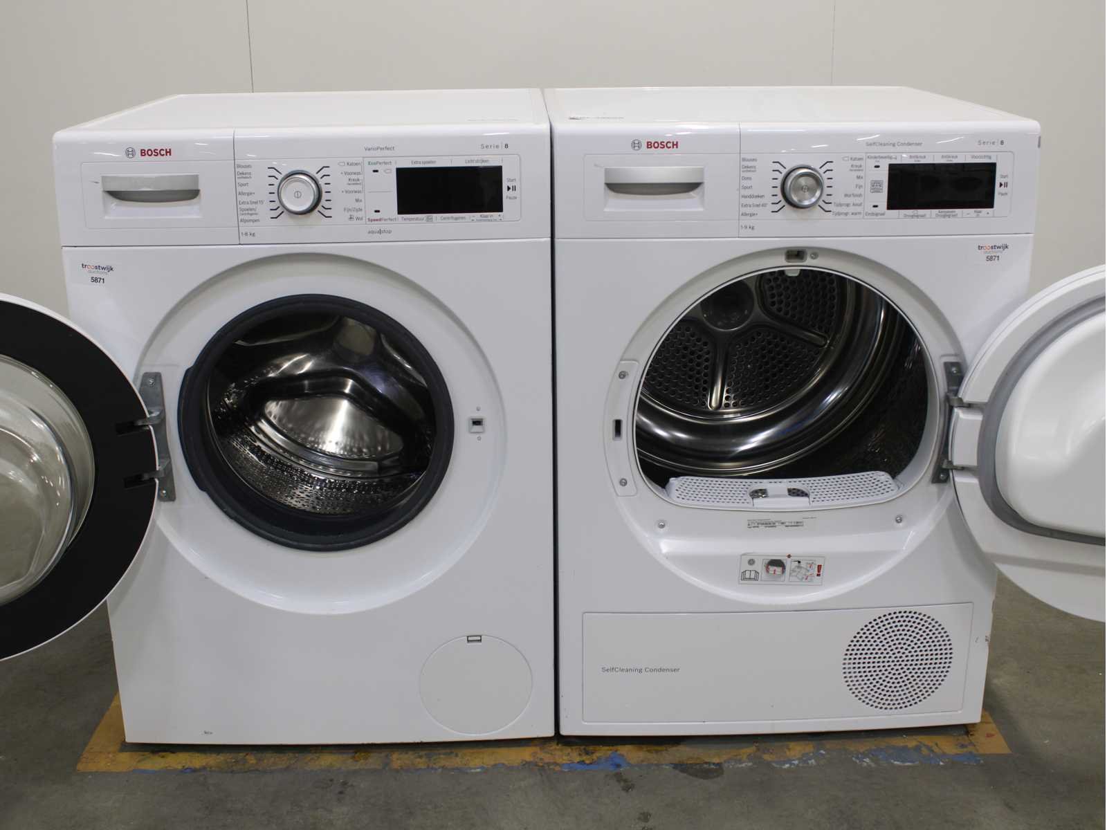 Deze wasmachine en wasdroger komen uit een partij jong gebruikt A-Merk witgoed. De machines zijn volledig getest, gereinigd en indien nodig gerepareerd. Houdt er rekening mee dat de machines lichte gebruikssporen kunnen hebben. Wasmachines en wasdrogers hebben vaak standaard afmetingen. Hoogte 85cm, Breedte 60cm en Diepte 60 tot 70cm, incl. uitstekende slangen e.d. aan de achterzijde. Als de machine vrij komt te staan is de afmeting minder relevant. Wil je de machine in een nis plaatsen of inbouwen? Controleer dan de exacte afmetingen op basis van het aangeboden merk en model/type. Within 7 days Merk: Bosch Serienummer: WAW32461NL/14 en WTW84562NL/03