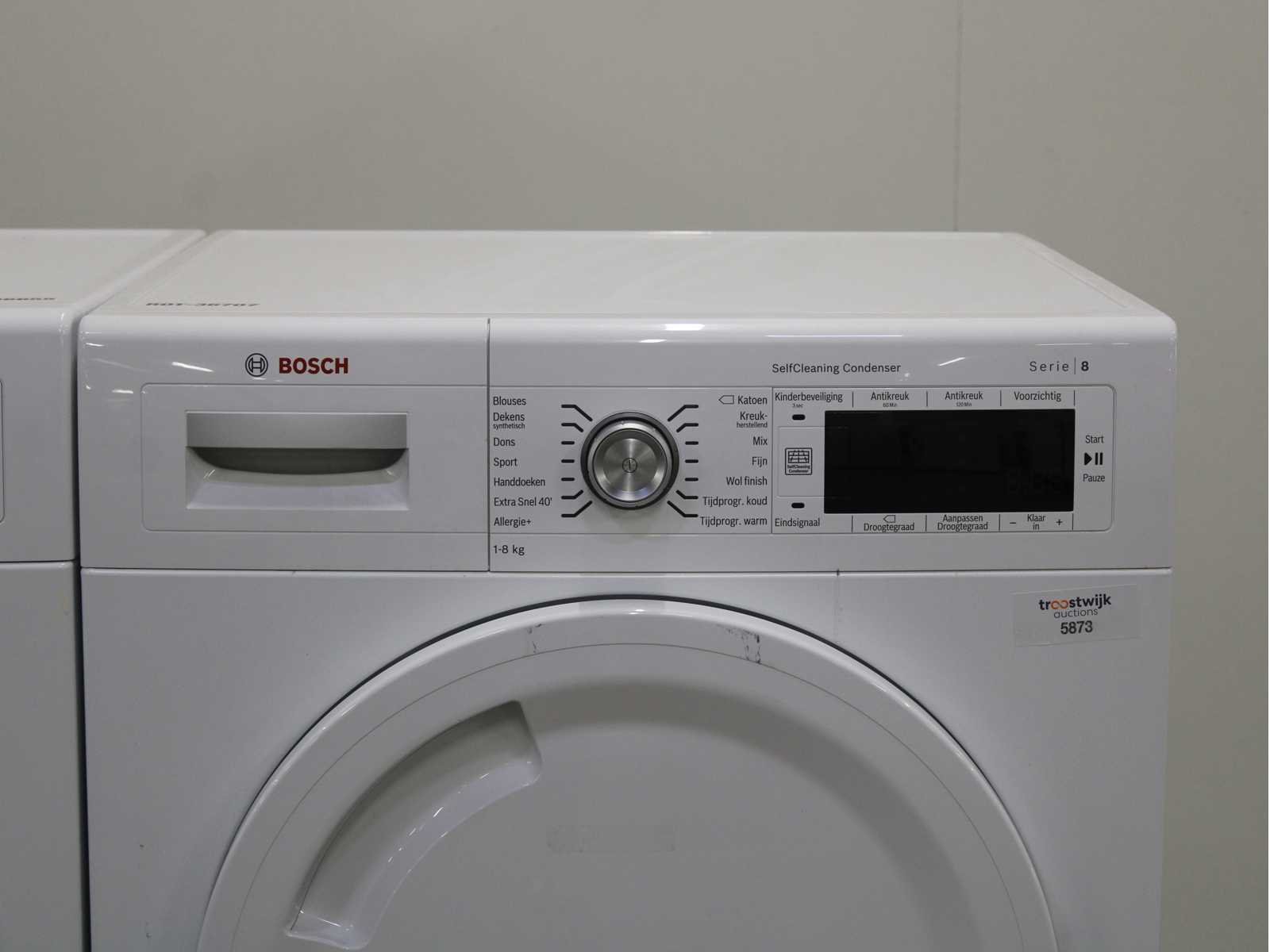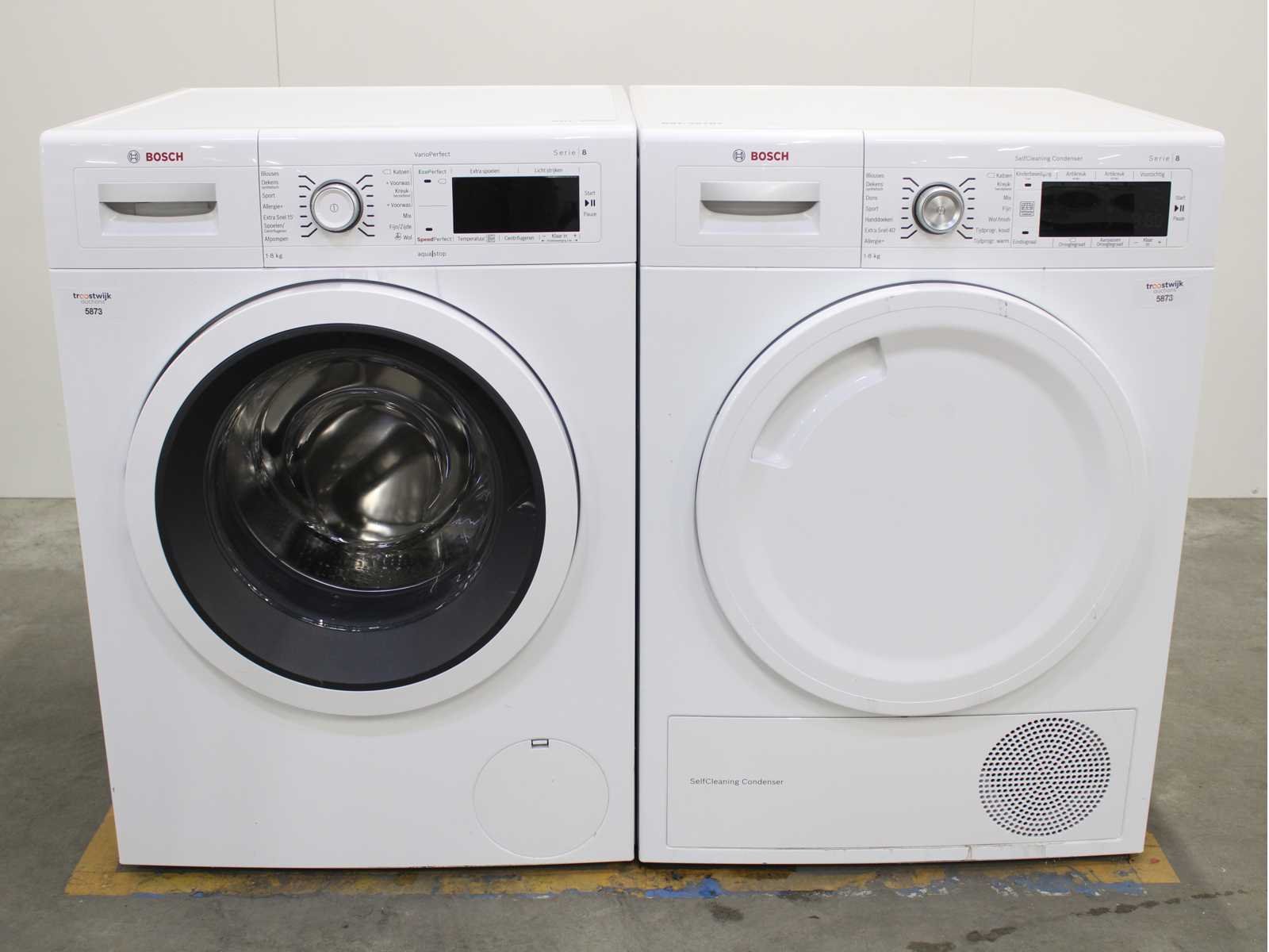 Deze wasmachine en wasdroger komen uit een partij jong gebruikt A-Merk witgoed. De machines zijn volledig getest, gereinigd en indien nodig gerepareerd. Houdt er rekening mee dat de machines lichte gebruikssporen kunnen hebben. Wasmachines en wasdrogers hebben vaak standaard afmetingen. Hoogte 85cm, Breedte 60cm en Diepte 60 tot 70cm, incl. uitstekende slangen e.d. aan de achterzijde. Als de machine vrij komt te staan is de afmeting minder relevant. Wil je de machine in een nis plaatsen of inbouwen? Controleer dan de exacte afmetingen op basis van het aangeboden merk en model/type. Within 7 days Merk: Bosch Serienummer: WAW32461NL en WTW87560NL