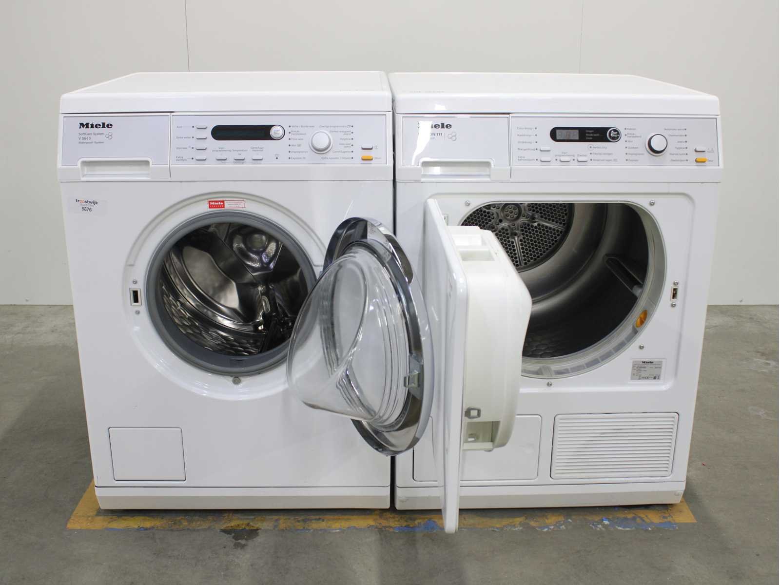 Deze wasmachine en wasdroger komen uit een partij jong gebruikt A-Merk witgoed. De machines zijn volledig getest, gereinigd en indien nodig gerepareerd. Houdt er rekening mee dat de machines lichte gebruikssporen kunnen hebben. Wasmachines en wasdrogers hebben vaak standaard afmetingen. Hoogte 85cm, Breedte 60cm en Diepte 60 tot 70cm, incl. uitstekende slangen e.d. aan de achterzijde. Als de machine vrij komt te staan is de afmeting minder relevant. Wil je de machine in een nis plaatsen of inbouwen? Controleer dan de exacte afmetingen op basis van het aangeboden merk en model/type. Within 7 days Merk: Miele Serienummer: V5849WPS en T8873WPEdi.111