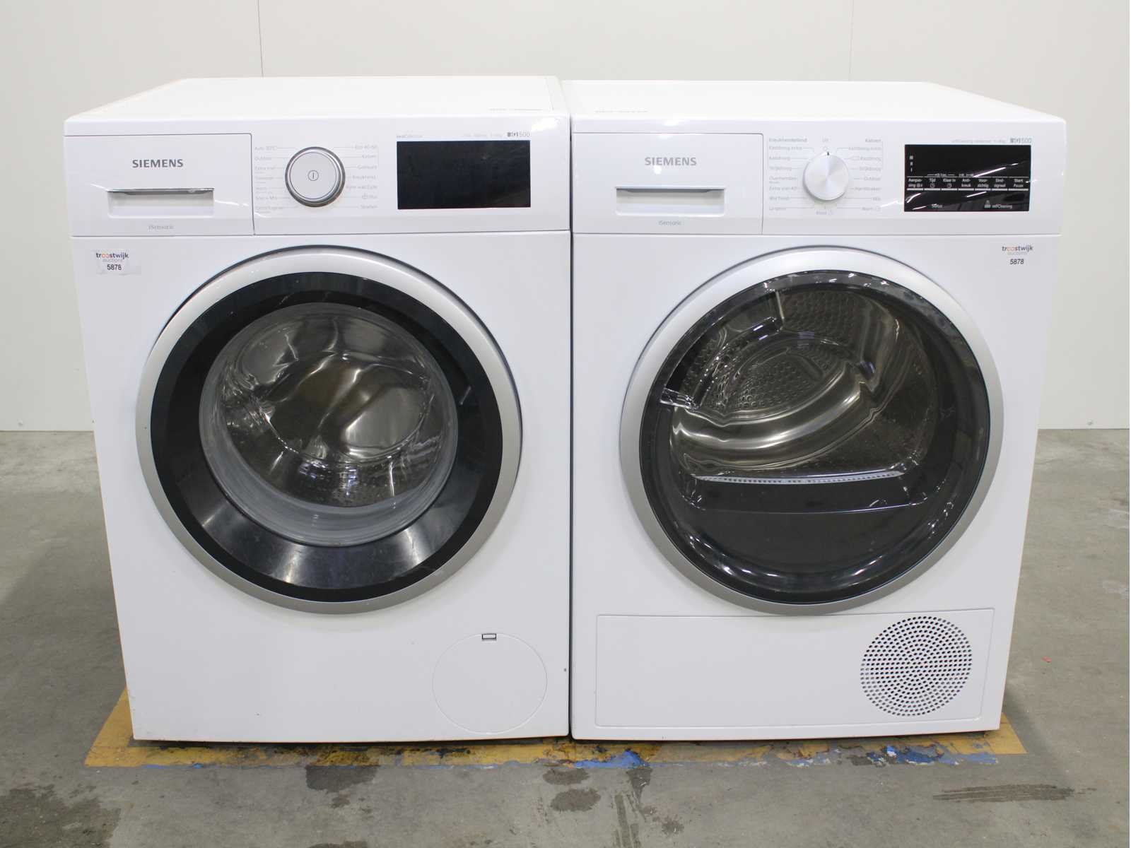 Deze wasmachine en wasdroger komen uit een partij jong gebruikt A-Merk witgoed. De machines zijn volledig getest, gereinigd en indien nodig gerepareerd. Houdt er rekening mee dat de machines lichte gebruikssporen kunnen hebben. Wasmachines en wasdrogers hebben vaak standaard afmetingen. Hoogte 85cm, Breedte 60cm en Diepte 60 tot 70cm, incl. uitstekende slangen e.d. aan de achterzijde. Als de machine vrij komt te staan is de afmeting minder relevant. Wil je de machine in een nis plaatsen of inbouwen? Controleer dan de exacte afmetingen op basis van het aangeboden merk en model/type. Within 7 days Merk: Siemens Serienummer: WM14UP70NL en WT45W475NL