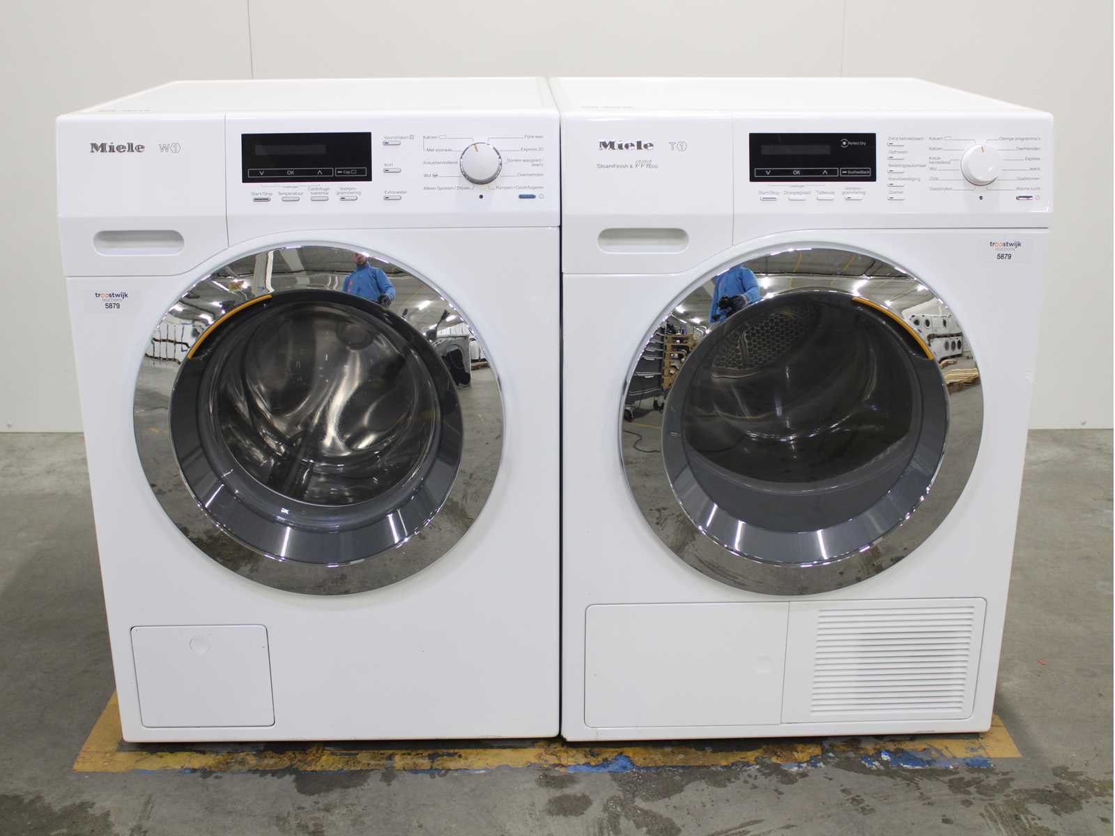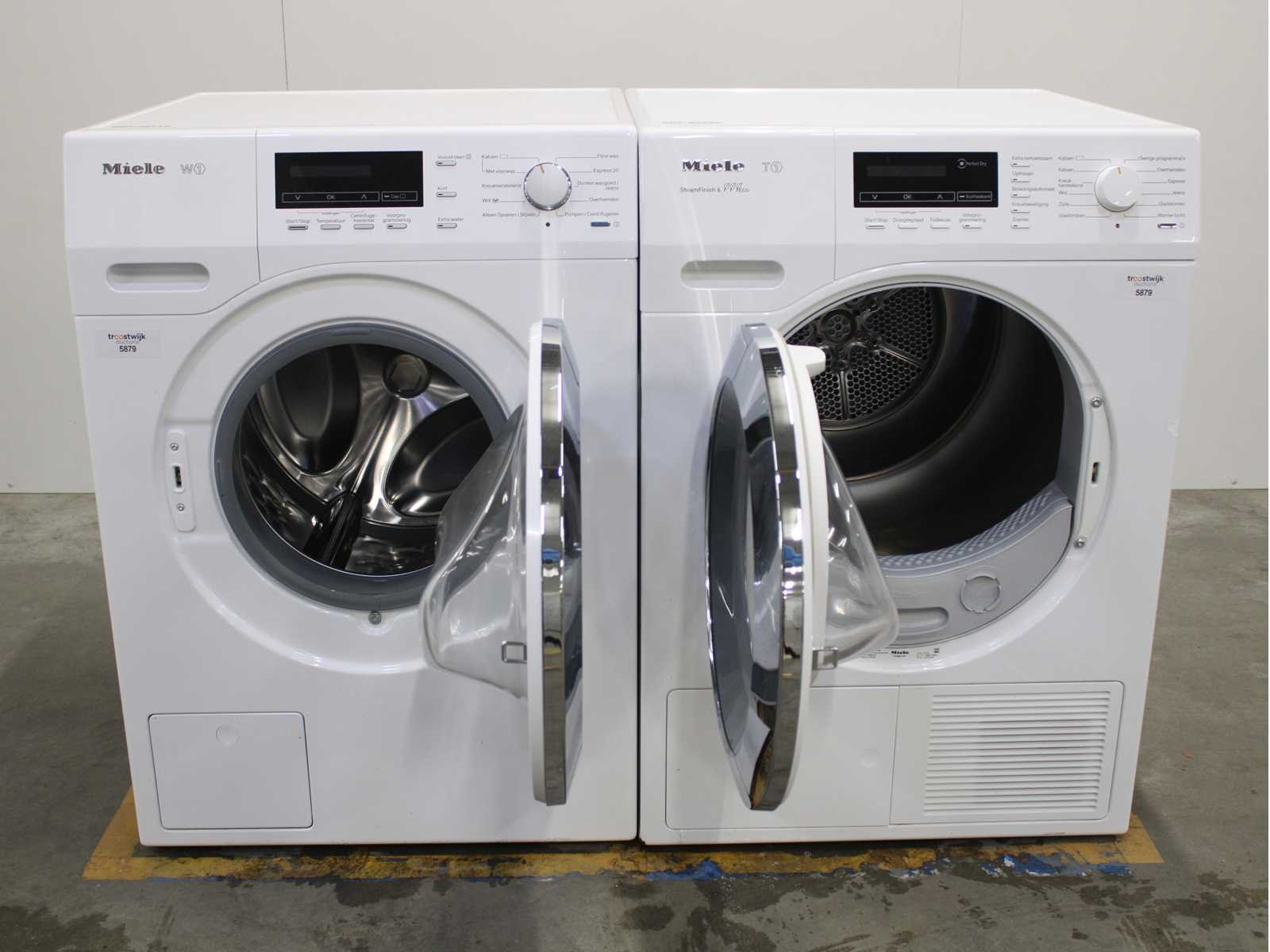 Deze wasmachine en wasdroger komen uit een partij jong gebruikt A-Merk witgoed. De machines zijn volledig getest, gereinigd en indien nodig gerepareerd. Houdt er rekening mee dat de machines lichte gebruikssporen kunnen hebben. Wasmachines en wasdrogers hebben vaak standaard afmetingen. Hoogte 85cm, Breedte 60cm en Diepte 60 tot 70cm, incl. uitstekende slangen e.d. aan de achterzijde. Als de machine vrij komt te staan is de afmeting minder relevant. Wil je de machine in een nis plaatsen of inbouwen? Controleer dan de exacte afmetingen op basis van het aangeboden merk en model/type. Within 7 days Merk: Miele Serienummer: WKE130WPS en TKG850WP