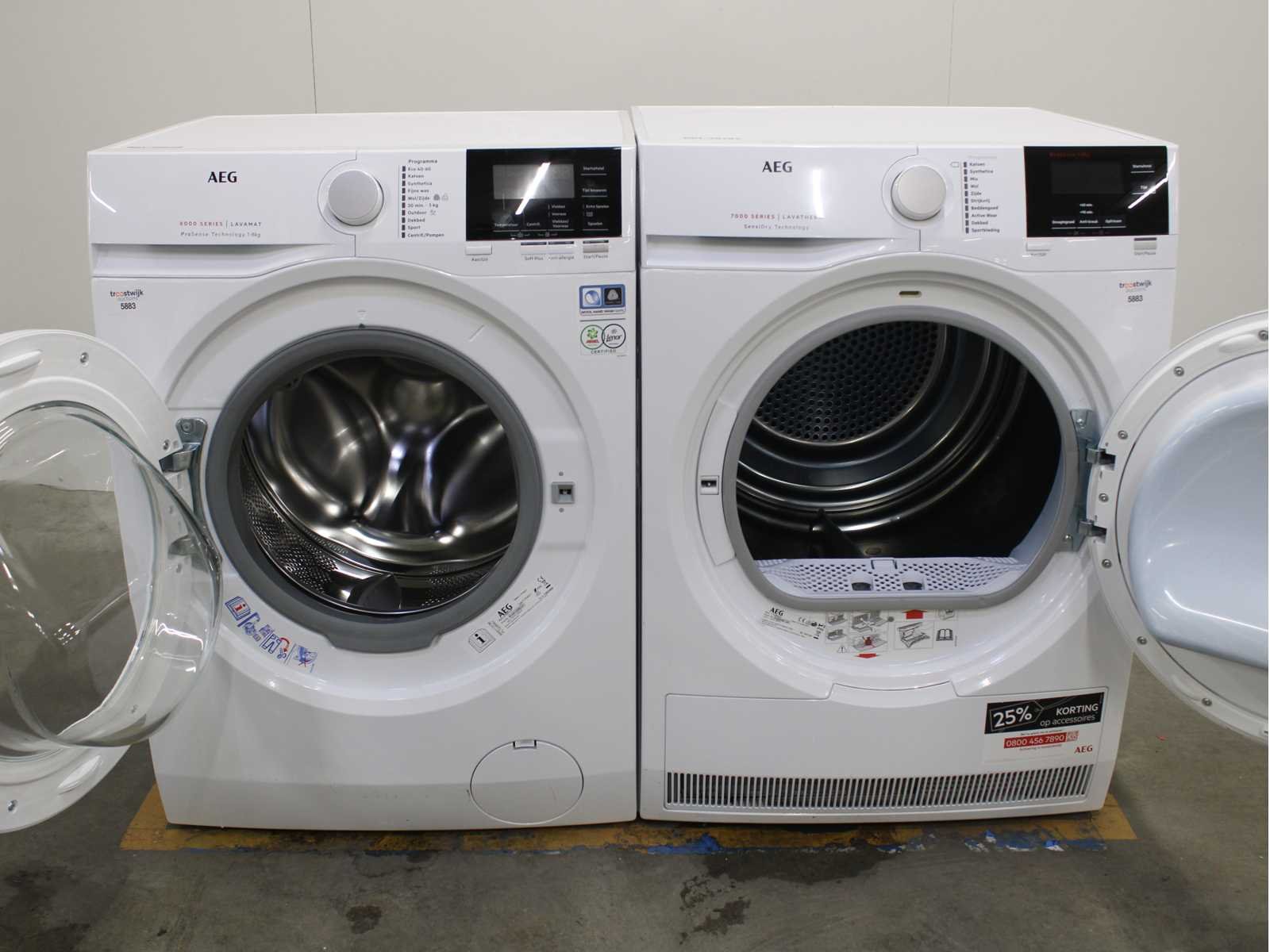 Deze wasmachine en wasdroger komen uit een partij jong gebruikt A-Merk witgoed. De machines zijn volledig getest, gereinigd en indien nodig gerepareerd. Houdt er rekening mee dat de machines lichte gebruikssporen kunnen hebben. Wasmachines en wasdrogers hebben vaak standaard afmetingen. Hoogte 85cm, Breedte 60cm en Diepte 60 tot 70cm, incl. uitstekende slangen e.d. aan de achterzijde. Als de machine vrij komt te staan is de afmeting minder relevant. Wil je de machine in een nis plaatsen of inbouwen? Controleer dan de exacte afmetingen op basis van het aangeboden merk en model/type. Within 7 days Merk: AEG Serienummer: L6FBSPORT en T7DB83GP