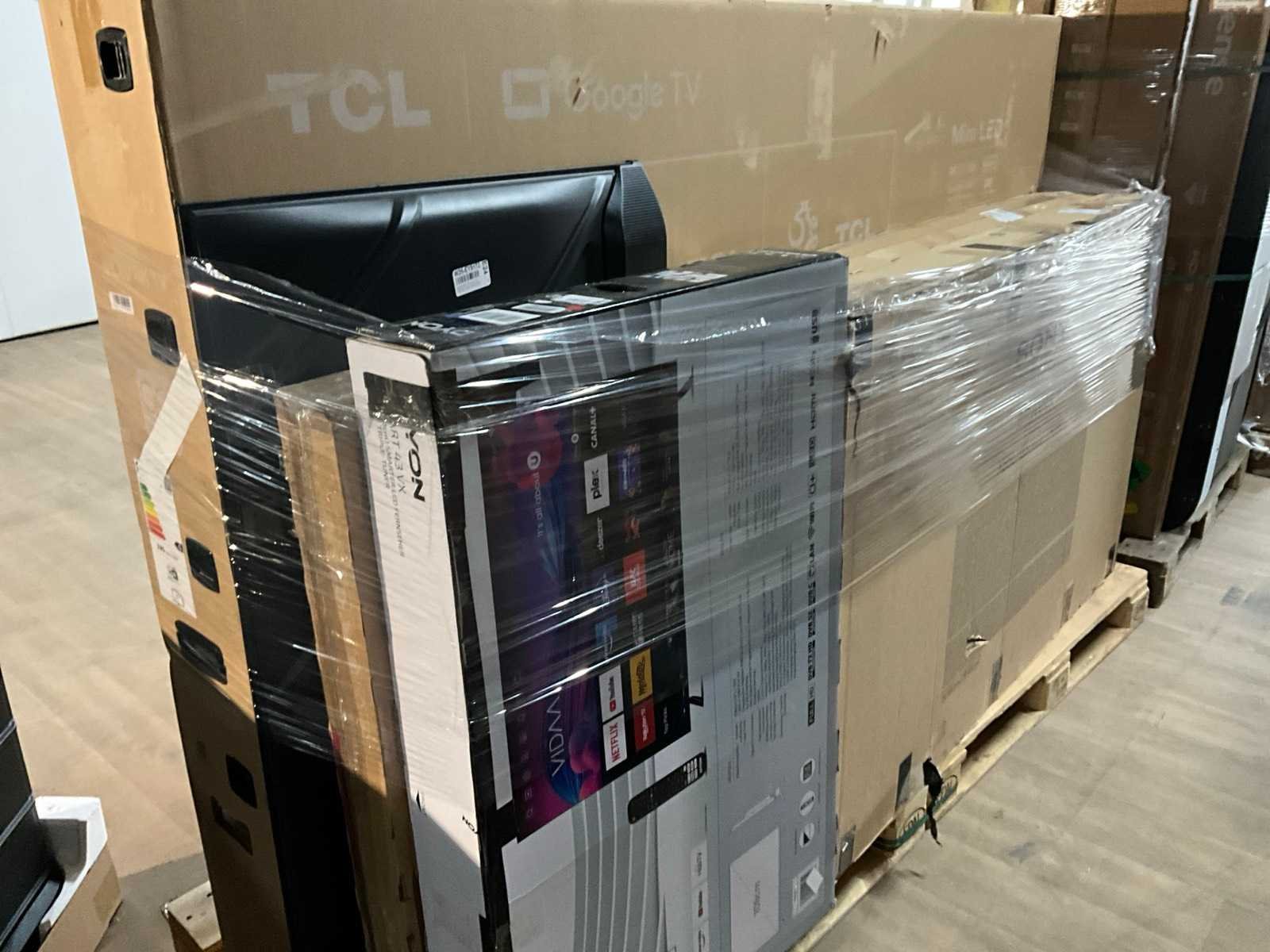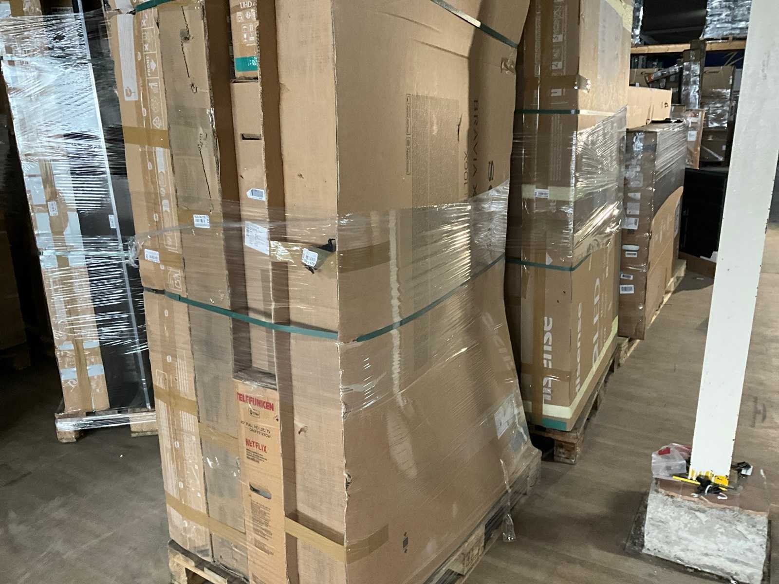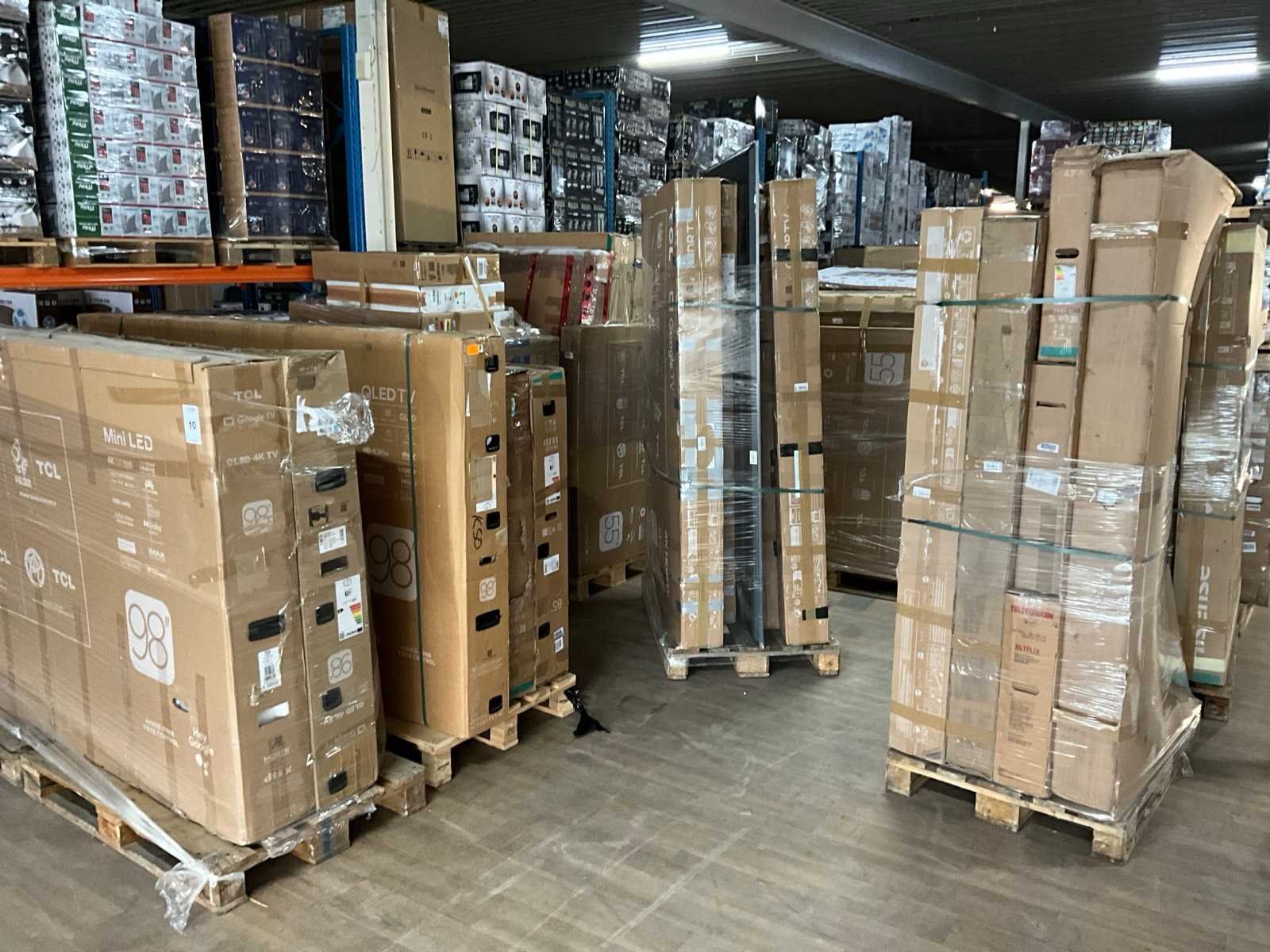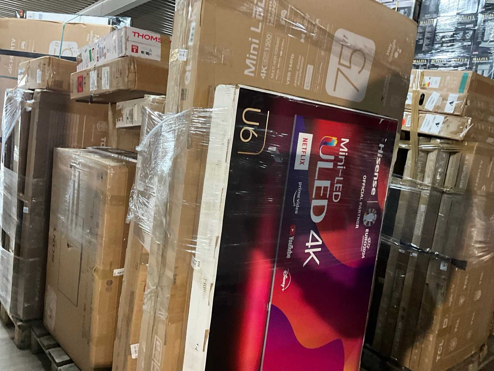 Bestaande uit 14x pallet (circa 17 pallet plaatsen), merken onder andere: Hisense, Sony, TCL, Toshiba, JVC, Philips, waaronder: “Sony” Bravia XR 85” X90L. Link Excel lijst: https://1drv.ms/x/c/6D813F0F04EA5786/EW1MfTfmV3FGv6i6aLAYq30BZo0Nl7VBkXMRJBQztS-KGw?e=T5qwZk