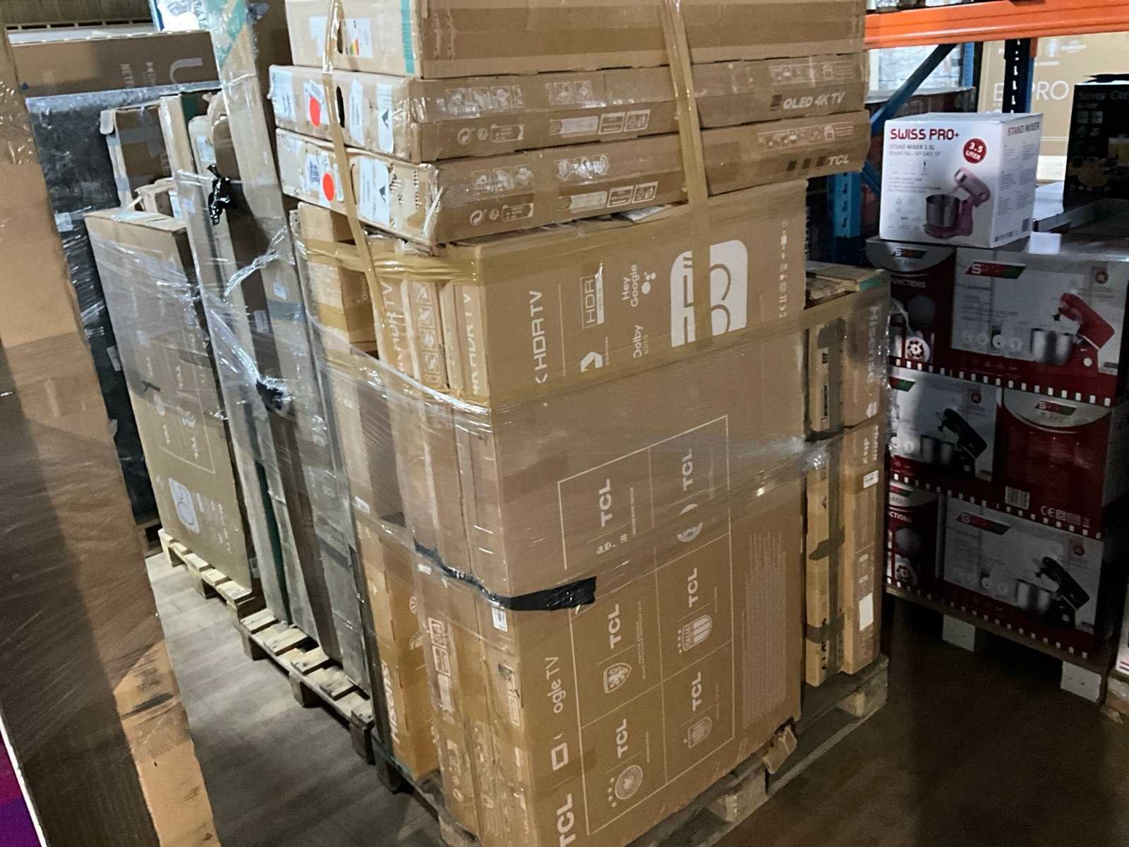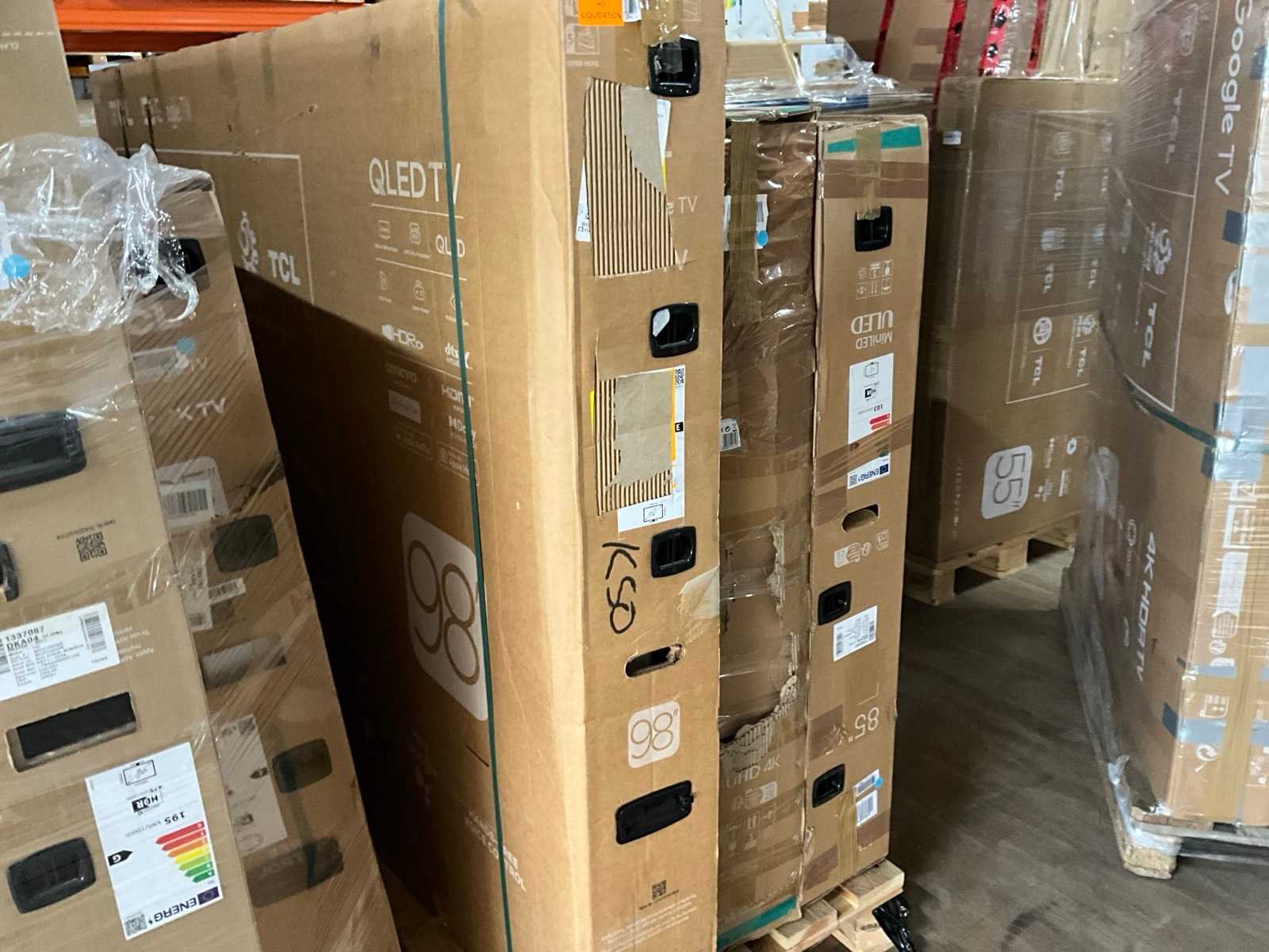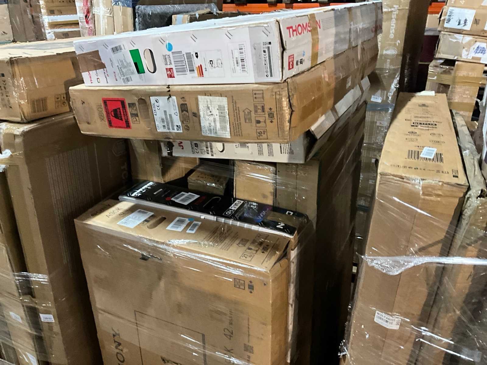 Bestaande uit 14x pallet (circa 17 pallet plaatsen), merken onder andere: Hisense, Sony, TCL, Toshiba, JVC, Philips, waaronder: “Sony” Bravia XR 85” X90L. Link Excel lijst: https://1drv.ms/x/c/6D813F0F04EA5786/EW1MfTfmV3FGv6i6aLAYq30BZo0Nl7VBkXMRJBQztS-KGw?e=T5qwZk