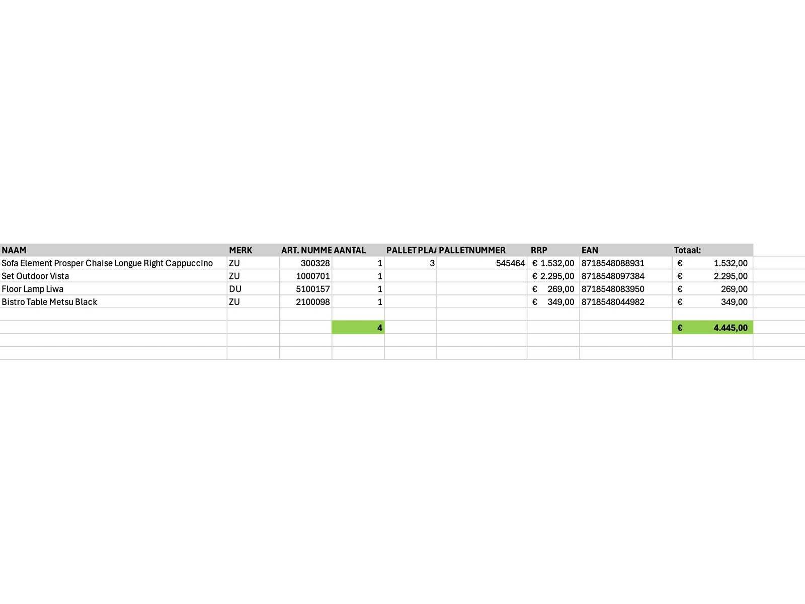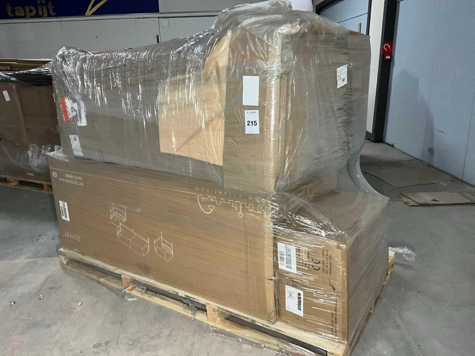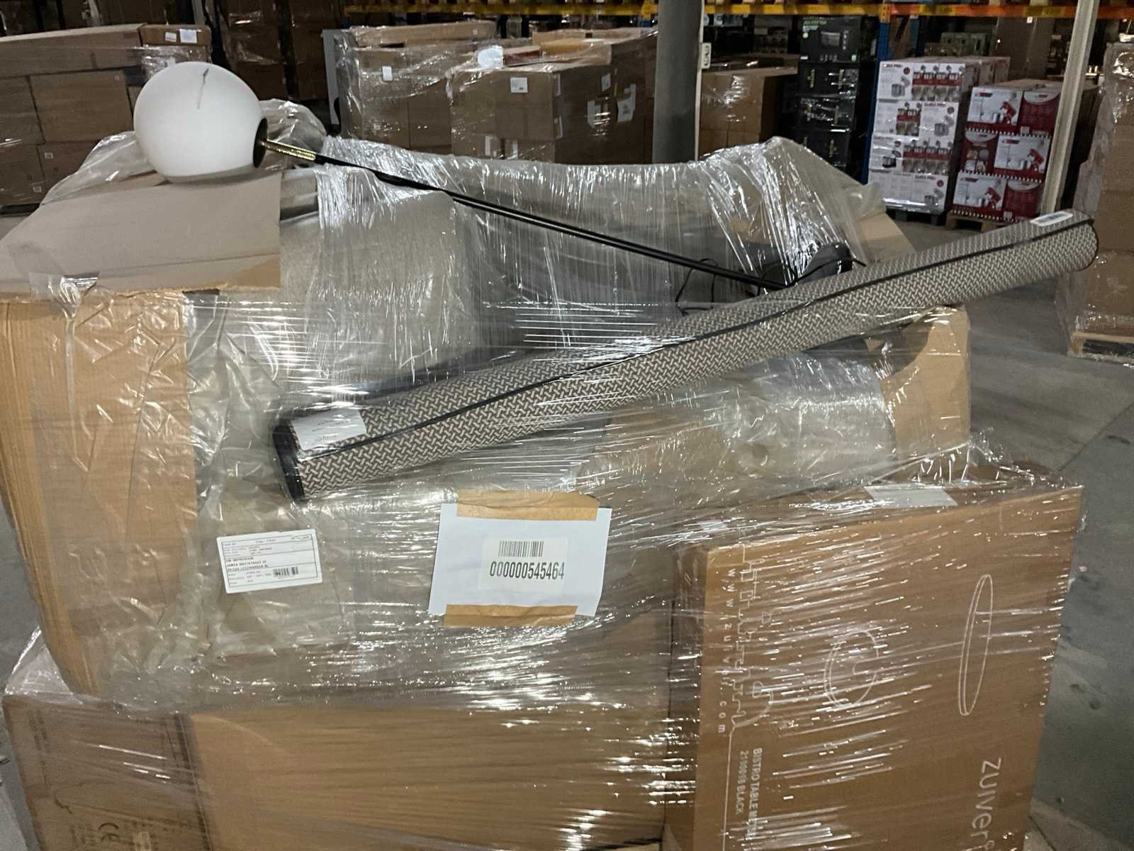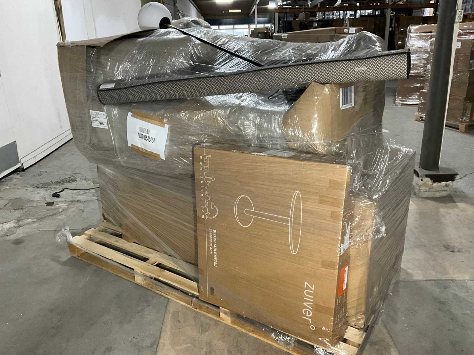 Bestaande uit merken: Zuiver, Dutchbone. Op 1x XL pallet, transport afmeting circa: 2300x1200x1900 mm, betreft A-grade retour artikelen.