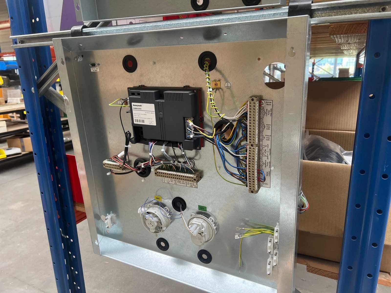 Belangrijk onderdeel: Resideo (Honeywell) branderautomaat type S4965V2052 Specificaties (Resideo S4965V2052): • Voeding: 230V AC, 50Hz • Veiligheidstijd: 3 s • Certificering: EN298 • Gemonteerd met relais, aansluitterminals en bedrading