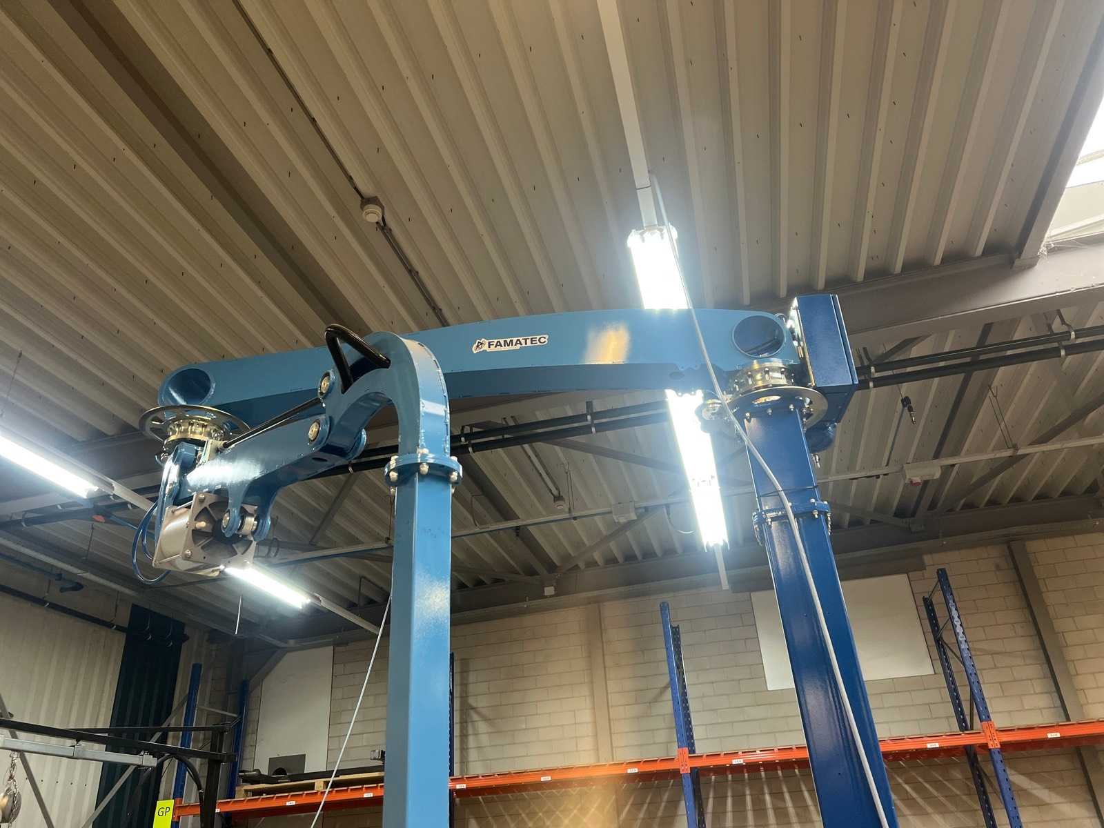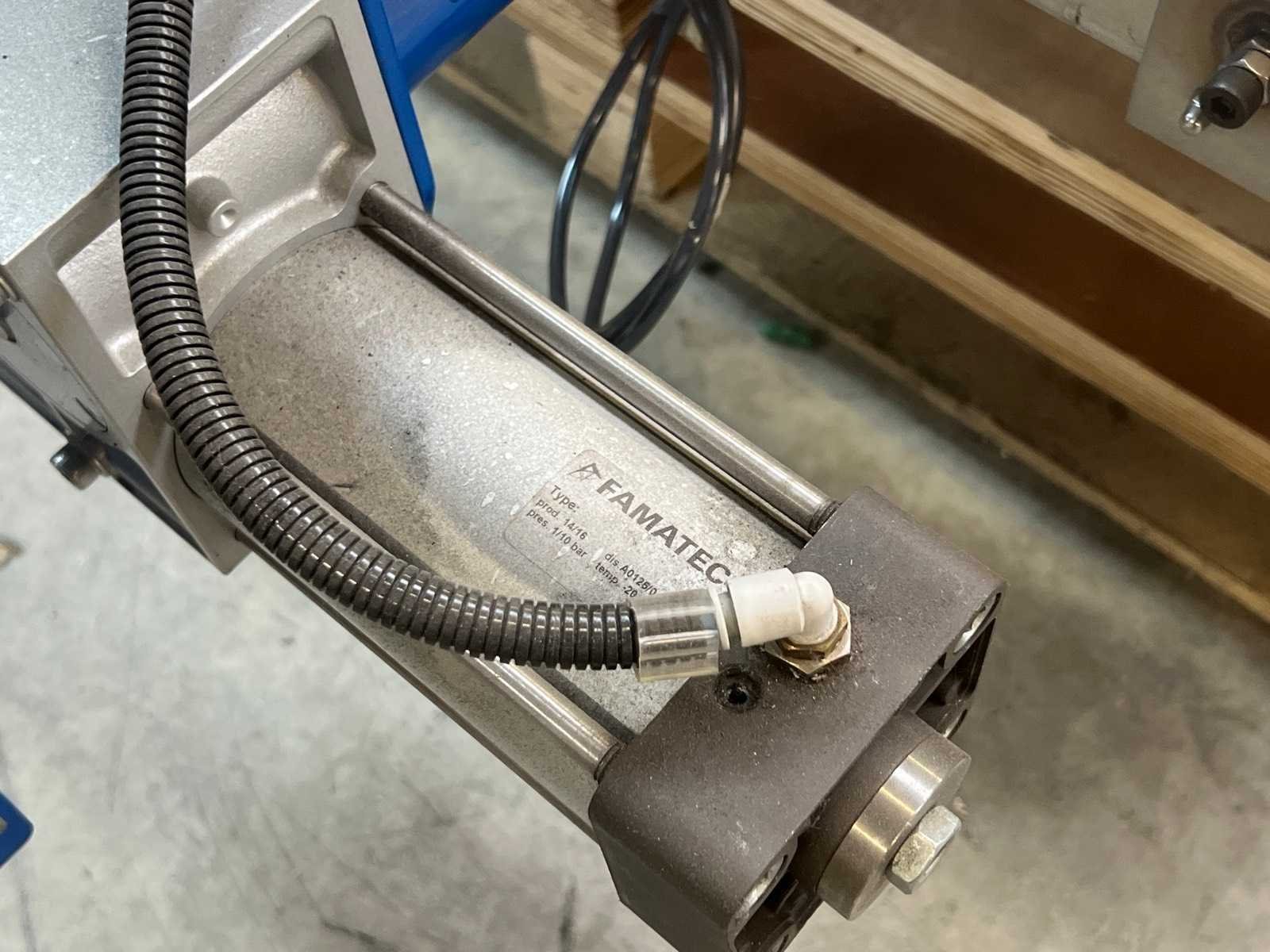 Besturing: pneumatisch met bedieningspaneel • Uitgerust met grijper / opnamekop voor til- en positioneertaken • Geschikt voor industriële assemblage of machineondersteuning • Bevestigd op stabiele stalen kolom met draaibare arm Merk: Famatec