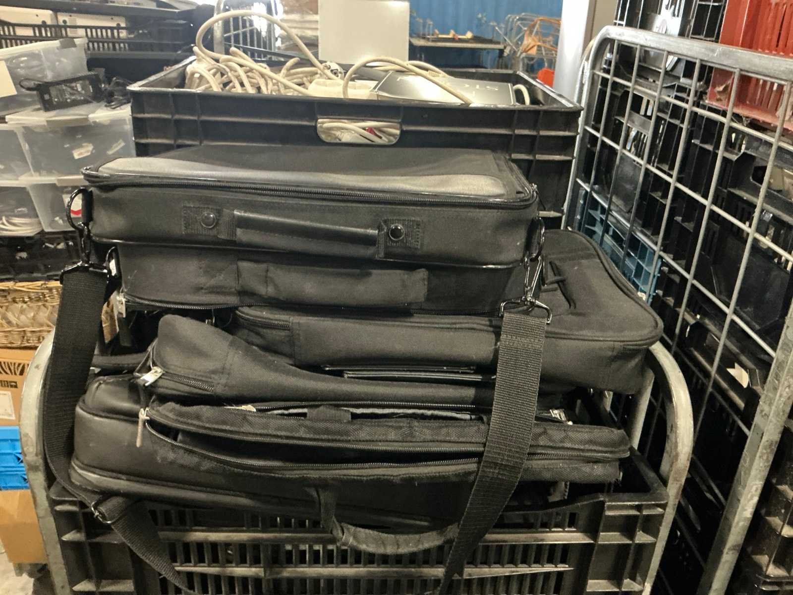 Diverse kabels, laptoptassen; kar/pallet is niet inbegrepen.