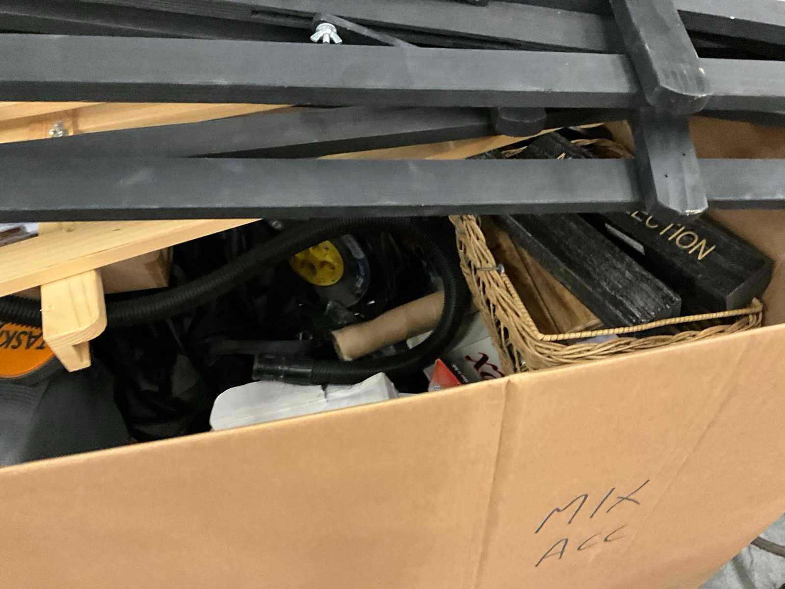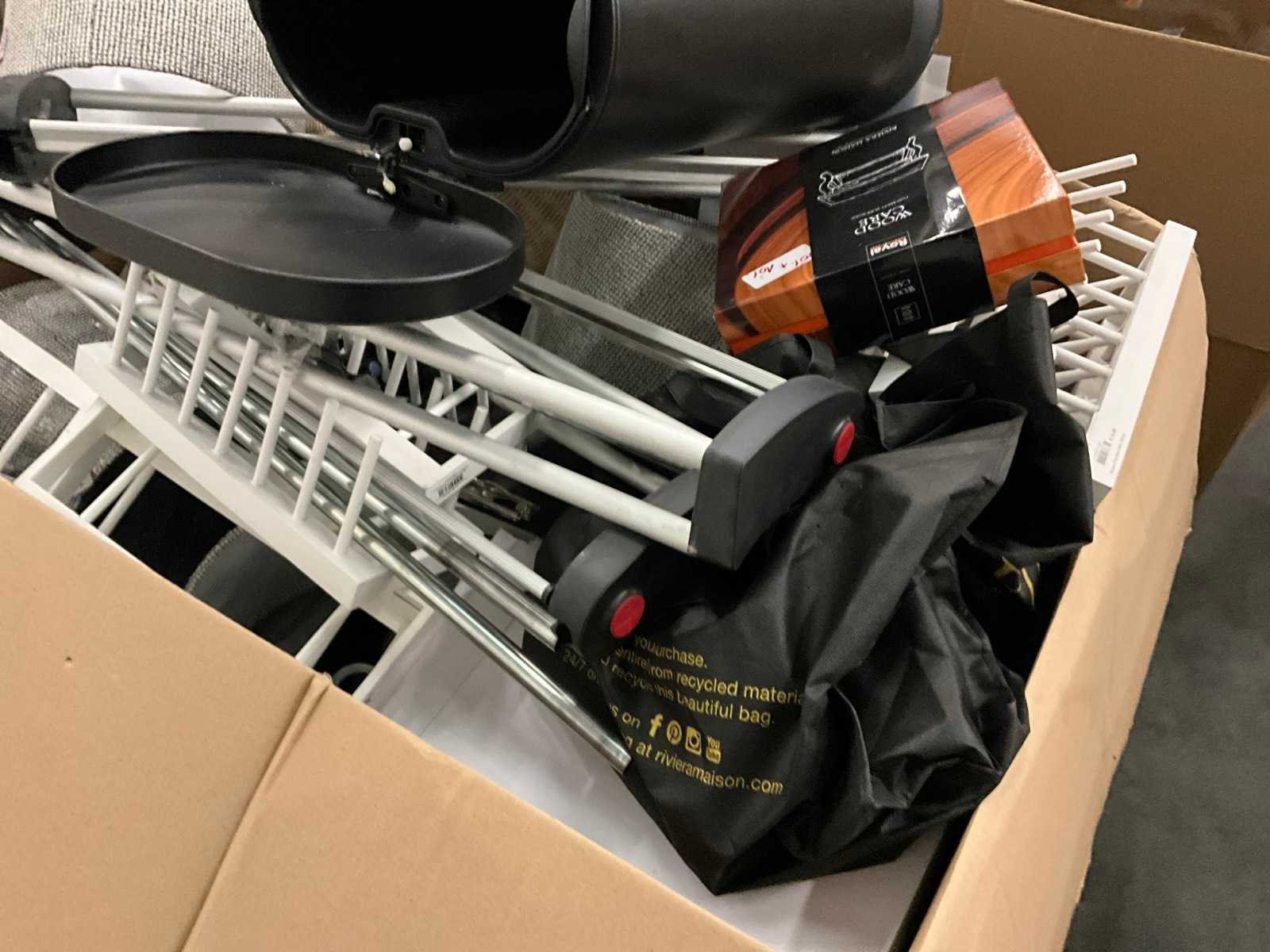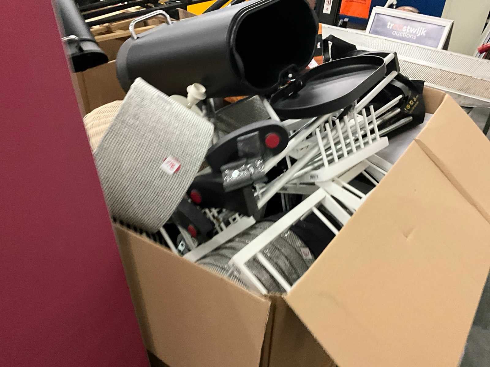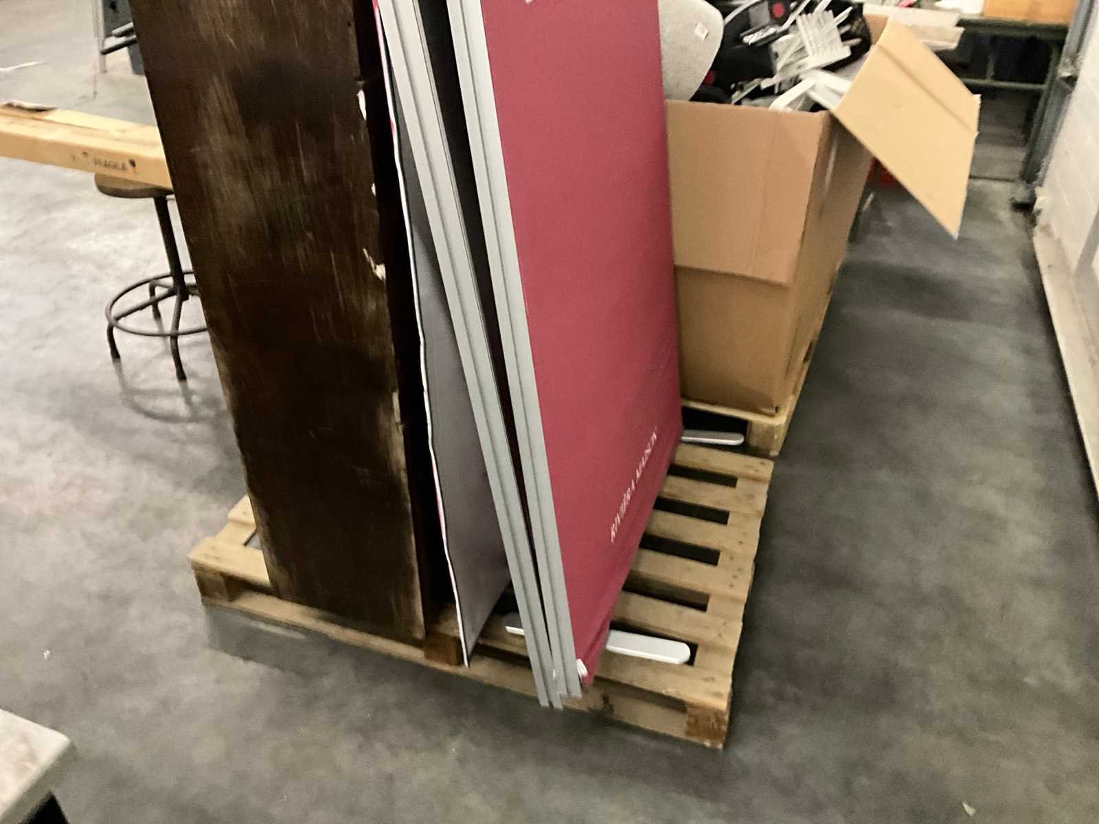 Bestaande uit 4x schilder ezel, diverse verlichting, 2x prullenbak, kast, kapstokken