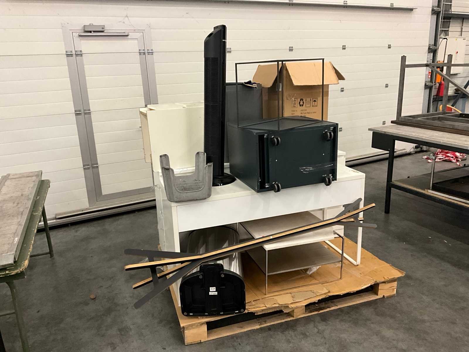 Bestaande uit: diverse kasten, 2x prullenbak, verwarming en kapstok