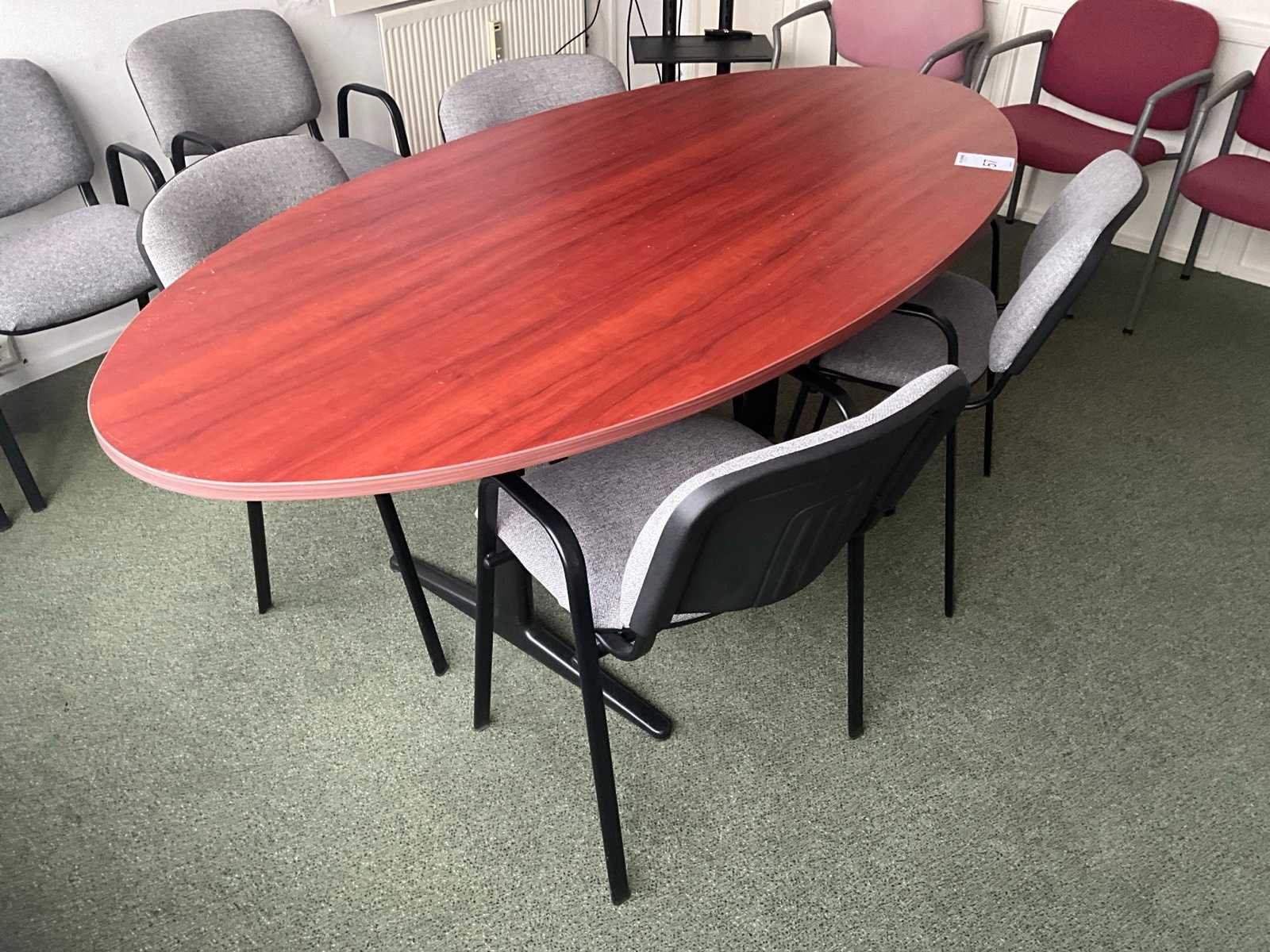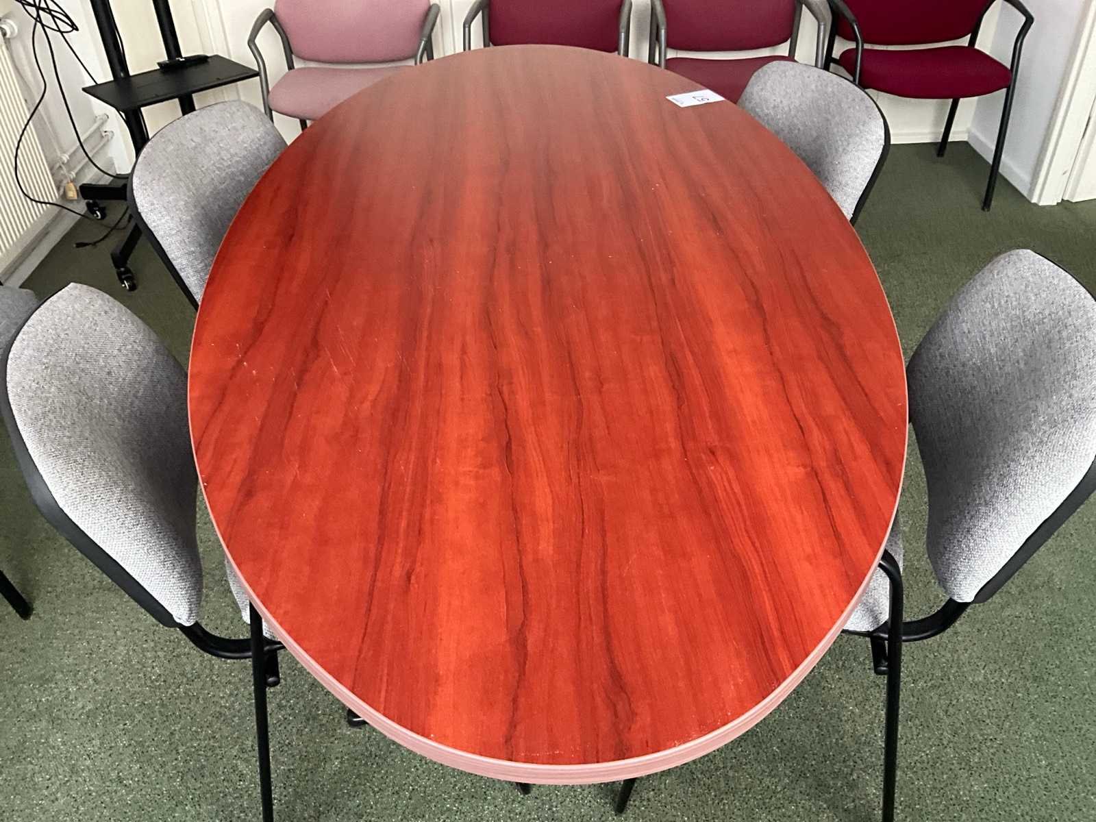 In hoogte verstelbaar; houten blad en metalen frame; inclusief 11x vergaderstoel Merk: Ahrend Lengte: 200cm Breedte: 100cm