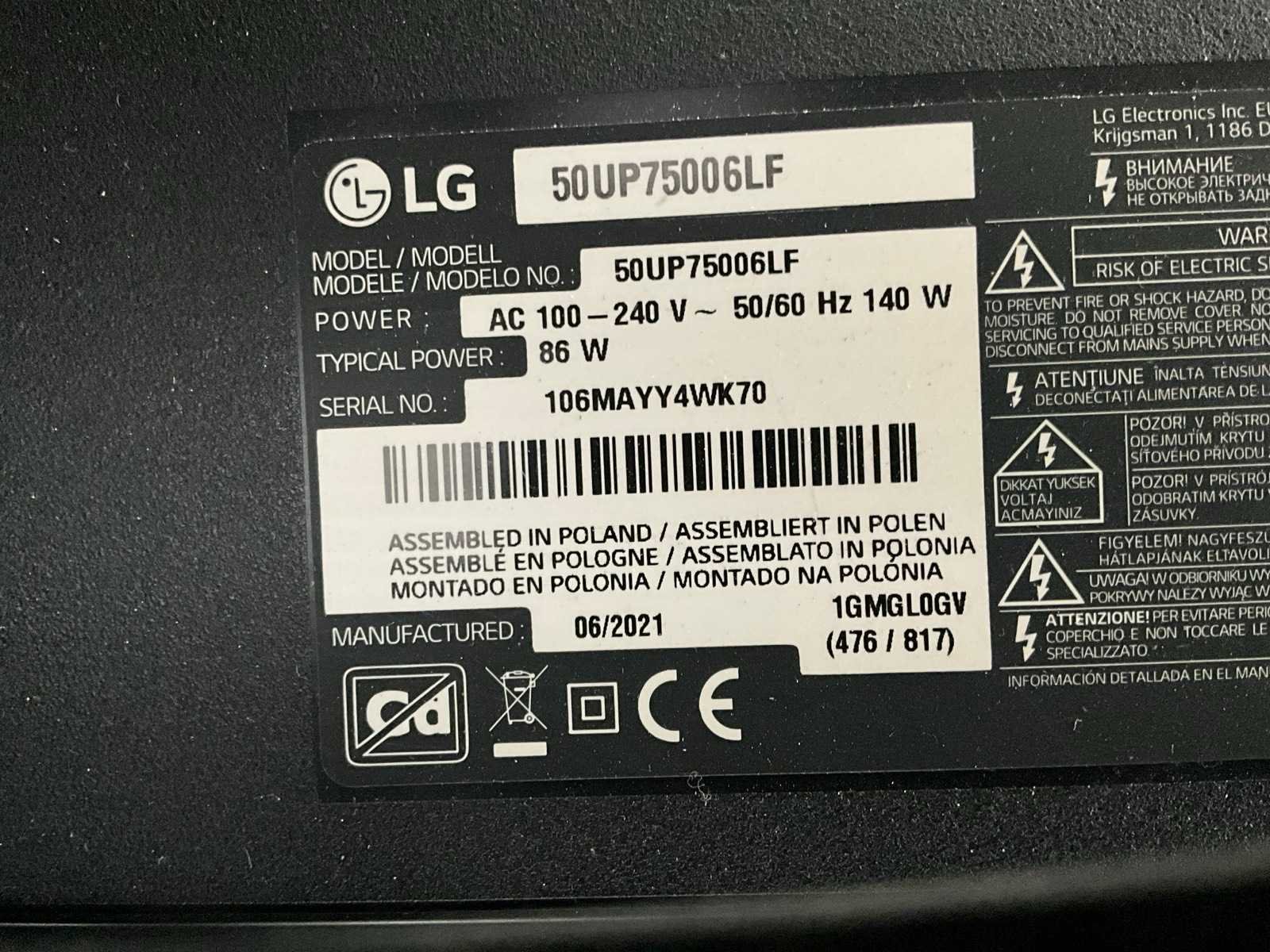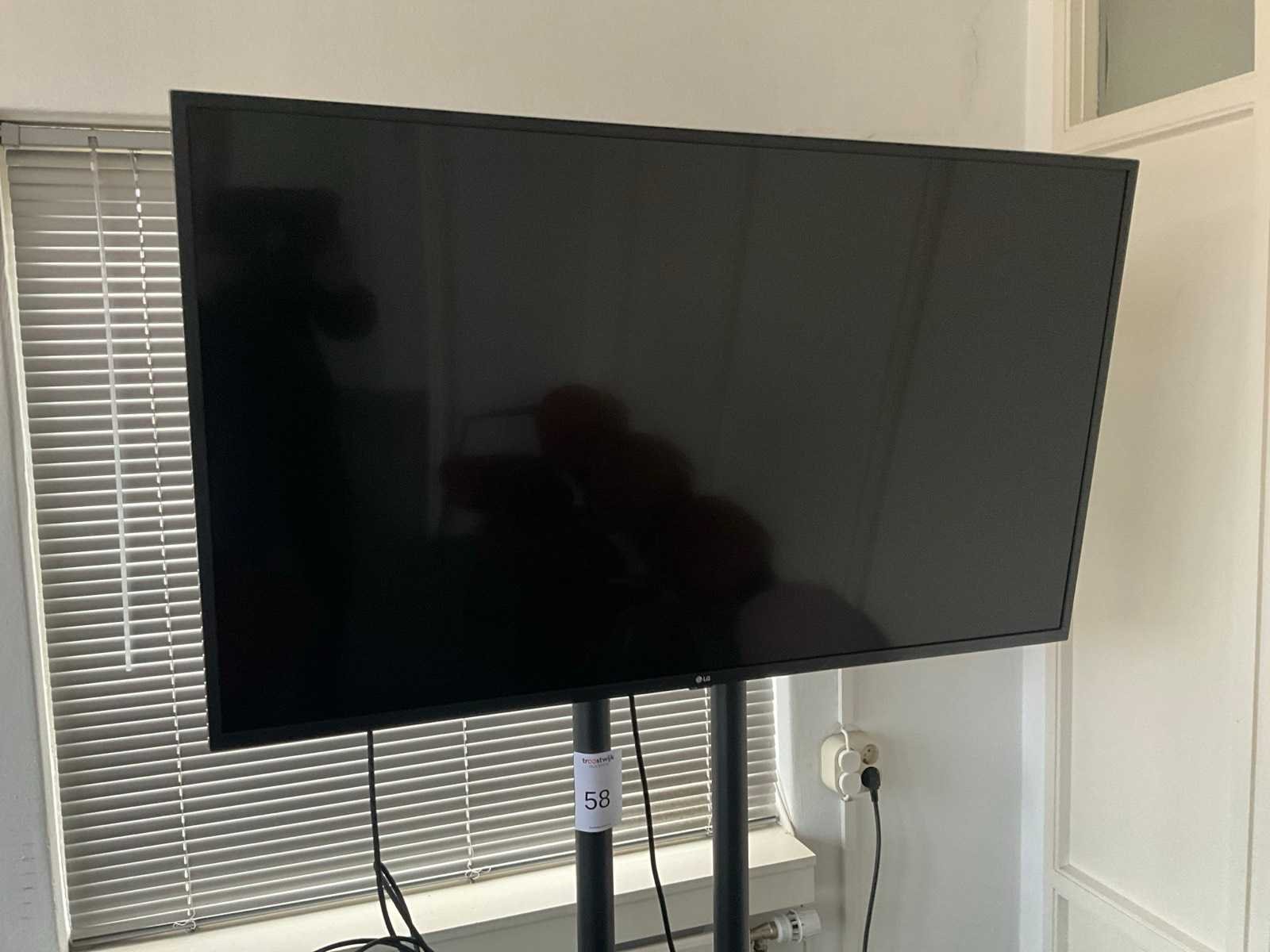Bouwjaar: 2021; voorzien van afstandsbediening; gemonteerd op Neomounts verrijdbaar frame Merk: LG Model: 50UP75006LF Beelddiagonaal: 50'' Smart TV: true