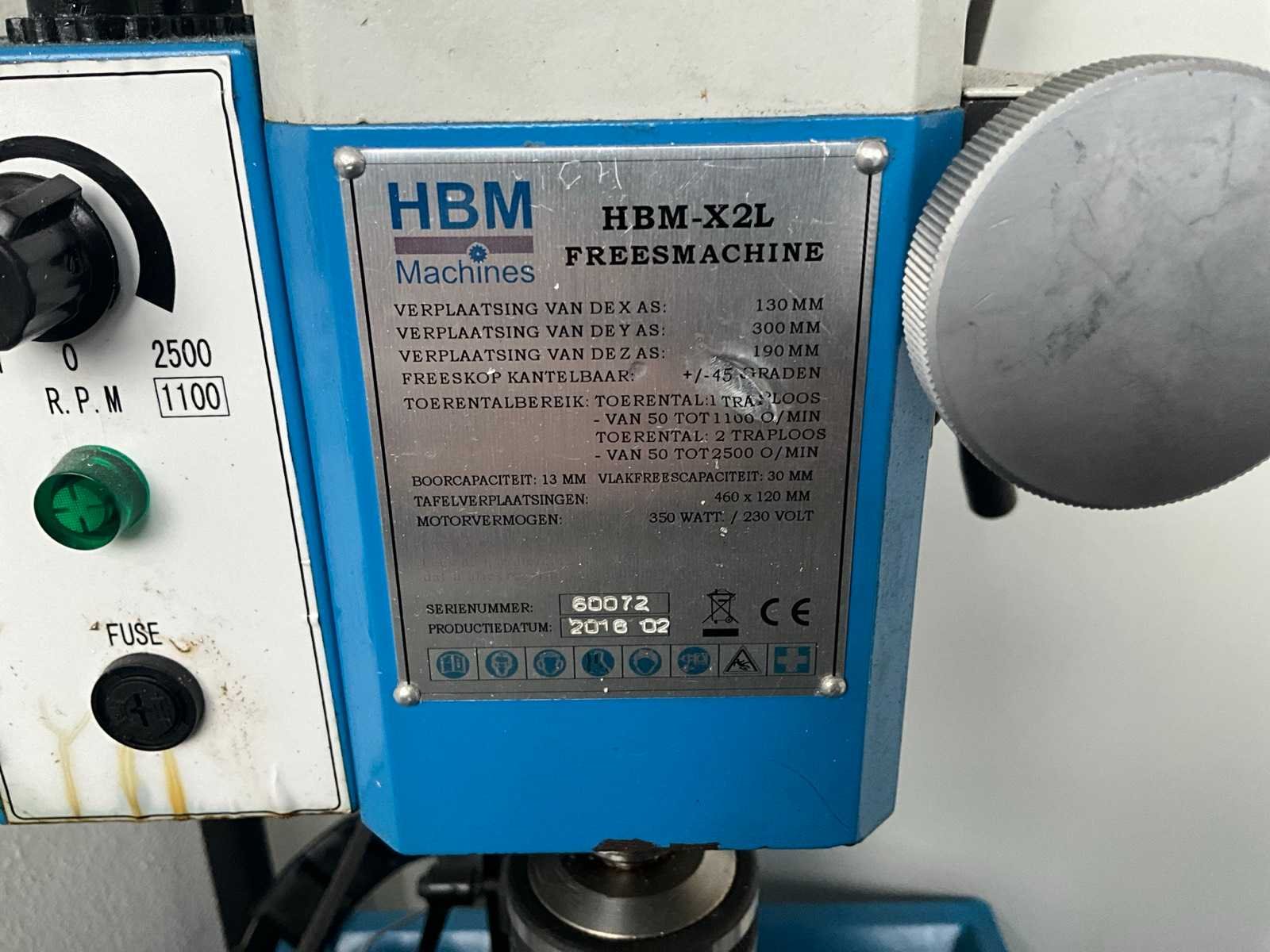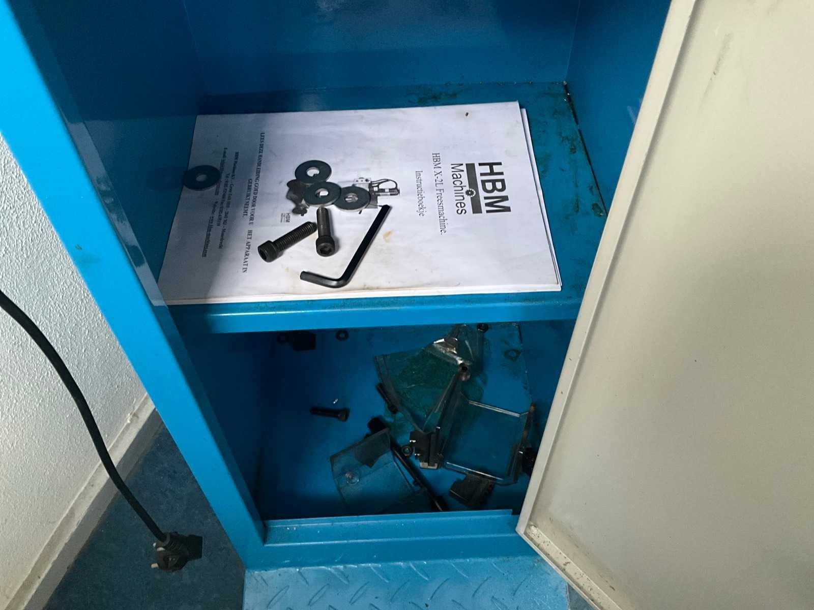 Merk: HBM Type: HBM-X2L Bouwjaar: 2016 Serienummer: 60072 Verplaatsing x-as: 130mm Verplaatsing y-as: 300mm Verplaatsing z-as: 190mm Opname: MC3 Snelheid van n =: 50rpm Snelheid tot n =: 2500rpm T-gleuf opspantafelafmeting L: 460mm T-gleuf opspantafelafmeting B: 120mm Motorvermogen (kW): 0.35kW Aansluiting: 230V Machinegewicht: 60kg Afmeting l: 600mm Afmeting b: 600mm Afmeting h: 1600mm