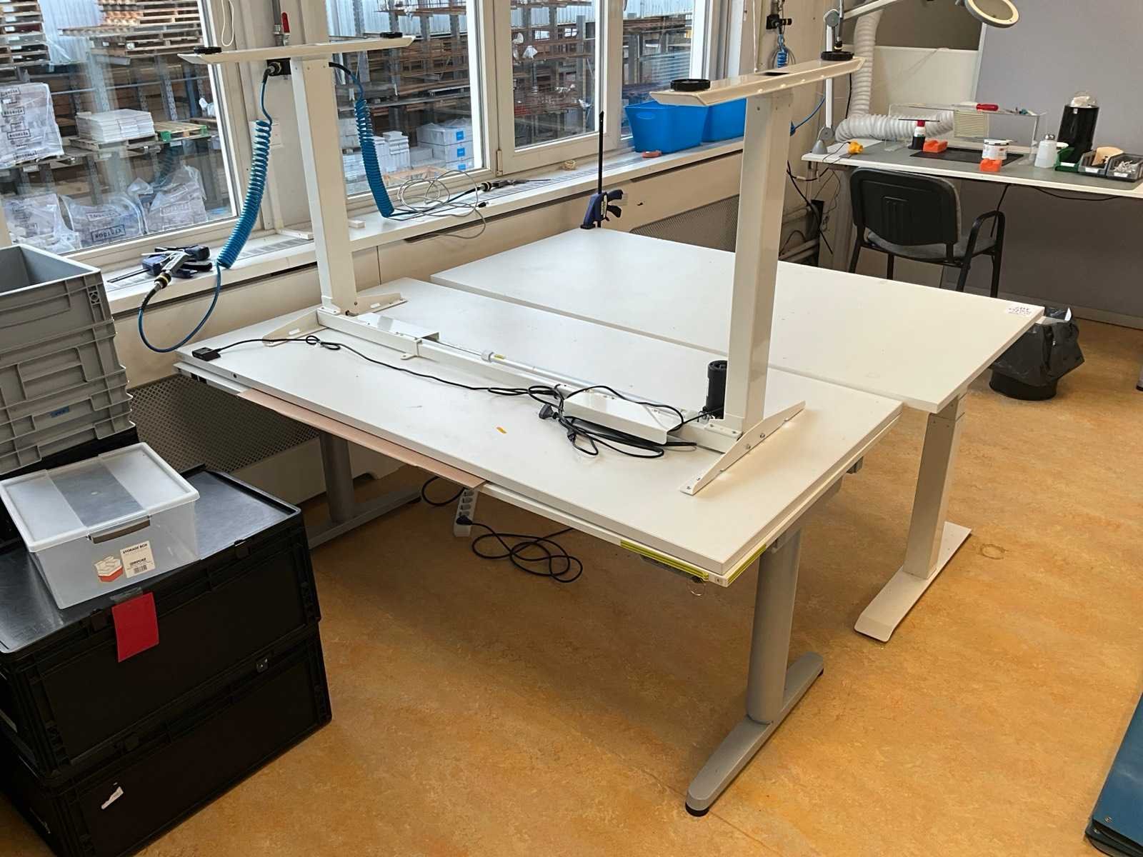 Voorzien van houten blad en metalen frame; inclusief 3x ladeblok en 1x werktafel, afmeting 80x80cm in hoogte verstelbaar Kleur: Wit Lengte: 160cm Breedte: 80cm