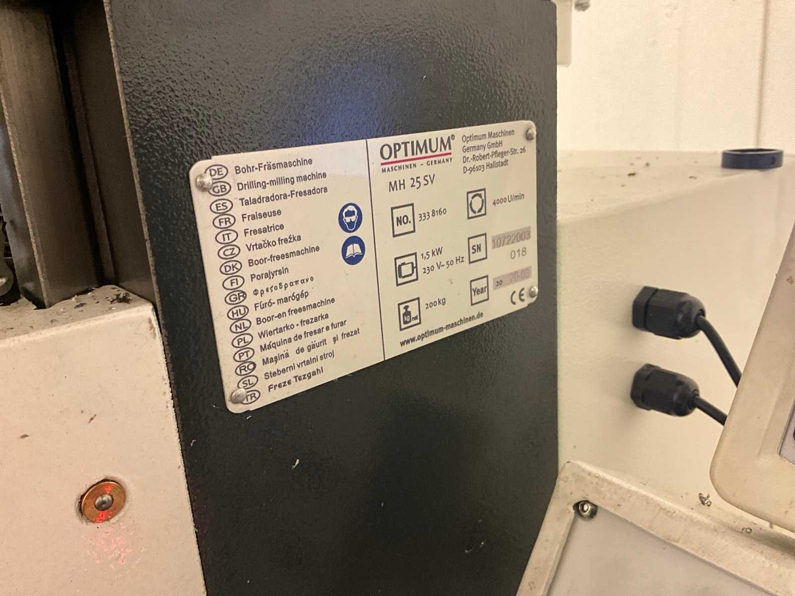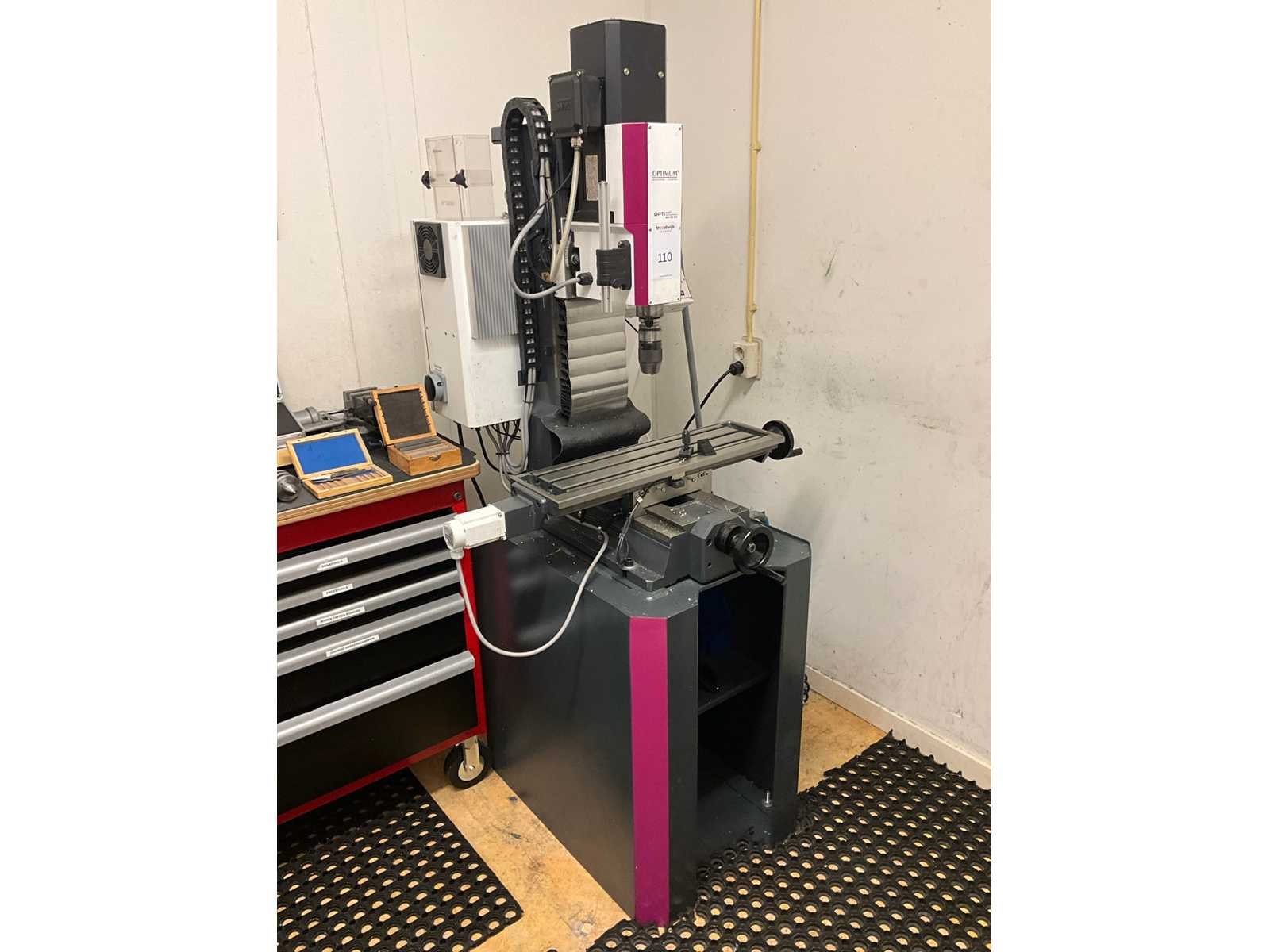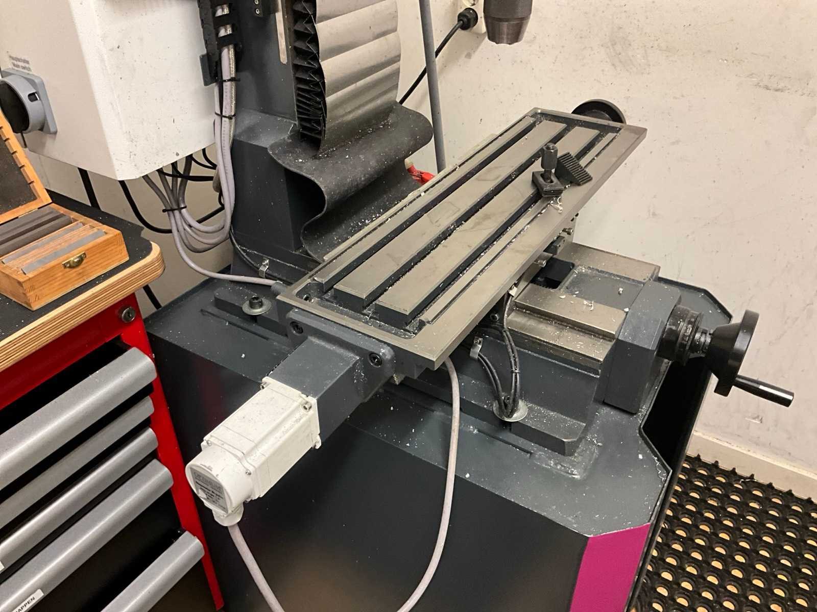 Inclusief Erro Storage gereedschapswagen met inhoud, afmeting: H90xL95xB53cm Merk: Optimum Type: optimill mh 25 sv Bouwjaar: 2020 Serienummer: 10722003018 Verplaatsing x-as: 400mm Verplaatsing y-as: 210mm Verplaatsing z-as: 270mm Opname: BT 30 Snelheid van n =: 200rpm Snelheid tot n =: 4000rpm T-gleuf opspantafelafmeting L: 620mm T-gleuf opspantafelafmeting B: 180mm Werkstuk gewicht max.: 30kg Besturing, merk, type: Optimum DRO 5 Motorvermogen (kW): 1.5kW Aansluiting: 230V Machinegewicht: 200kg Afmeting l: 900mm Afmeting b: 950mm Afmeting h: 1800mm