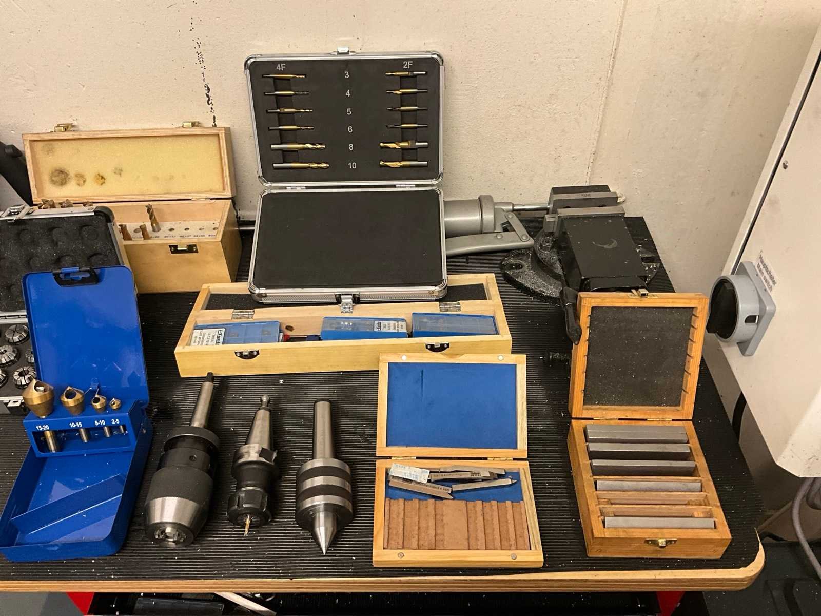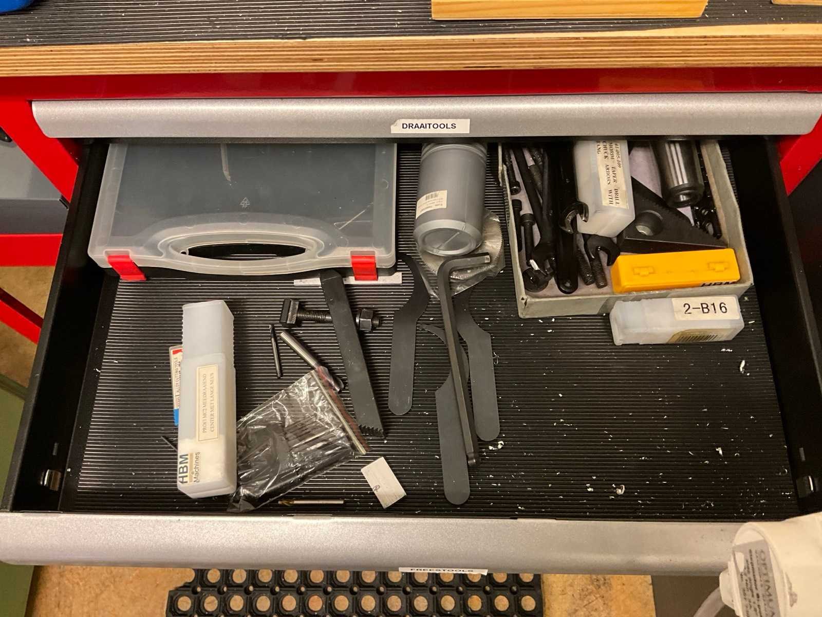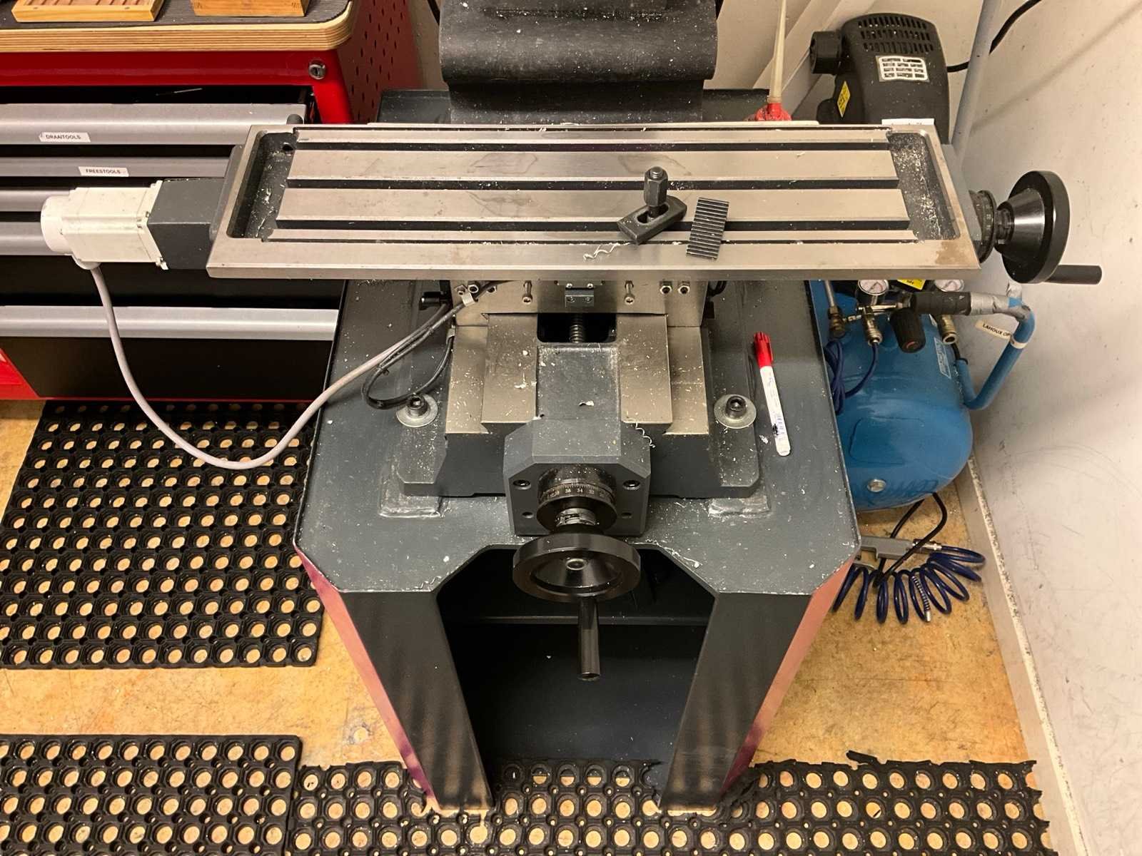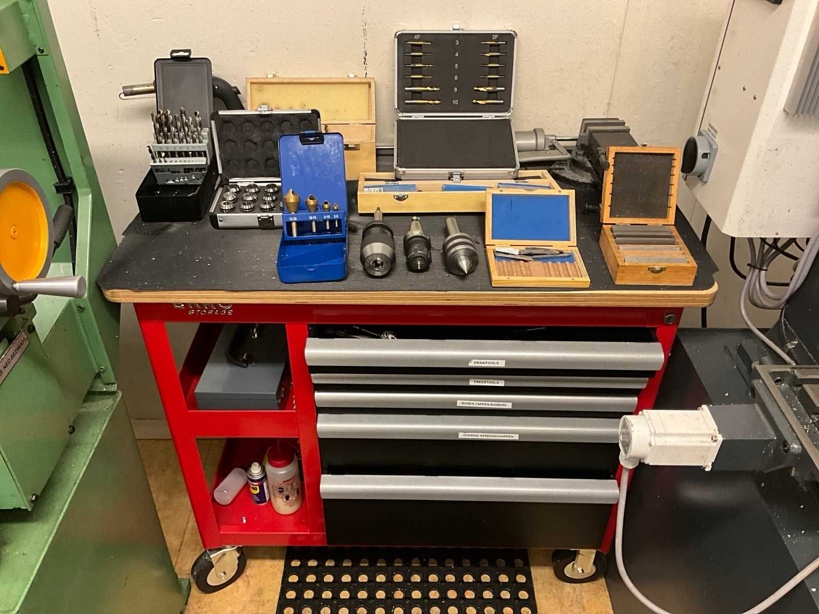 Inclusief Erro Storage gereedschapswagen met inhoud, afmeting: H90xL95xB53cm Merk: Optimum Type: optimill mh 25 sv Bouwjaar: 2020 Serienummer: 10722003018 Verplaatsing x-as: 400mm Verplaatsing y-as: 210mm Verplaatsing z-as: 270mm Opname: BT 30 Snelheid van n =: 200rpm Snelheid tot n =: 4000rpm T-gleuf opspantafelafmeting L: 620mm T-gleuf opspantafelafmeting B: 180mm Werkstuk gewicht max.: 30kg Besturing, merk, type: Optimum DRO 5 Motorvermogen (kW): 1.5kW Aansluiting: 230V Machinegewicht: 200kg Afmeting l: 900mm Afmeting b: 950mm Afmeting h: 1800mm