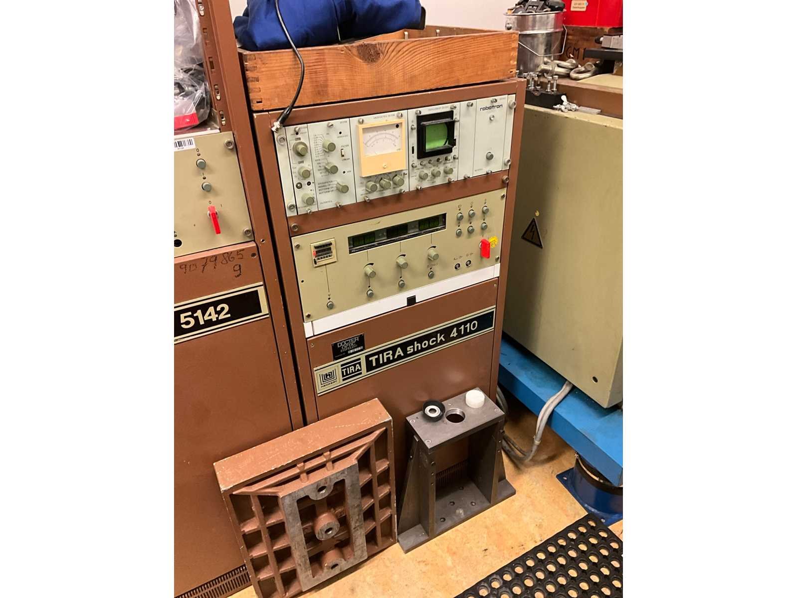 Frequentiebereik > 0-5000 Hz; max. laadvermogen: 100 kg; nominale kracht: 4000 N; maximale acceleratie: 500 m/sec 2; max. pad (tip-tip): 20mm; gewicht van de trilkop: 8 kg; signaal-ruisverhouding: ≥ 60 dB; helderfactor: < 25%; Koelmedium: lucht; nominaal uitgangsvermogen: 1200W; maximaal uitgangsvermogen: 1600 W; maximale uitgangsstroom: 40A; bedrijfsspanning: 3 ~380/220V; werkfrequentie: 50 Hz; totaal stroomverbruik: ca. 3,5 kVA; afmetingen trilplaat mm: 1060x990x750; afmetingen van de regel- en meetkast mm: 590x1800x520; gewicht van de vibrator: 1050 kg; gewicht van de regel- en meetkast: 160 kg; Gewichten model 4110: trilblok: 800 kg en besturing 95 kg; voorzien van diverse documentatie en lectuur Merk: Tira Type: VIB 5142/Shock 4110 Eigen gewicht: 1210kg