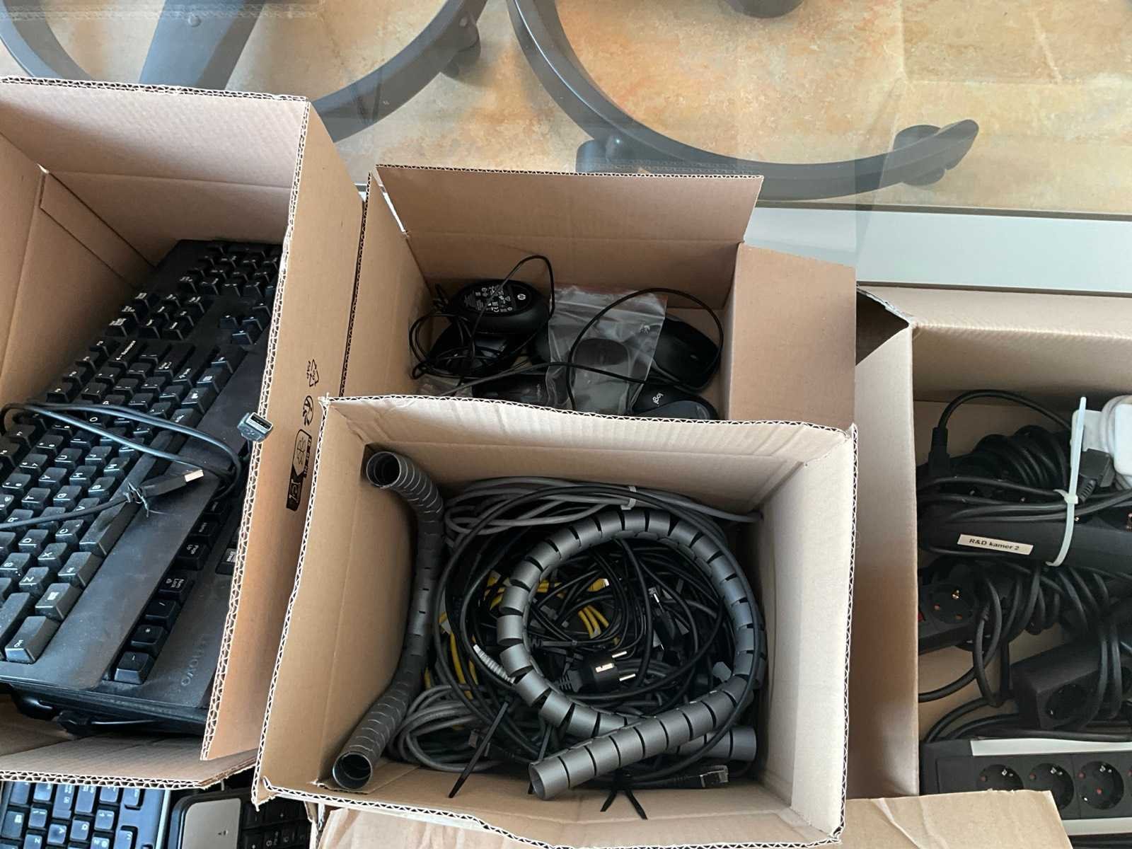 Betreft inhoud van 8x doos. Inhoud bestaat onder andere uit: toetsenborden, muizen, stekkerdozen, bekabeling, Lenovo thinkpad docks