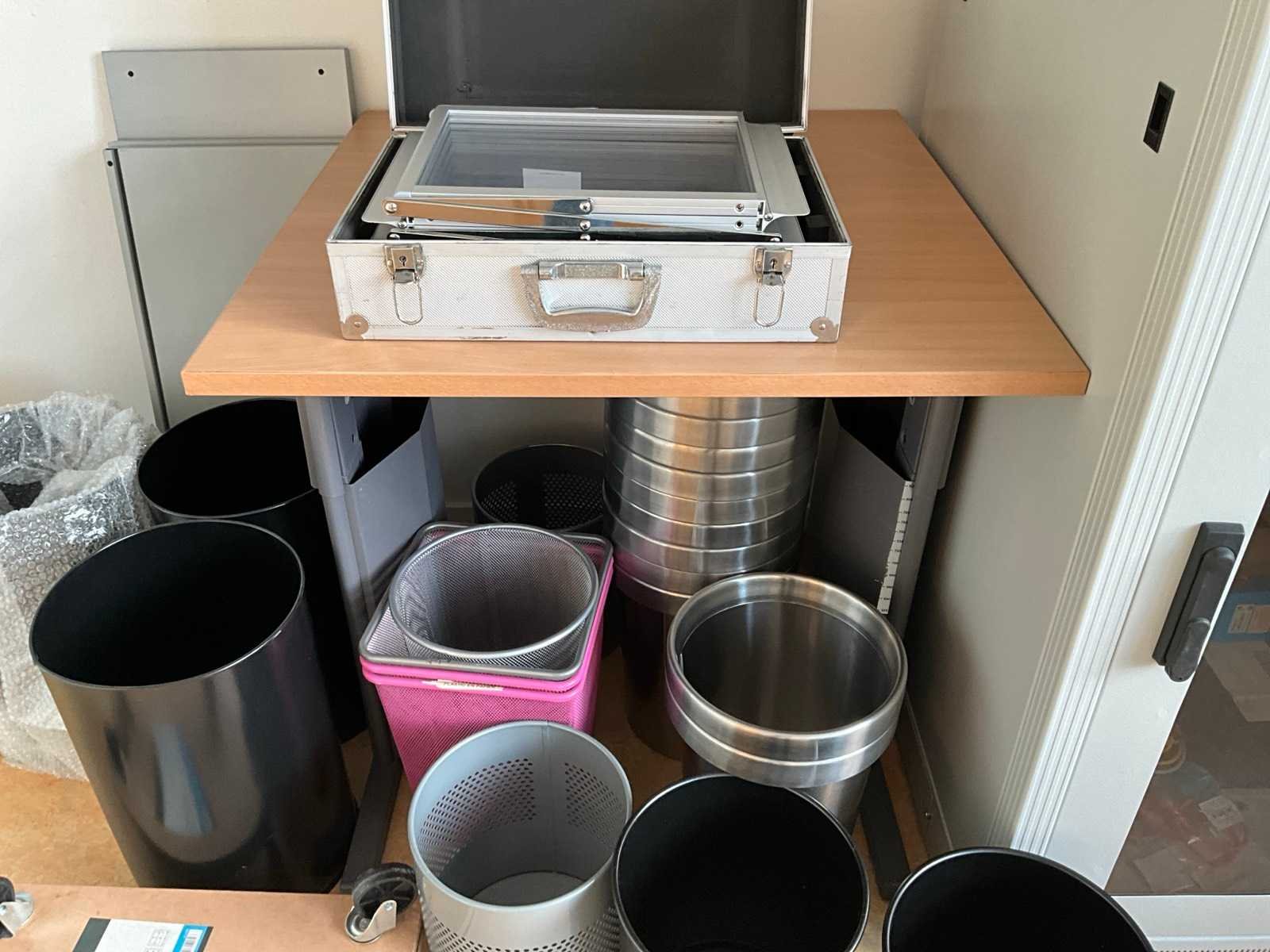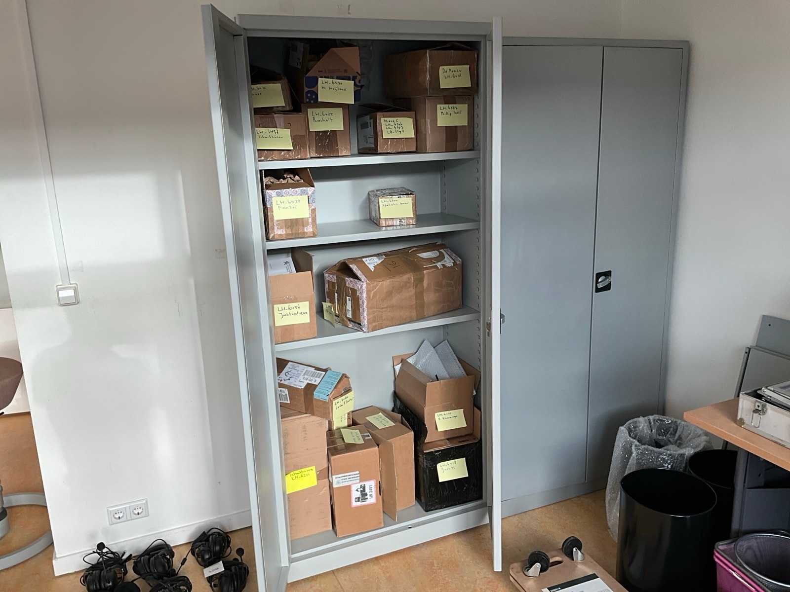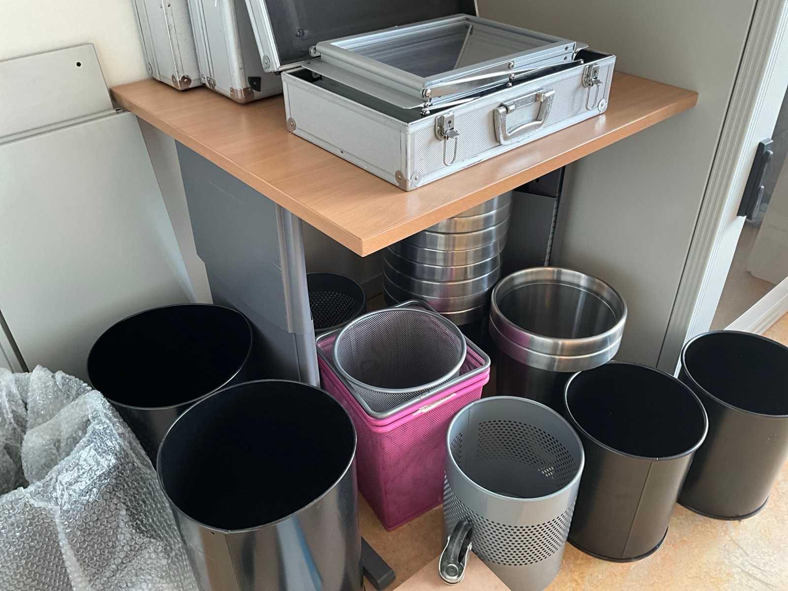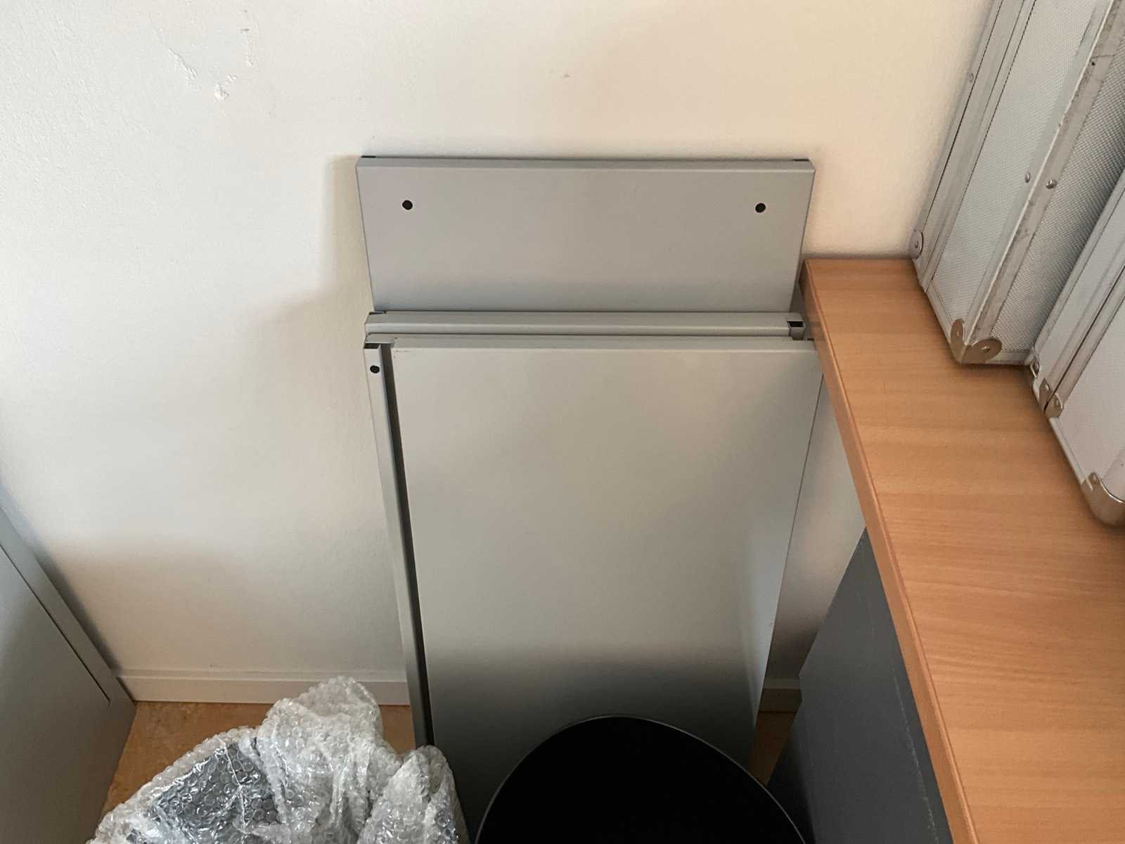 Afmetingen: H194xB92xD44cm en H198xB90xD44cm; inclusief bureautafel, in hoogte verstelbaar, 80x80cm Materiaal: Metaal