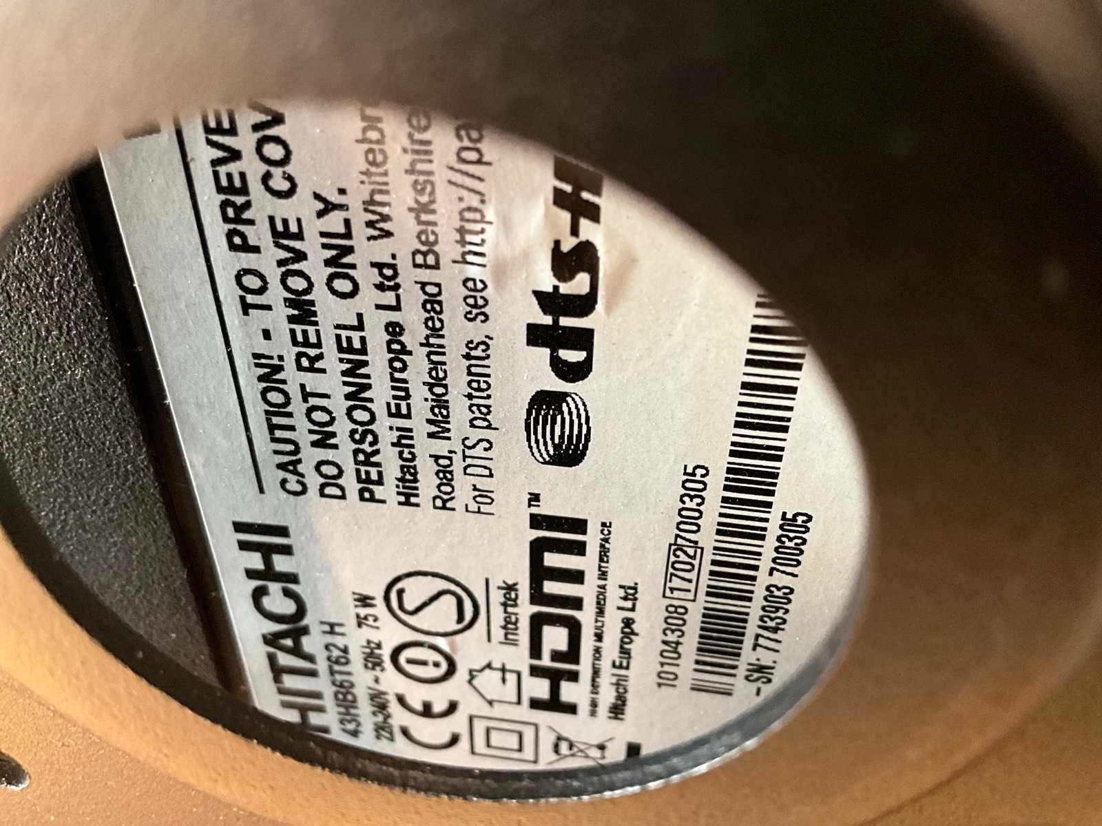 Voorzien van afstandsbediening; voorzien van verrijdbaar frame Merk: Hitachi Model: 43HB6T62 Beelddiagonaal: 43'' Smart TV: true