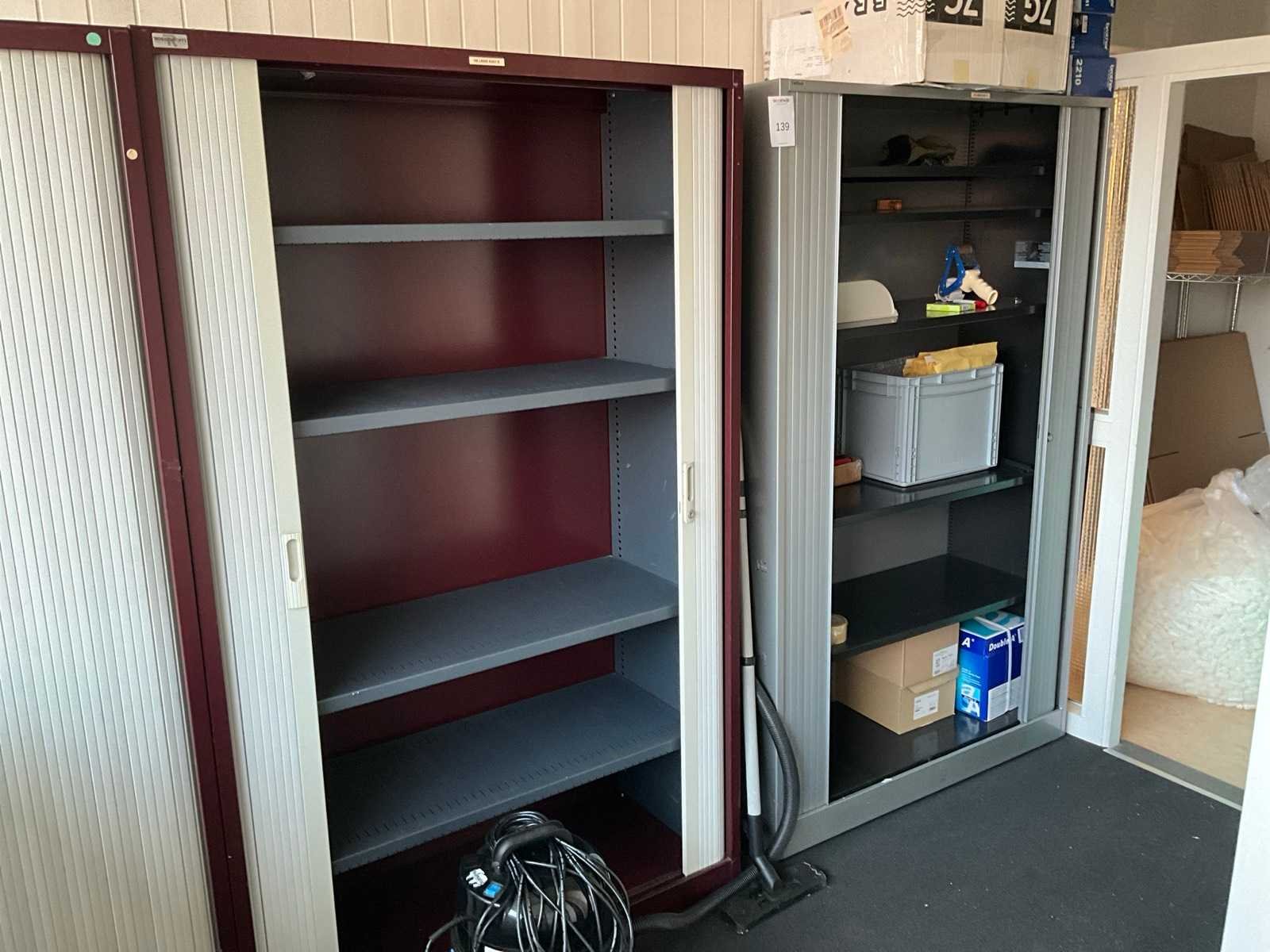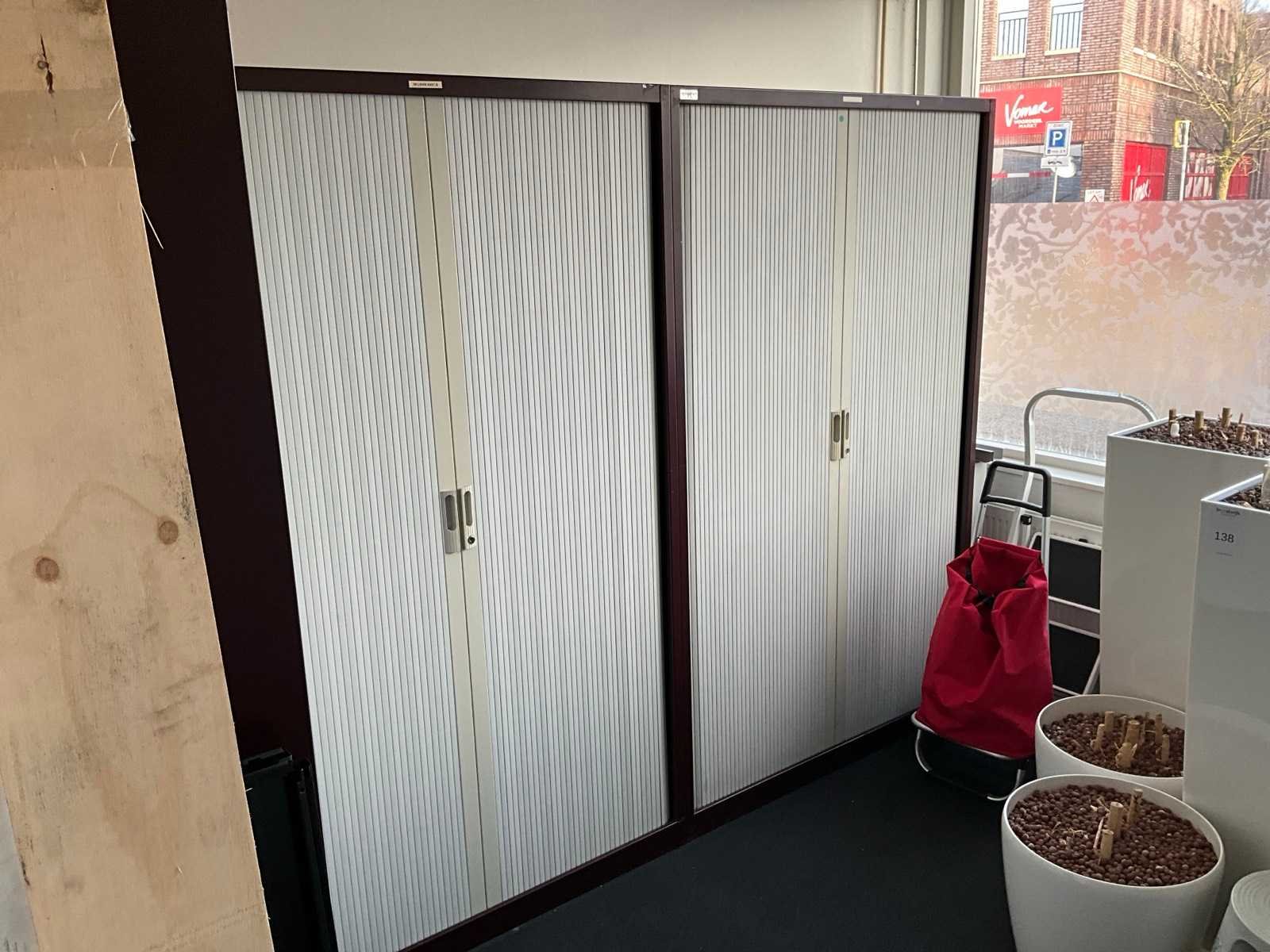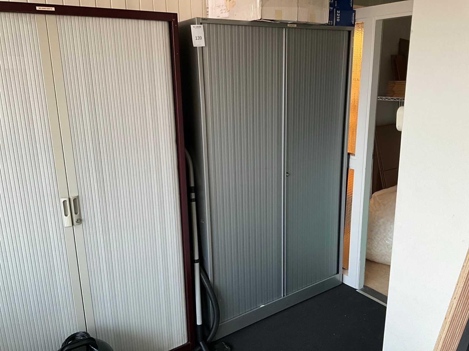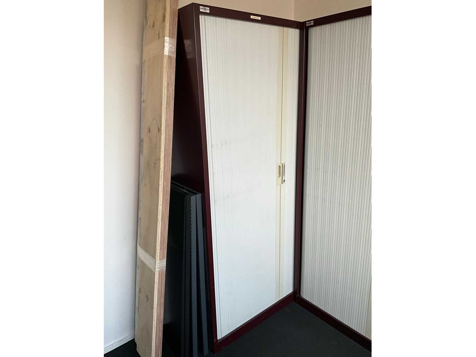 Betreft 5x Robberechts roldeurkast en 1x Ahrend roldeurkast; voorzien van diverse legborden Breedte: 120cm Hoogte: 195cm Diepte: 46cm Materiaal: Metaal