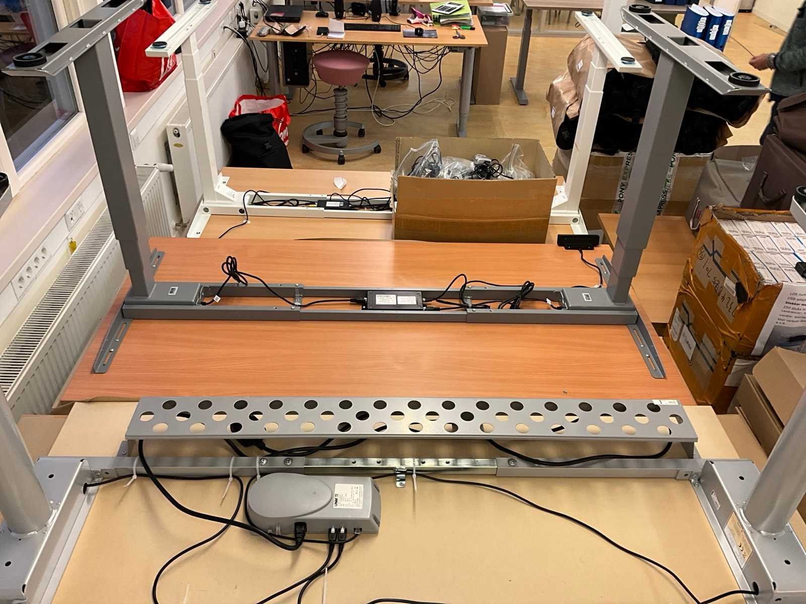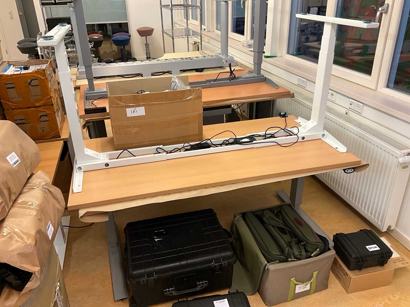 Bestaande uit: 6x 160x80cm en 1x hoekbureau 160x120/80cm; inclusief 3x ladeblok