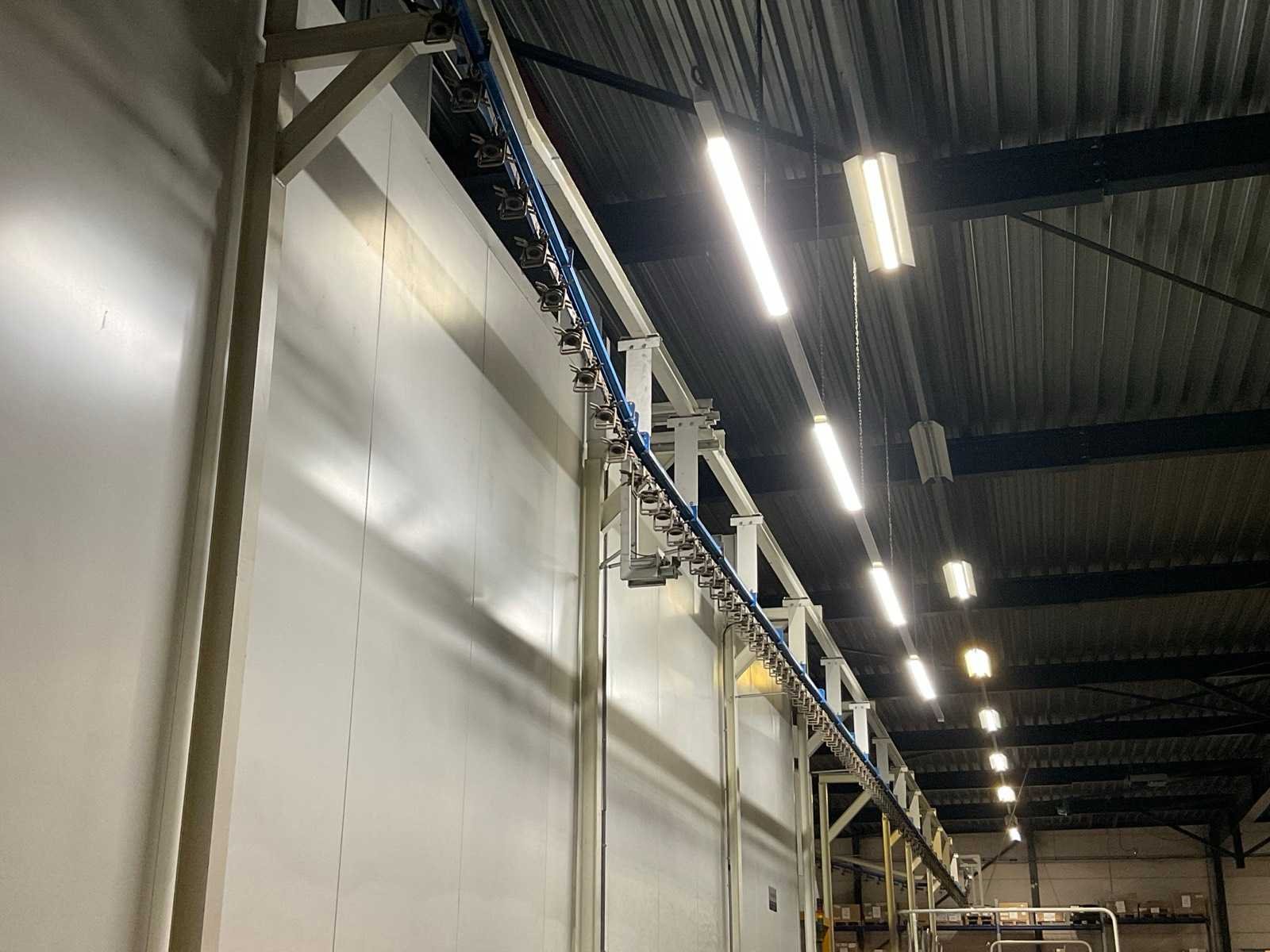 Baanlengte circa: 250 meter; maximale toegestane belasting per ophangpunt: 55 kg; totale toelaatbare baanbelasting: 9.000 kg; snelheid 0,5 - 4 m/min. Inclusief: bokken. Merk: Emotech