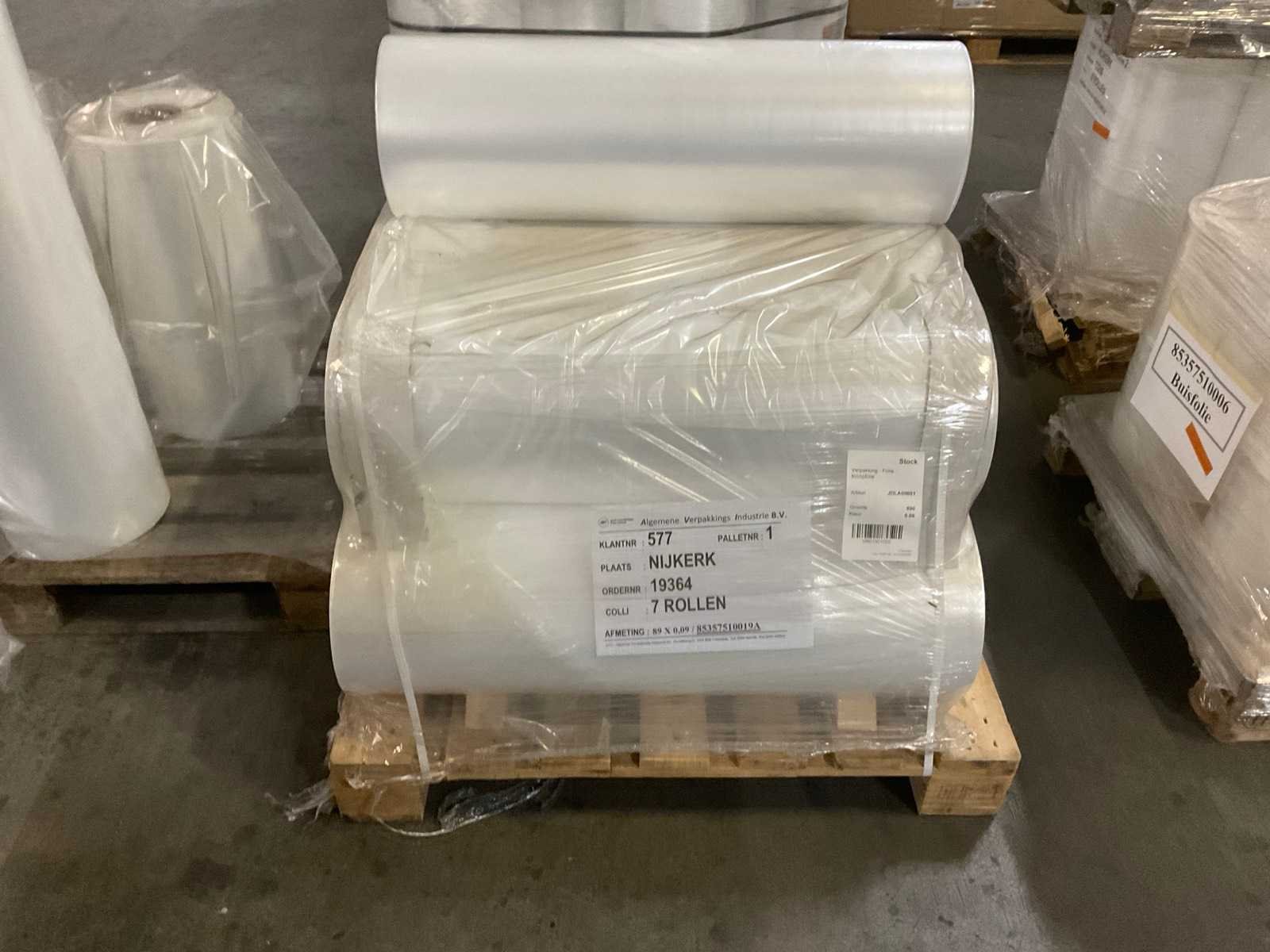 Bestaande uit: (1x) pallet 30 rollen LDPE 240x0,10mm - 572kg, (4x) pallet 60 rollen LDPE 35x0,06mm, (4x) pallet 32 rollen LDPE 60 x 0,09mm, (4x) pallet met diverse rollen.