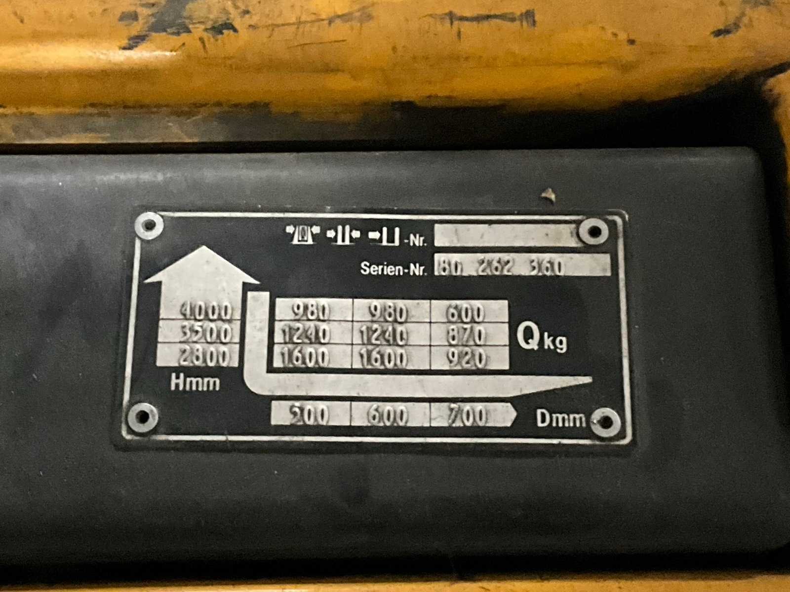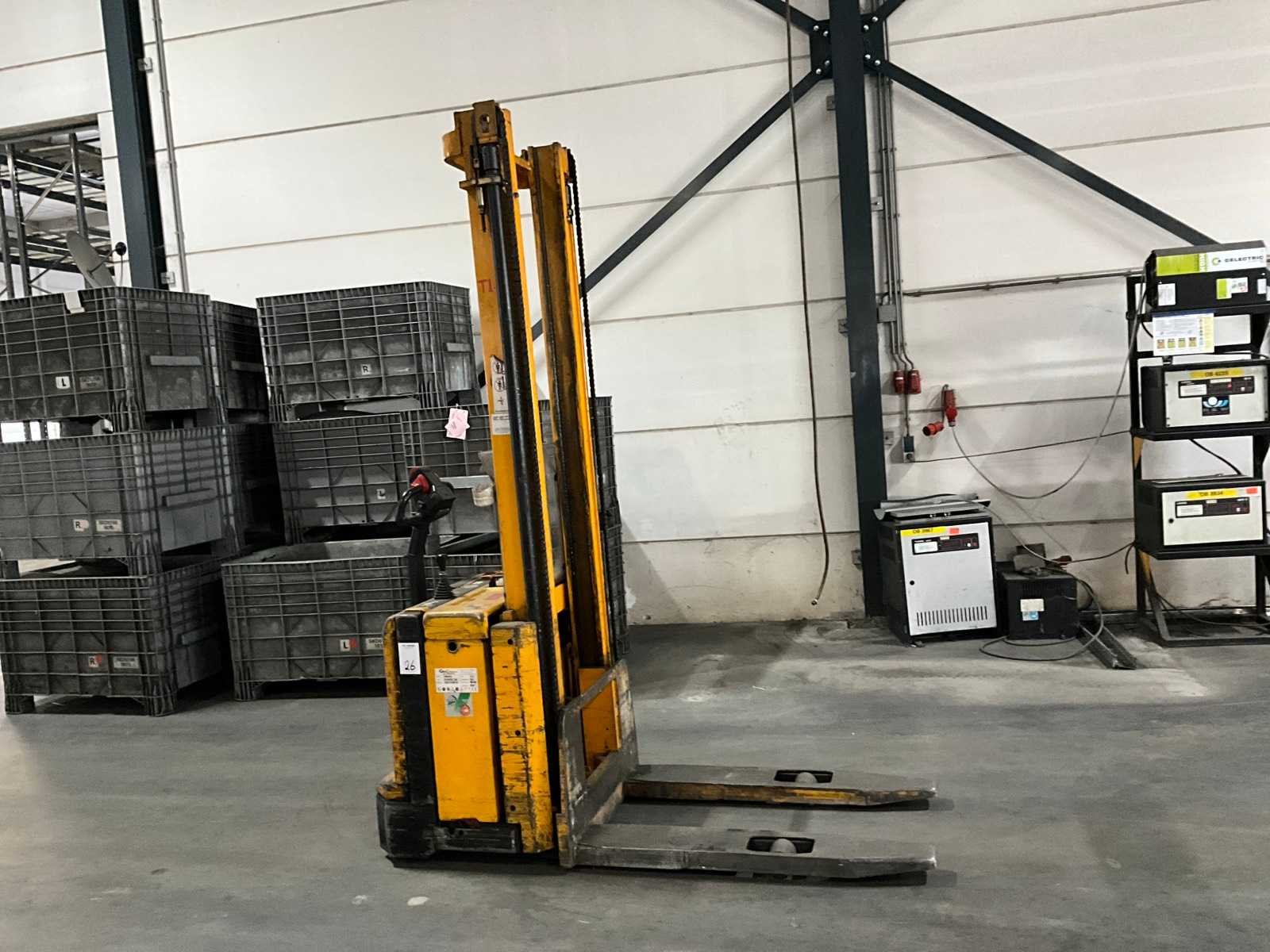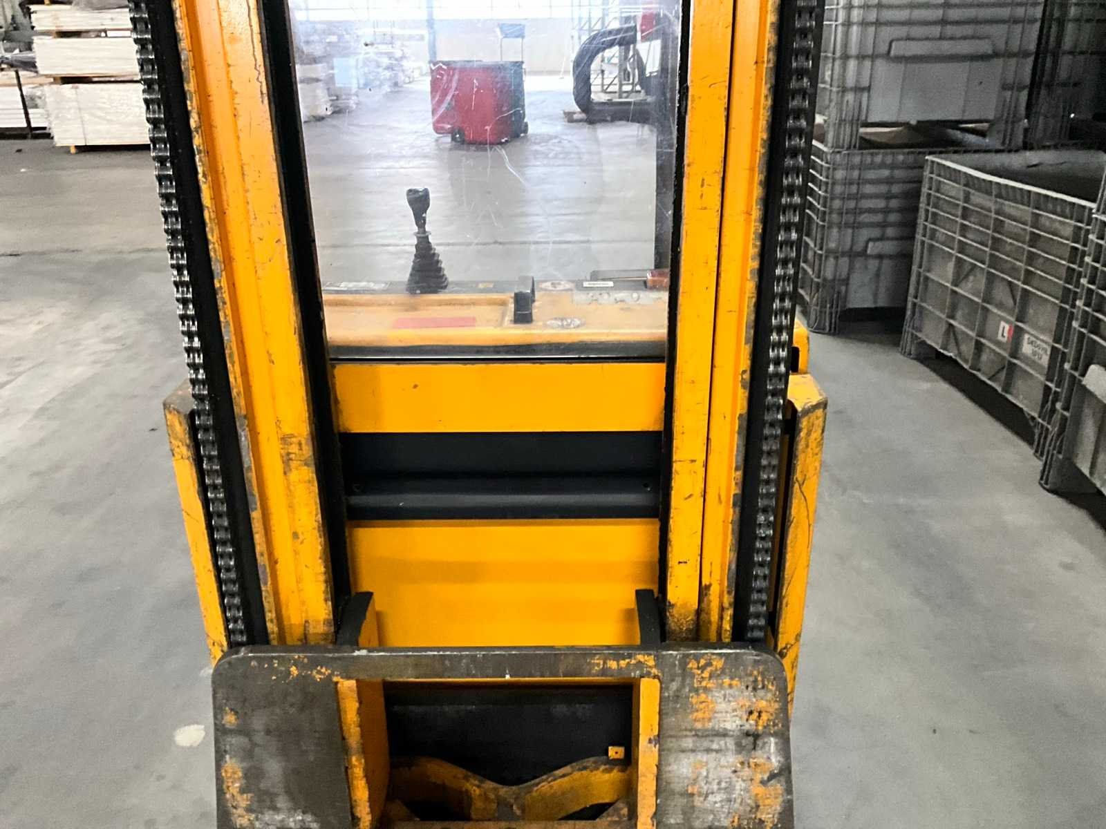 Merk: Jungheinrich Hefvermogen: 1600kg Hefhoogte: 4000mm Lepellengte: 1150mm Afgelezen urenstand: 1126 Minimale doorrijhoogte: 2500mm Totale afmeting L: 1800mm Totale afmeting Breedte: 860mm Totale afmeting Hoogte: 2500mm Accu lader: true