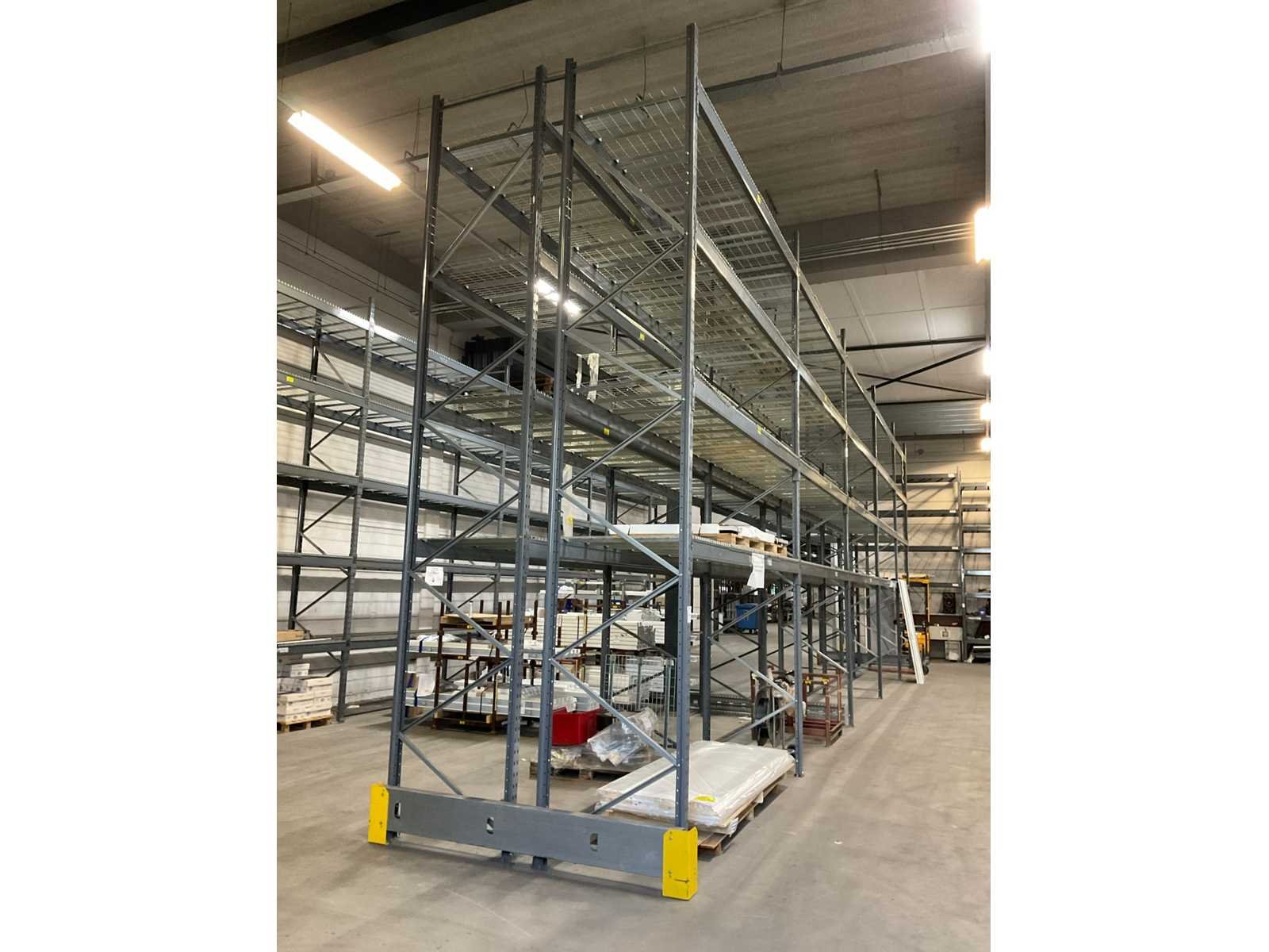 Voorzien van: legroosters en aanrijbeveiliging Aantal secties: 23 Sectie afm. b: 3600mm Sectie diepte: 1100mm Sectie afm. h: 6000mm Aantal staanders: 28 Aantal liggers: 200 Demontabel: true Materiaal: Staal