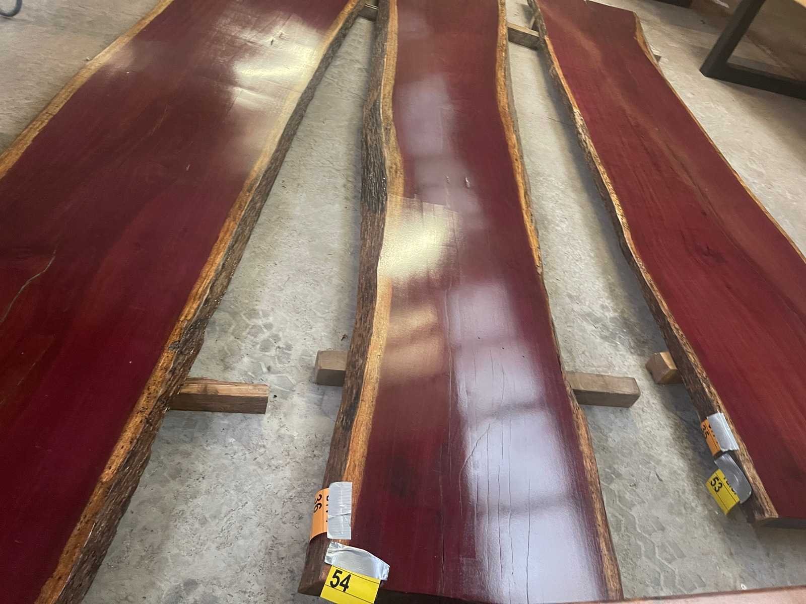 Geschuurd en geolied. Let op, breedte is de gemiddelde breedte. Lengte: 400cm Breedte: 65cm Hoogte: 6,5cm Materiaal: Purple Heart