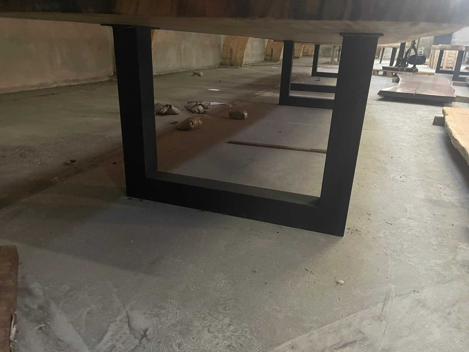 Wordt aangeboden met poten. Geschuurd en geolied. Let op, breedte is de gemiddelde breedte. Lengte: 400cm Breedte: 120cm Hoogte: 8cm Materiaal: Suar
