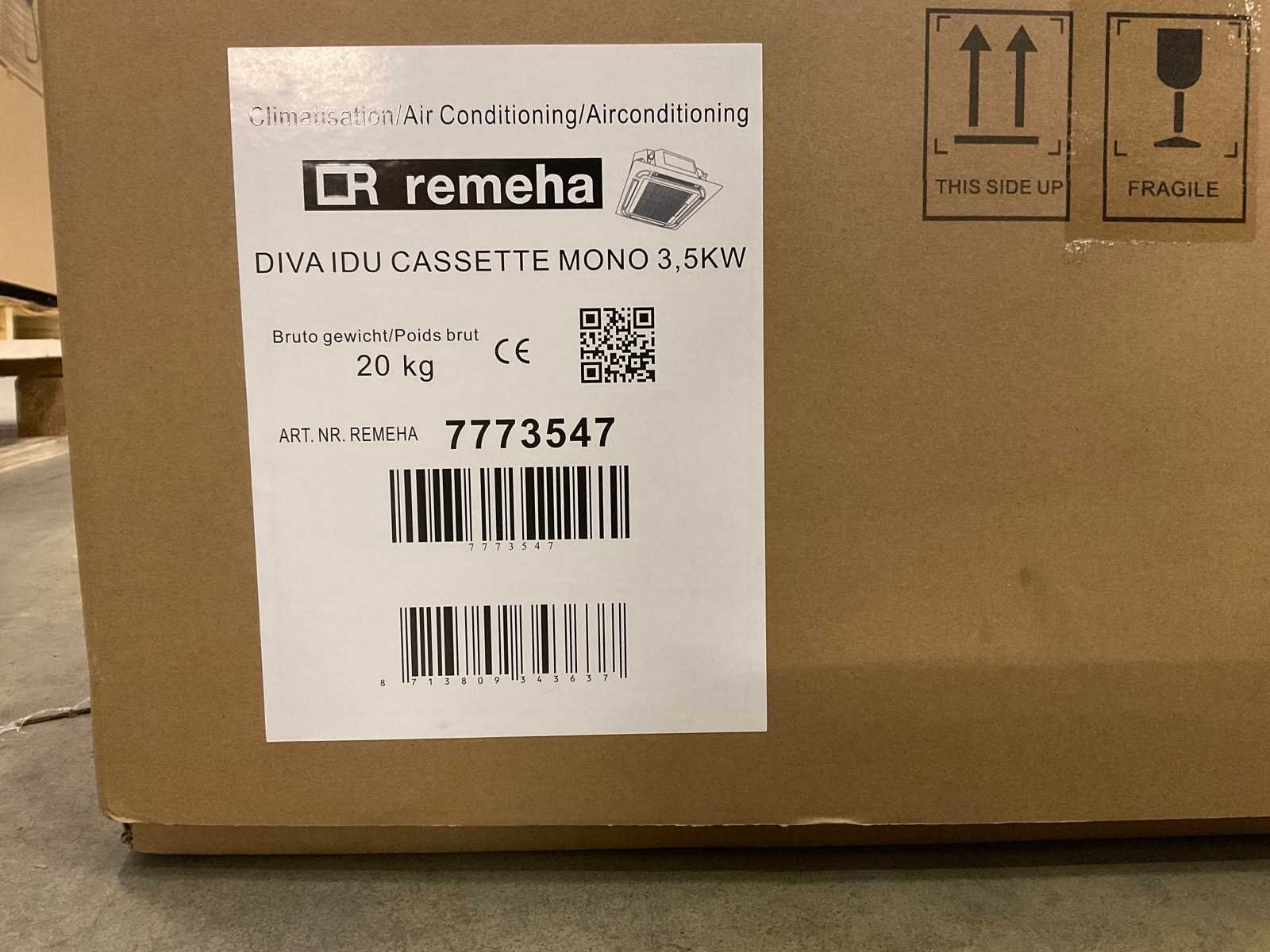 Kavel bestaat uit: 1x DIVA Serie 2 mono-split buitendeel 3,5 kW cassette, serienr. 7776069 1x DIVA Serie 2 mono-split cassette 3,5 kW, serienr. 7773547 Let op: Word geleverd zonder paneel voor casette! Merk: Remeha Type: Diva Serienummer: 7776069 Koelcapaciteit (W): 3600 Verwarmingscapaciteit: 4200 Type koudemiddel: R32 Split-unit: true Aansluiting: 230V Eigen gewicht: 35kg