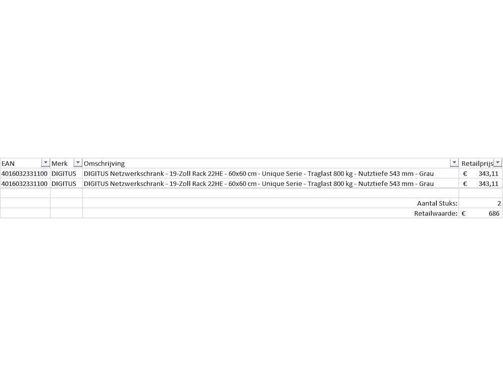 Dit betreft een partij noodstroomvoorzieningen van een grote online retailer. De partij bestaat uit diverse soorten noodstroom voorzieningen waaronder back ups, power stations etc. Aantal stuks: 2. Retailwaarde: €686,- Ongecontroleerd: werking onbekend (mix van werkend, incompleet, beschadigd, te gebruiken voor onderdelen). Kom op de kijkdag om te om zo een goed beeld te krijgen van de reden van retour. Zie foto's voor lijst met inhoud. Bezorgtermijn 14 dagen Merk: Pallet Retourgoederen - Noodstroom voorzieningen