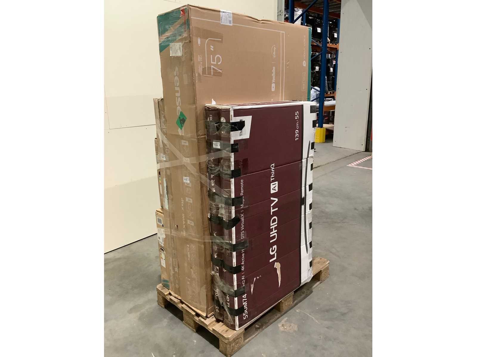 Dit betreft een partij televisies retourgoederen van een grote online retailer. De partij bestaat uit diverse diverse maten televisies. Aantal stuks: 5. Retailwaarde: €2690,- De televisies zijn niet werkend en zijn te gebruiken voor onderdelen. Kom op de kijkdag om te om zo een goed beeld te krijgen van de reden van retour. Zie foto's voor lijst met inhoud. Bezorgtermijn 14 dagen Merk: Pallet Retourgoederen - Televisies