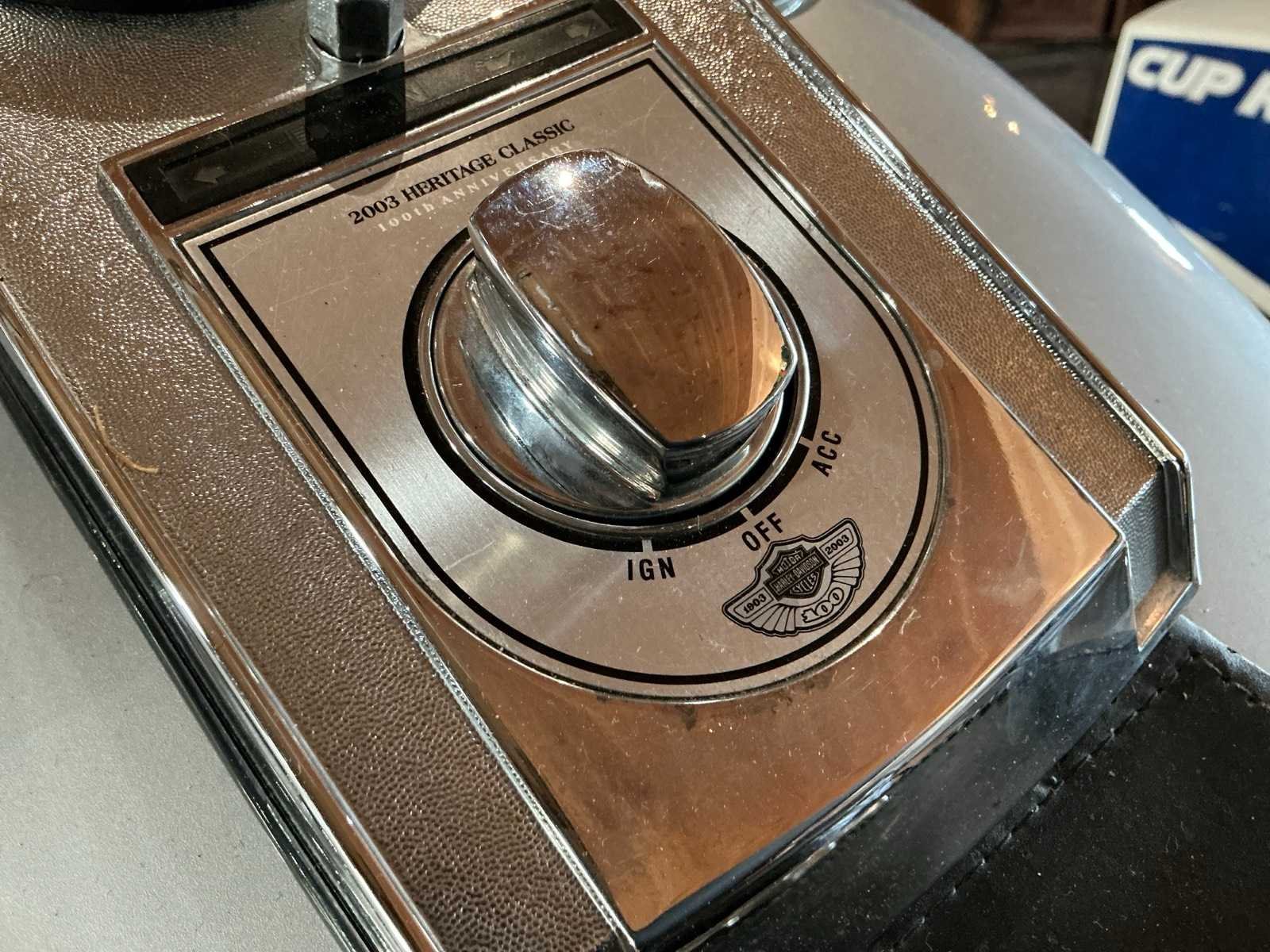100 jarig jubileum uitvoering Harley sportster met bladgoud special paint bewerkt chroom Merk: Harley-Davidson Type: 88 FLSTC Heritage Classic Kenteken: 05-ML-VK Brandstof: benzine Chassisnummer: 1HD1BWB423Y044670 Cilinderinhoud: 1449cc Datum eerste toelating: 2003-02-28 Gewicht: 350kg Vermogen (kW): 46kW Transmissie: Handgeschakeld Datum eerste toelating (NL): 2020-05-27 Bruto BPM (NL): 653€ Rest BPM: 0€ Nationaliteit documenten: Nederland Bouwjaar: 2002 Self drive export possible : true