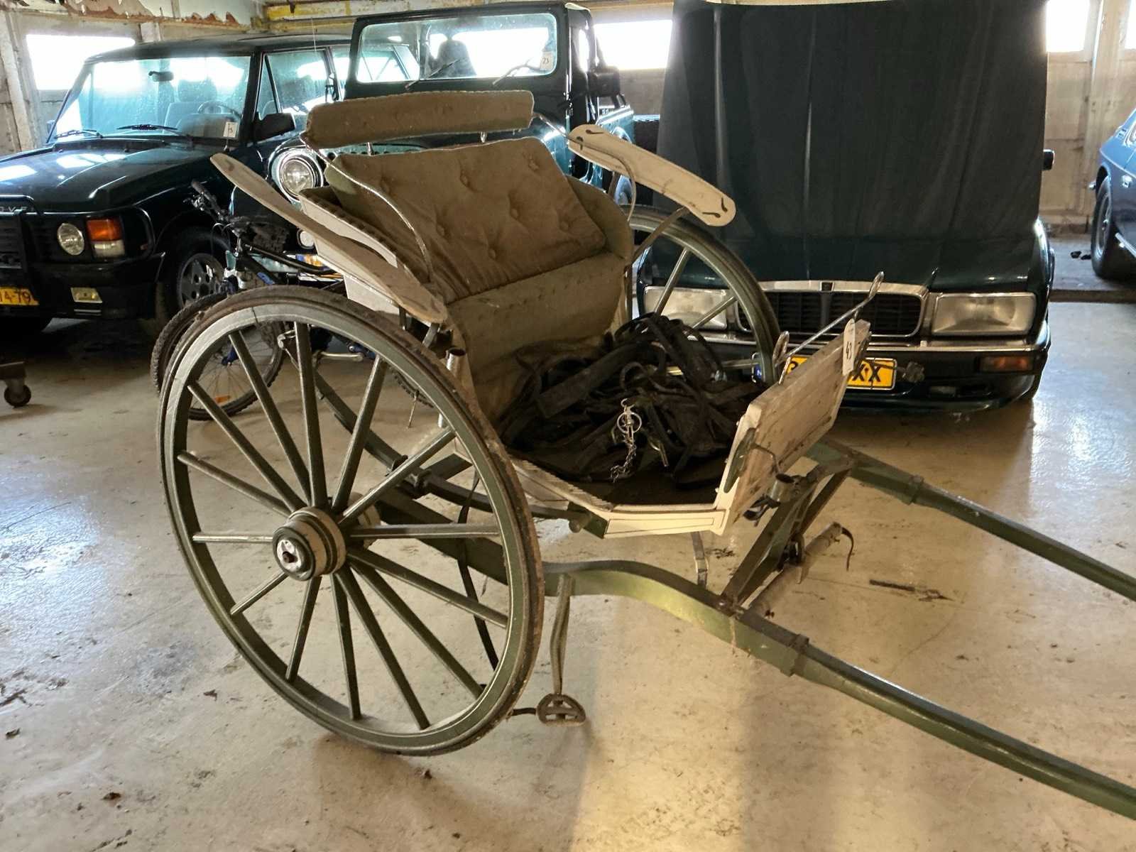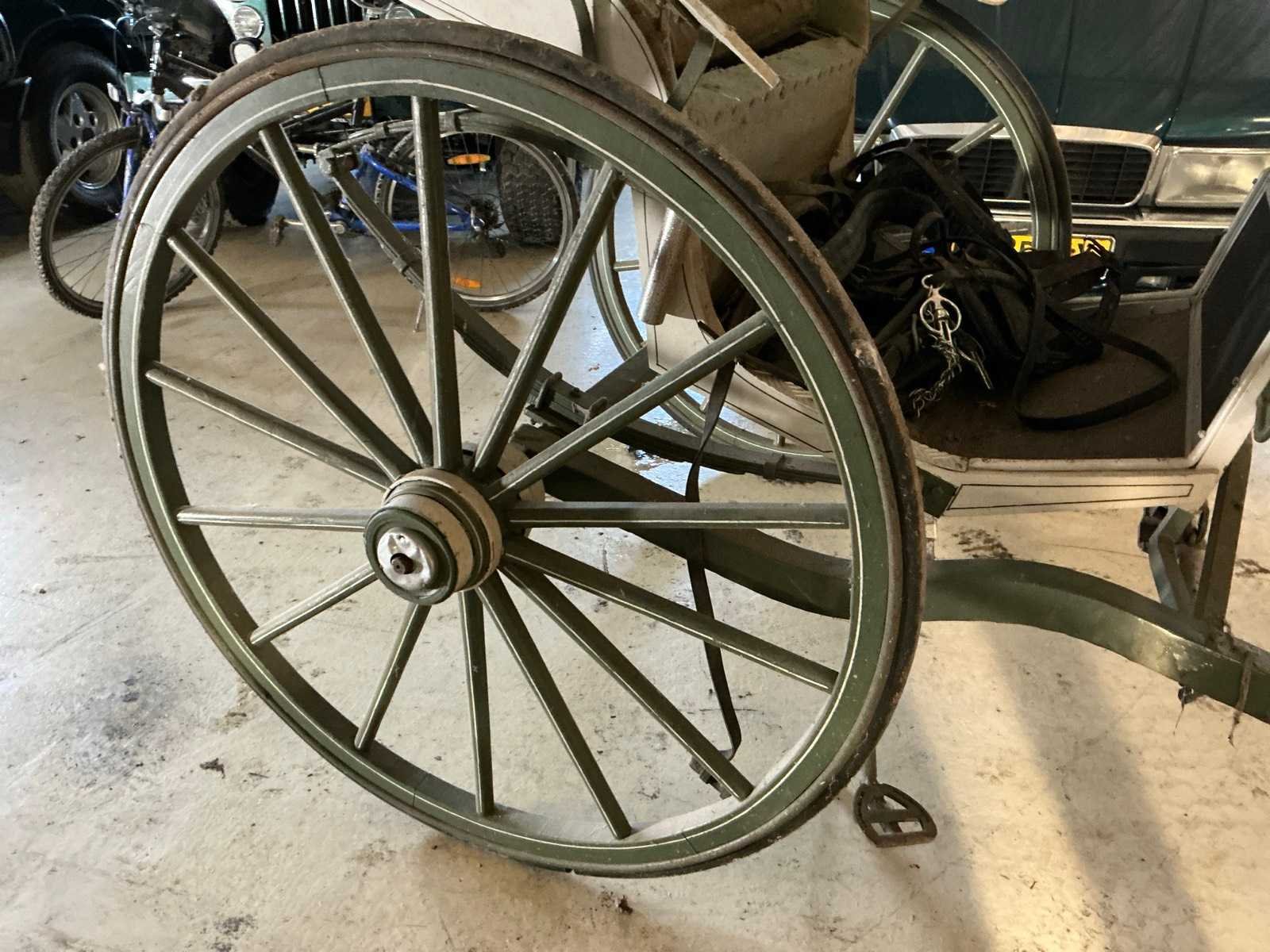 Houten wiel met rubber band Model: Oostenrijkse sjees Lengte: 320cm Breedte: 143cm Hoogte: 1300cm
