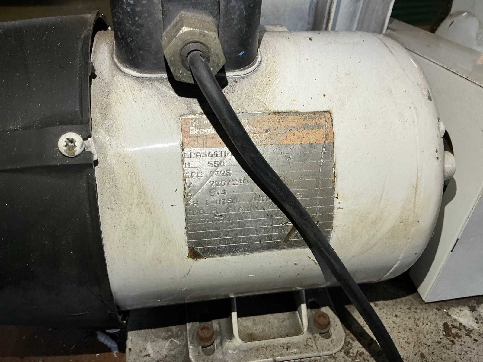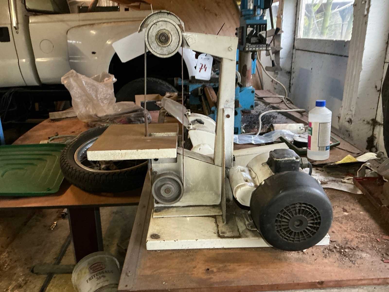 Inclusief dubbel steens slijpmachine voorzien van slijpsteen en staalborstel, voorzien van USA stekkers Merk: Vanco Type: Flexiband Model1 Serienummer: 12947 Schuurband afm. l: 22mm Aansluiting: 230V Afmeting l: 600mm Afmeting b: 360mm Afmeting h: 570mm