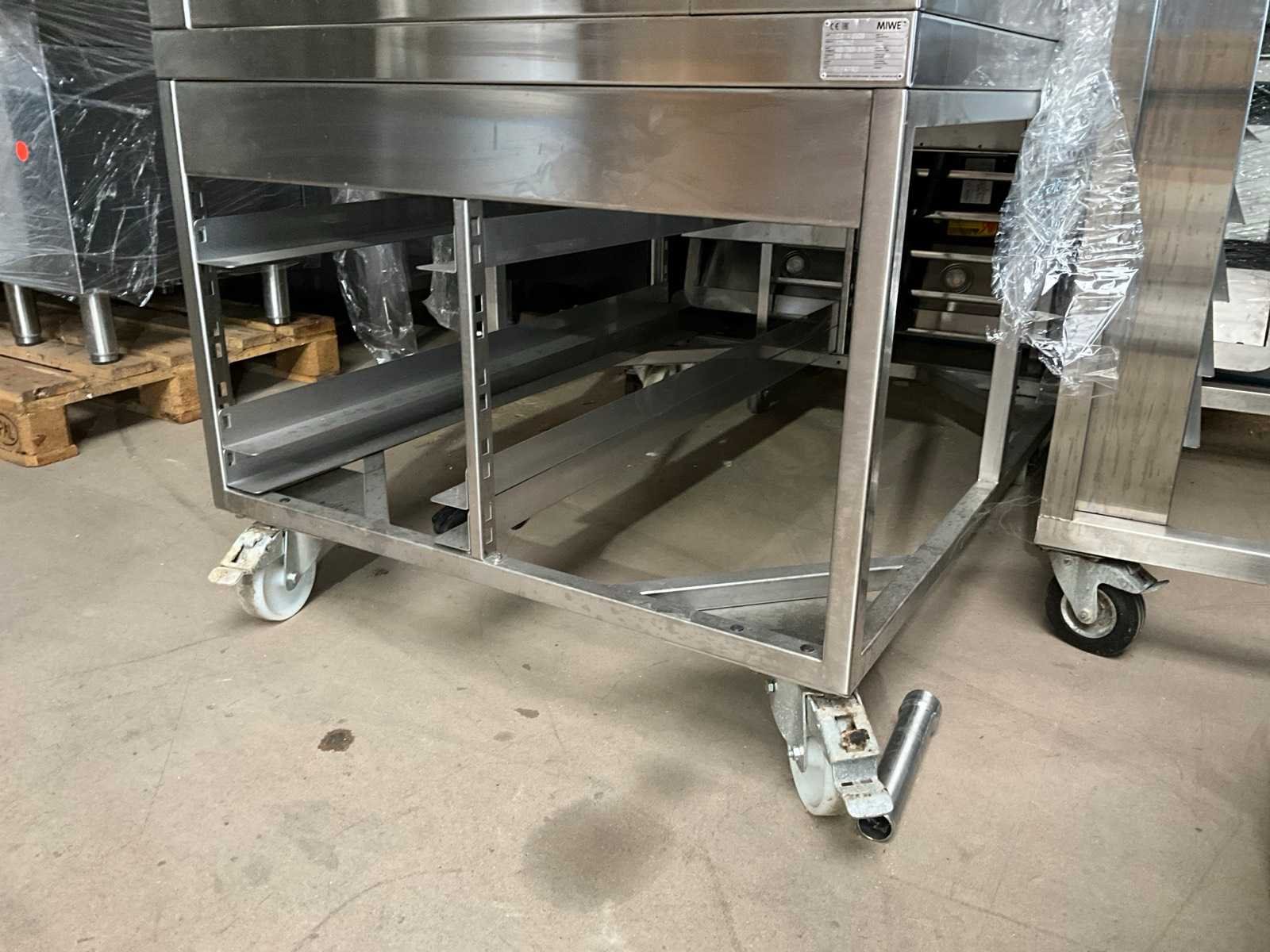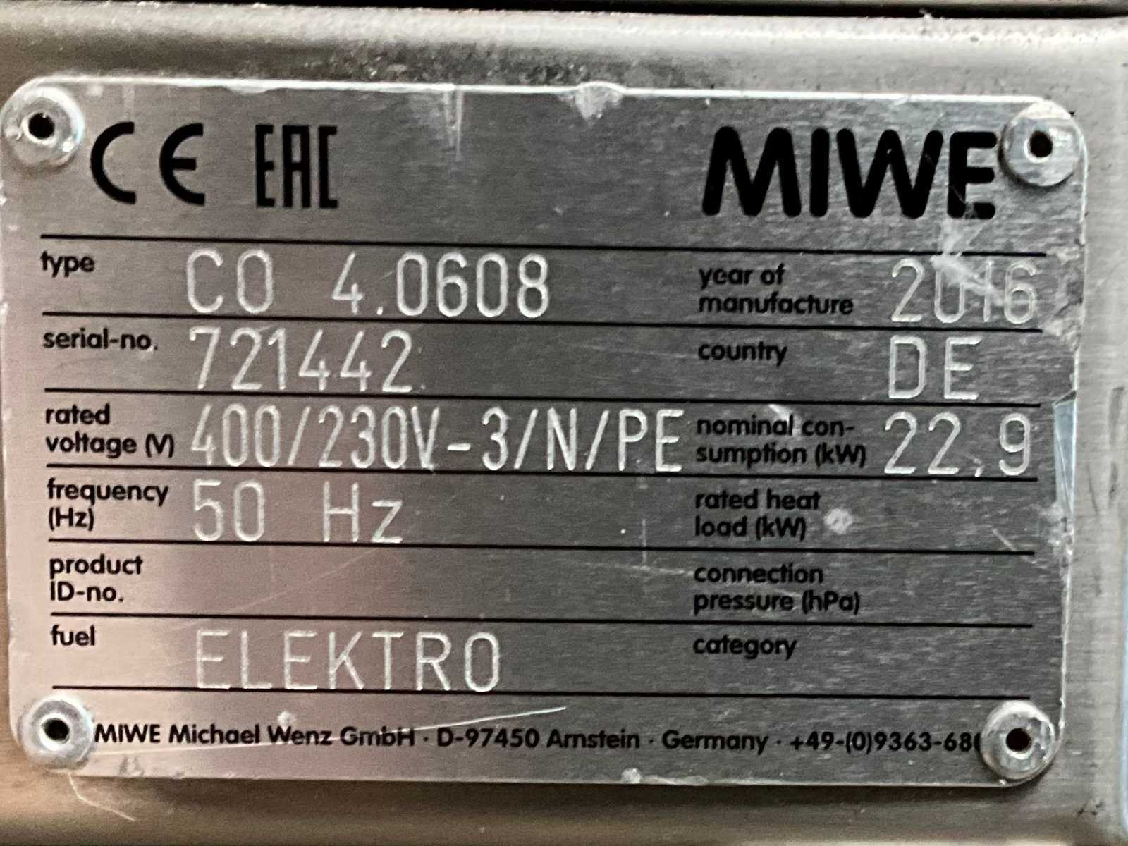 Roestvast staal; voorzien van 4 beglaasde klapdeuren; elk niveau voorzien van separate tiptoest bediening; invoer afmeting 600x800x155 mm; totaal vermogen 22,9 kW; roestvast staal wasemkap; roestvast staal verrijdbaar onderstel; Merk: Miwe Type: CO 4.0608 Bouwjaar: 2016 Aantal niveau's: 4 Aansluiting: 400V Totale afmeting L: 900mm Totale afmeting Breedte: 1610mm Totale afmeting Hoogte: 2120mm