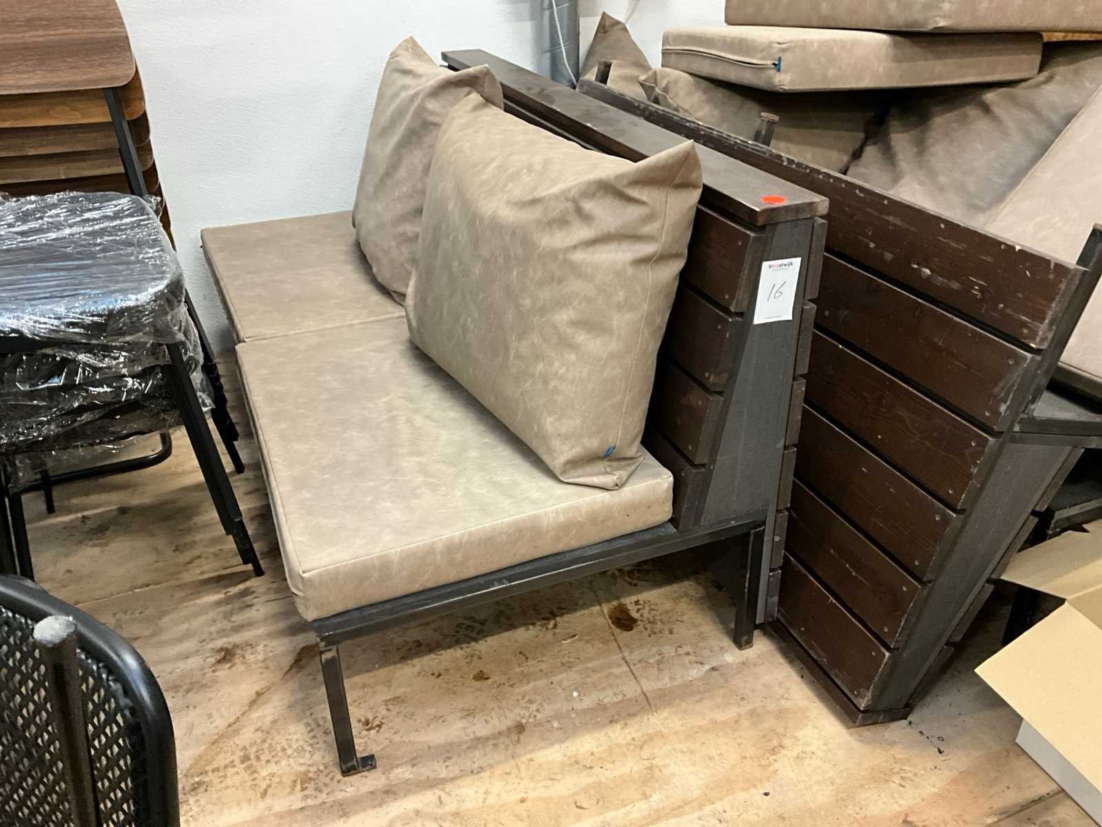 Hout en metaal Merk: Nofruit Lengte: 90cm Breedte: 170cm Hoogte: 1050cm Zithoogte: 50 Diepte: 60