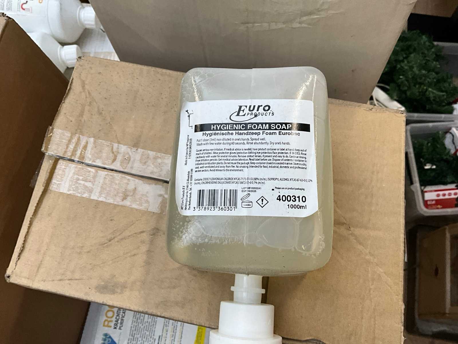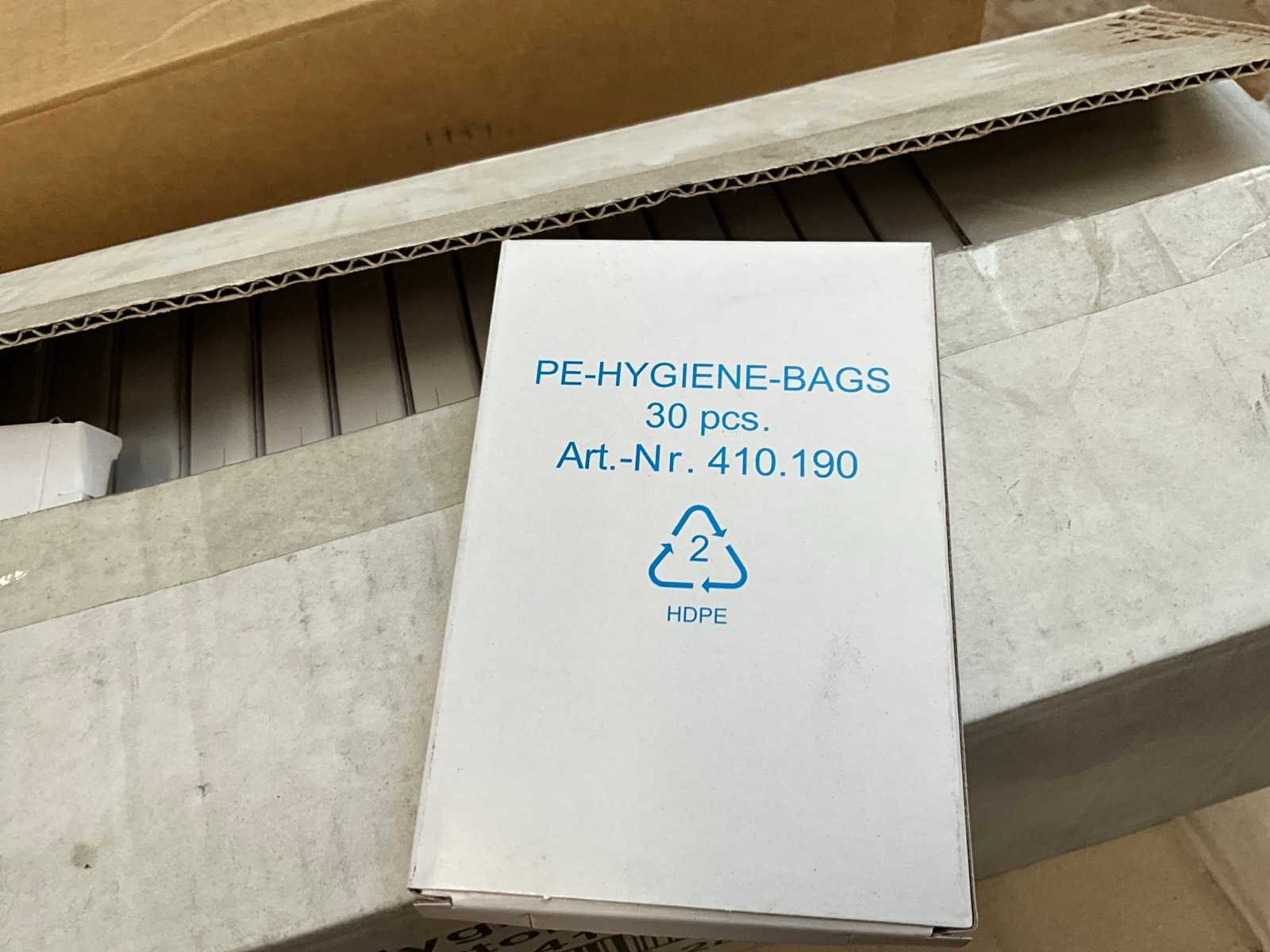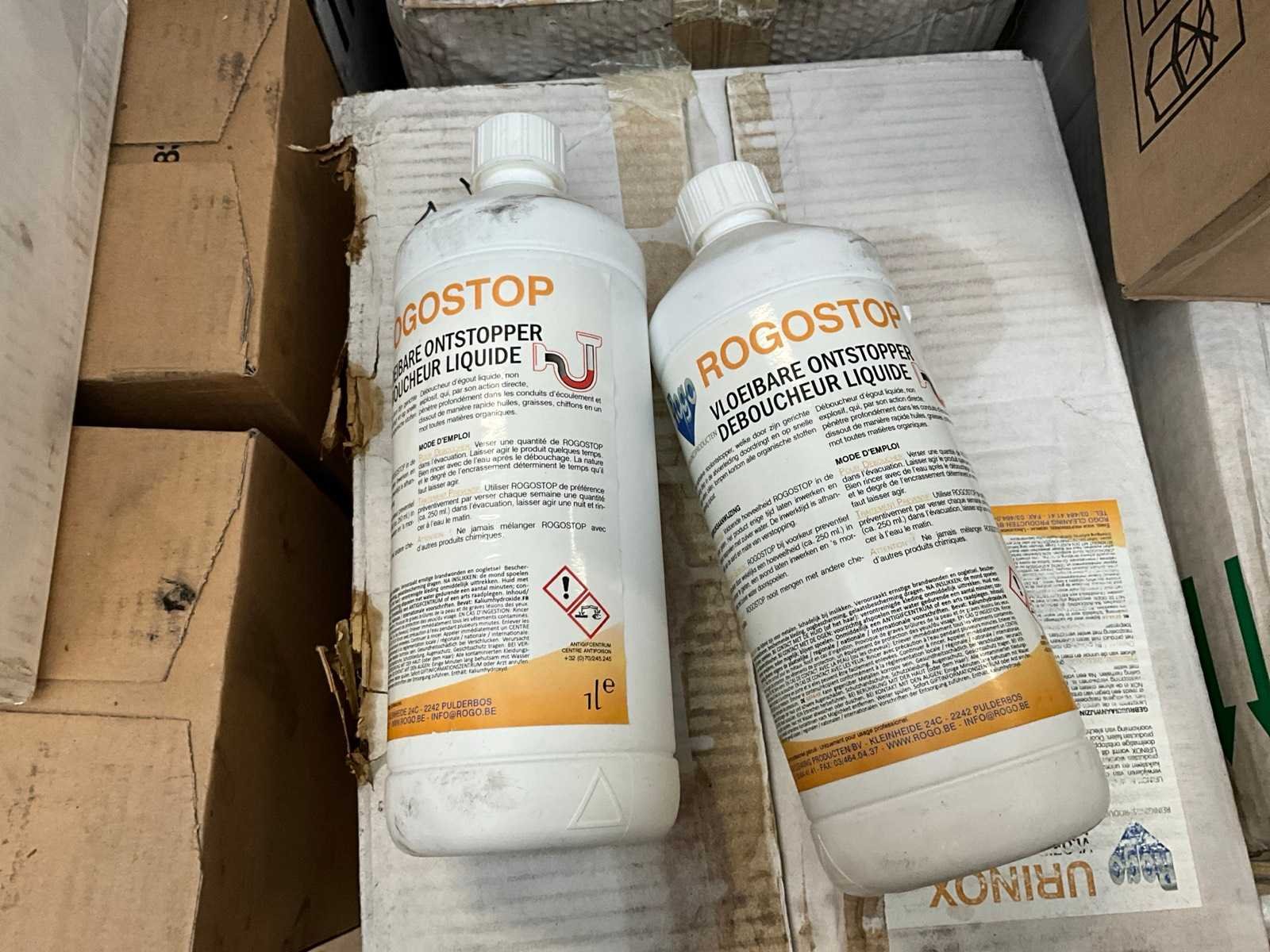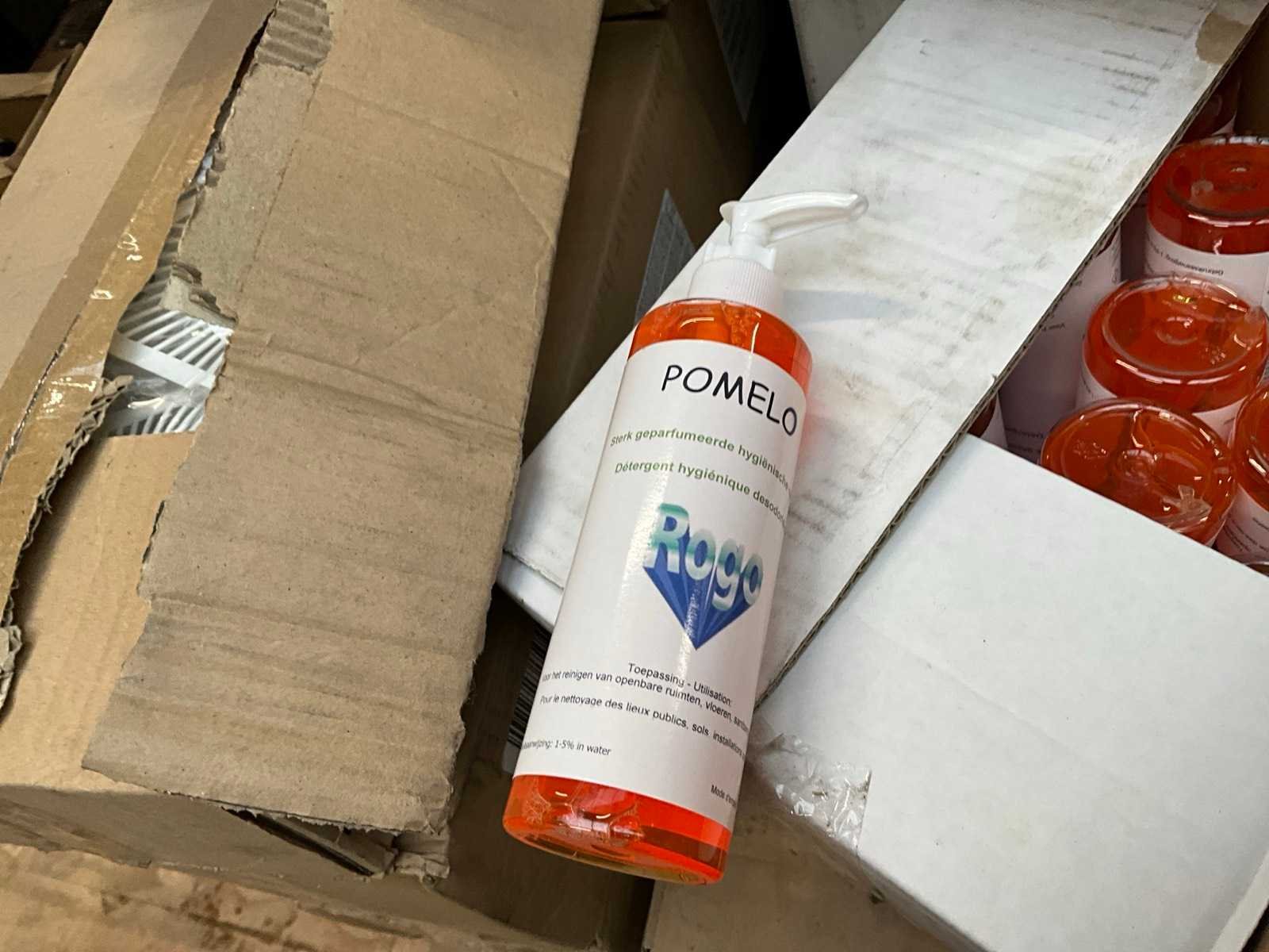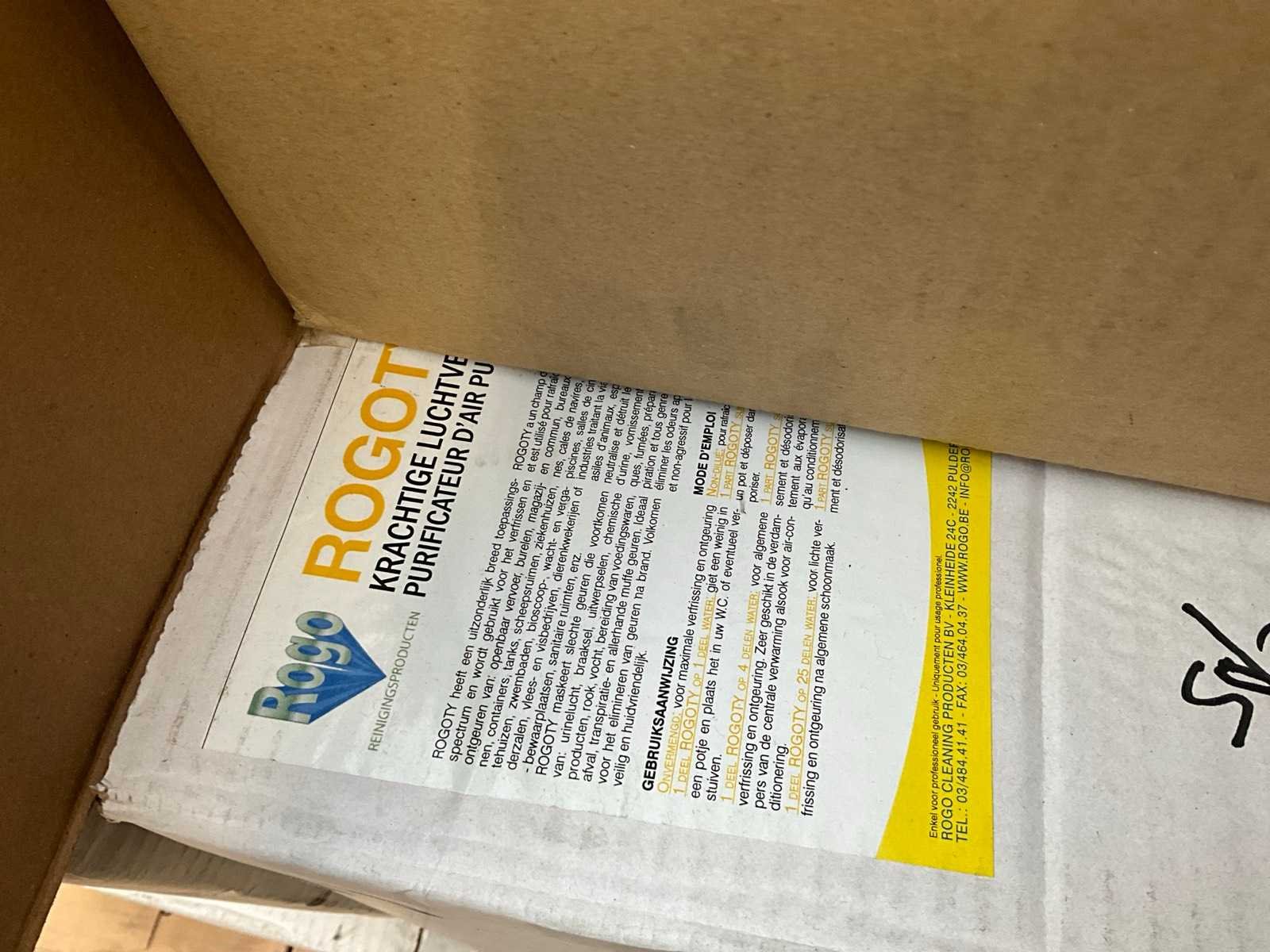 Diverse vloeibare schoonmaakmiddelen, trekker rubbers en plastic zakken