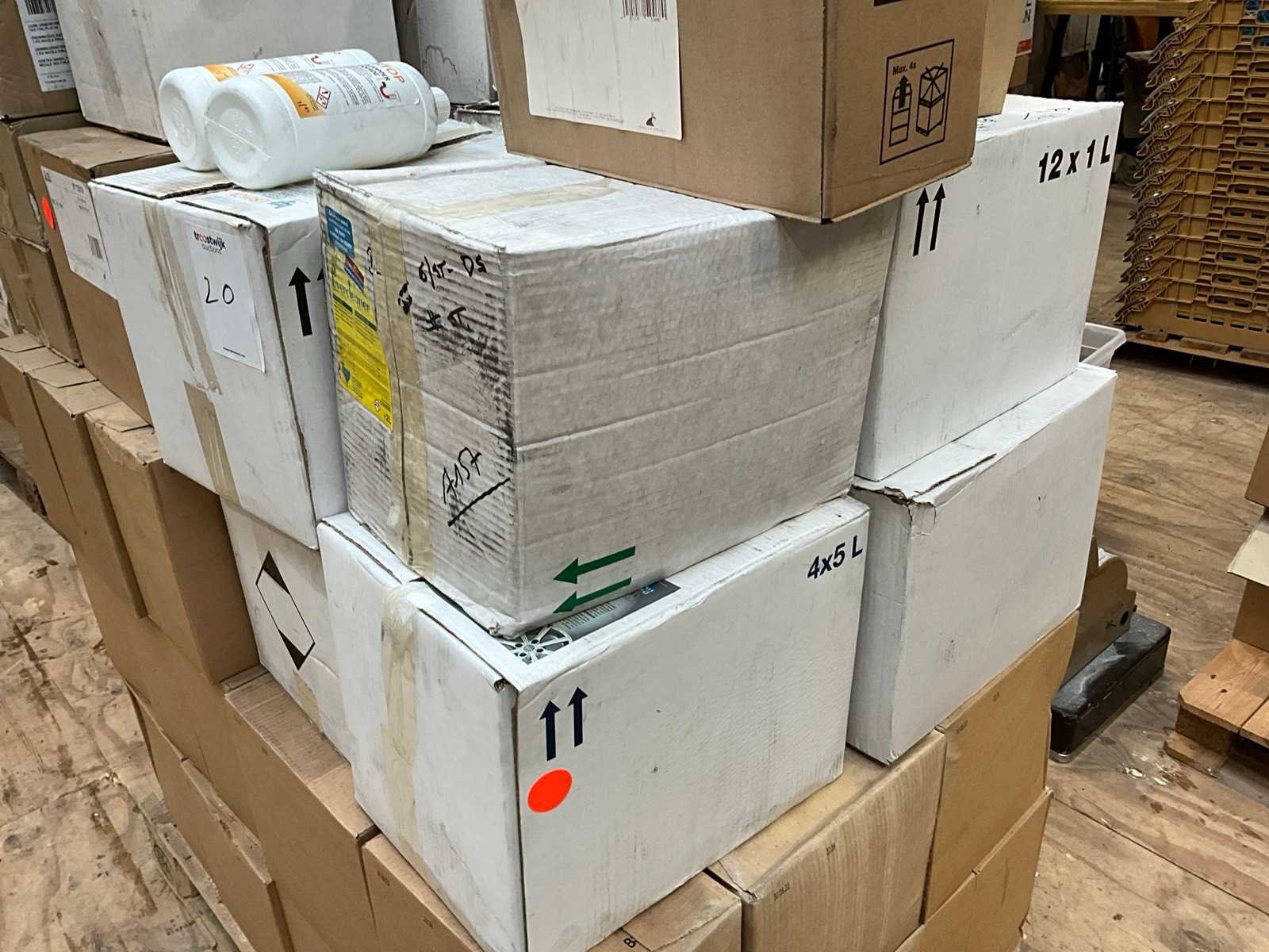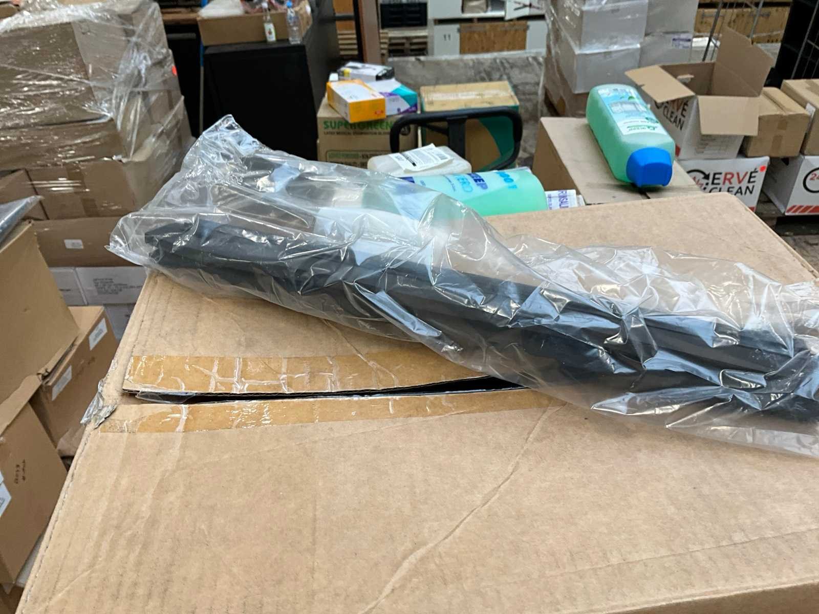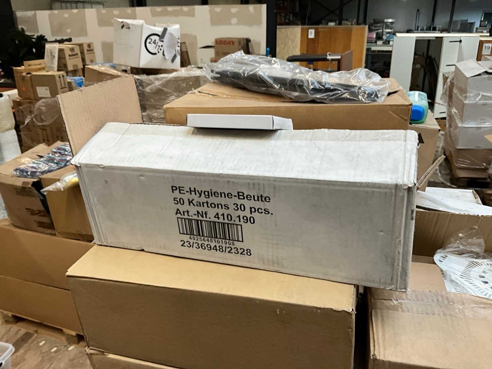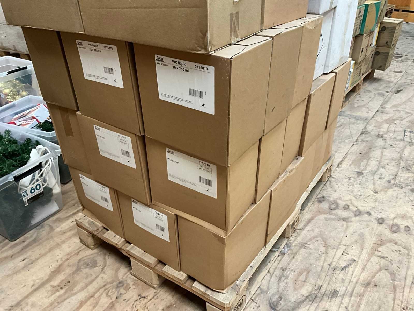 Diverse vloeibare schoonmaakmiddelen, trekker rubbers en plastic zakken
