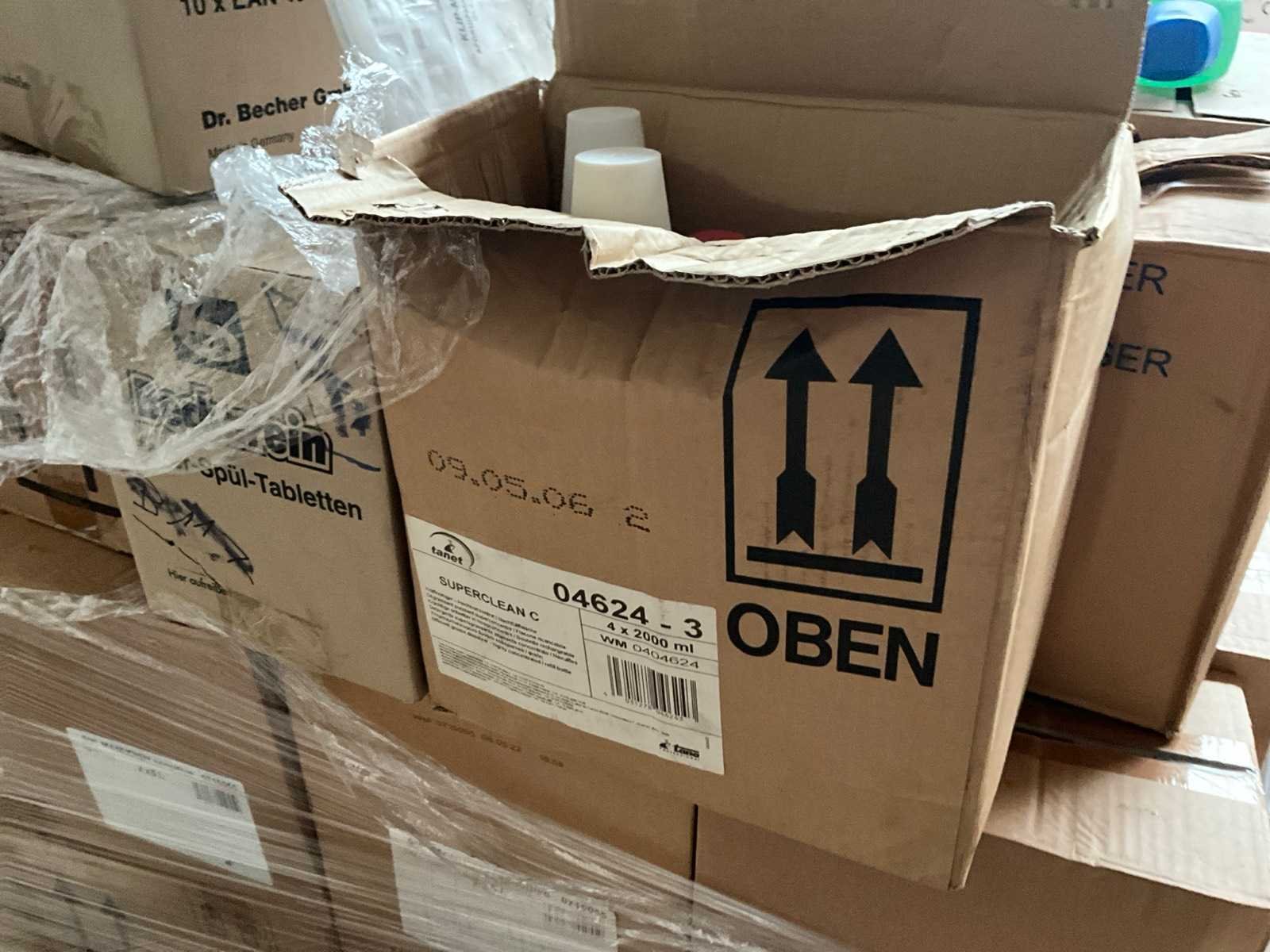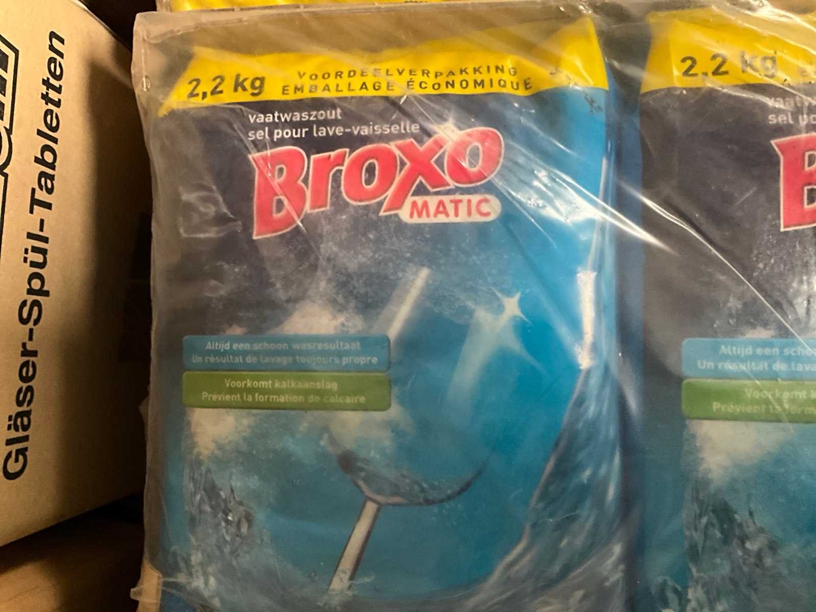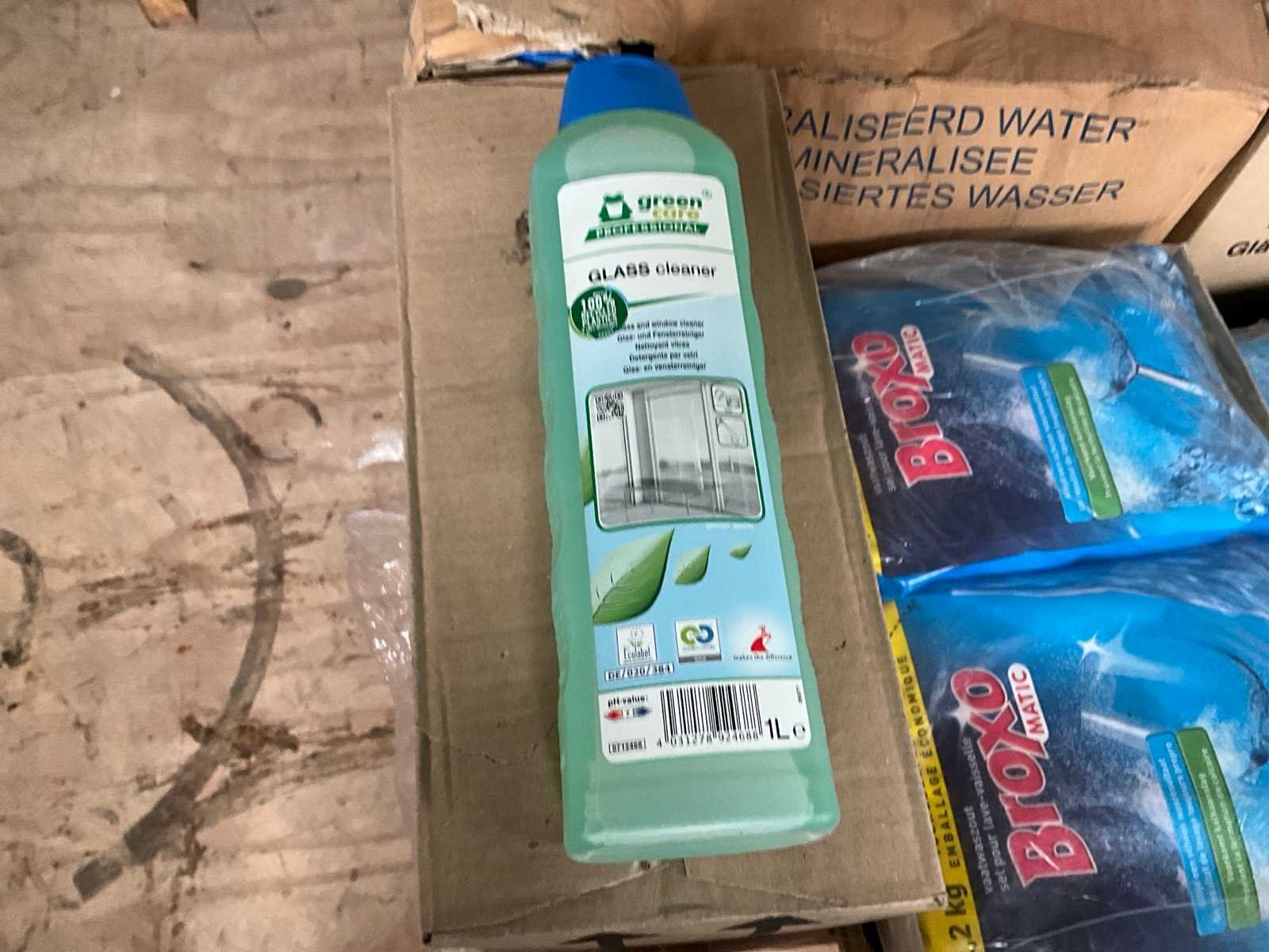 Bestaande uit, green care: manadish sensitive, Glass cleaner; Tanet: superclean C, Orange; Becher becharien en broxo matic vaatwasserzout