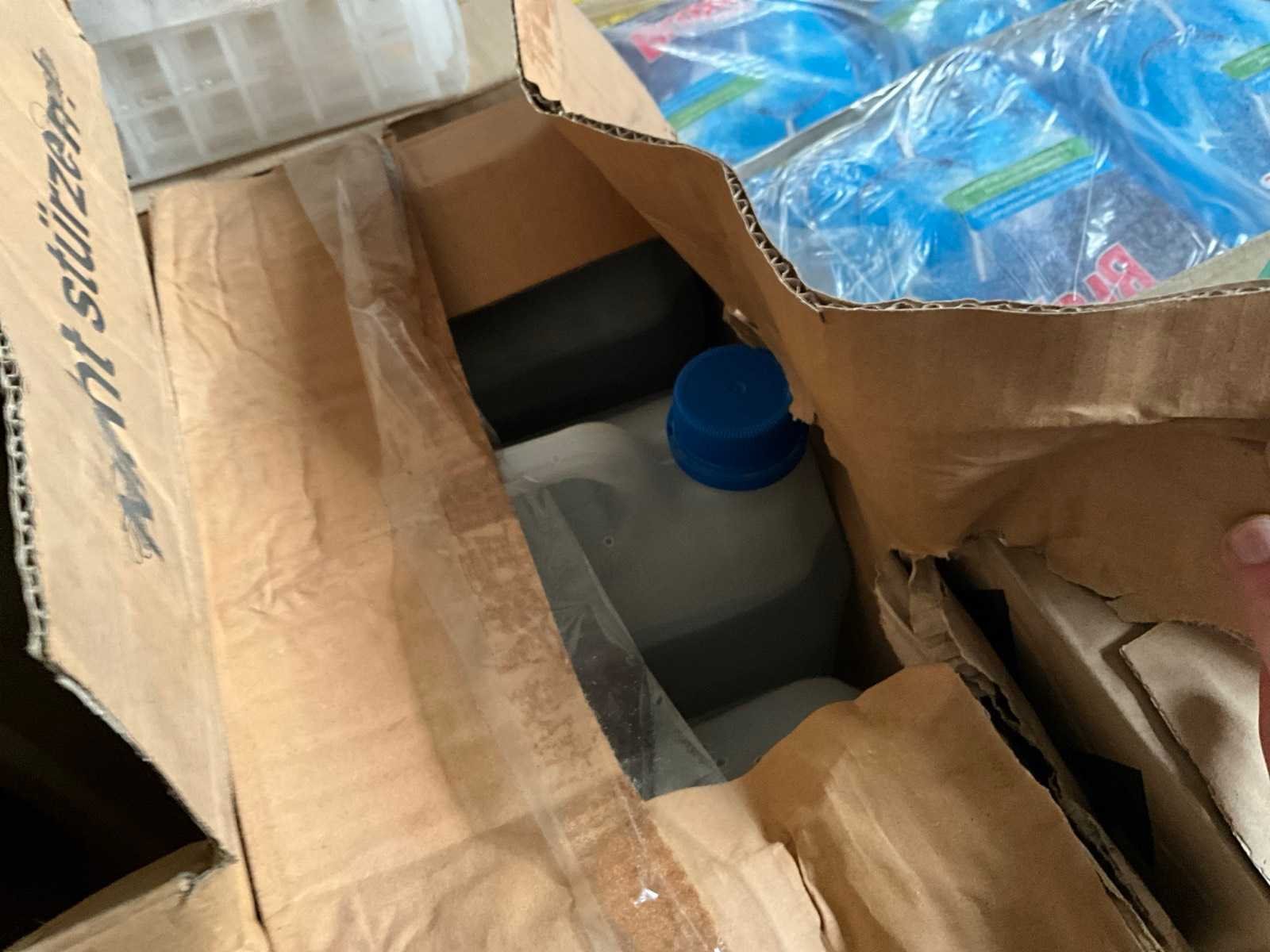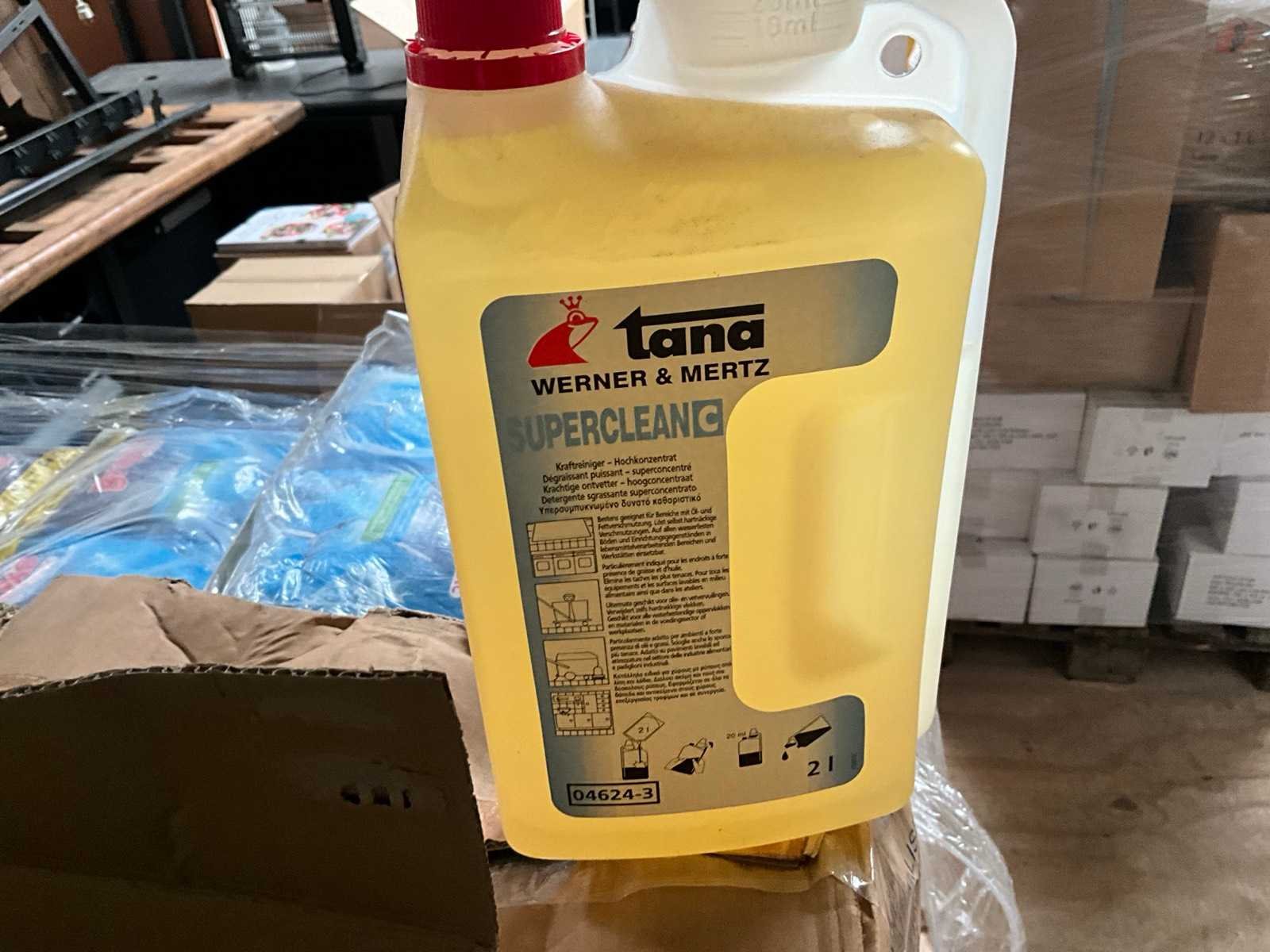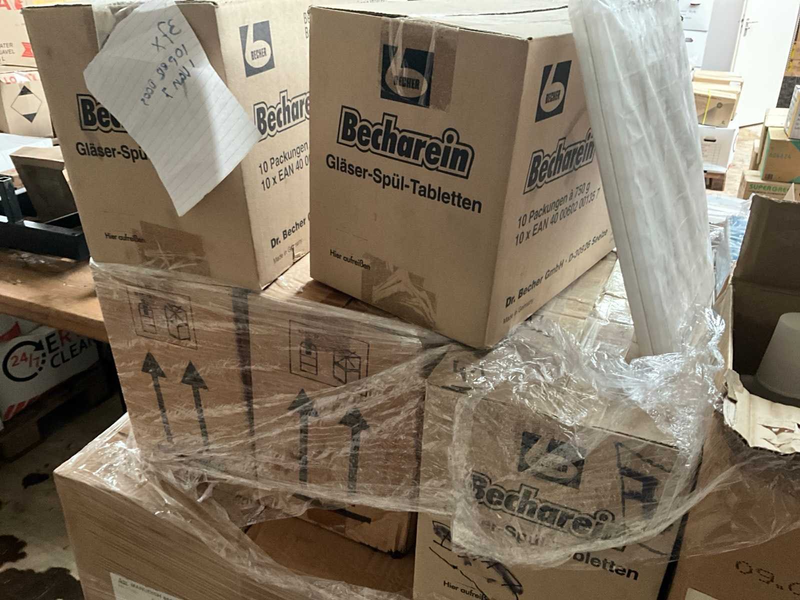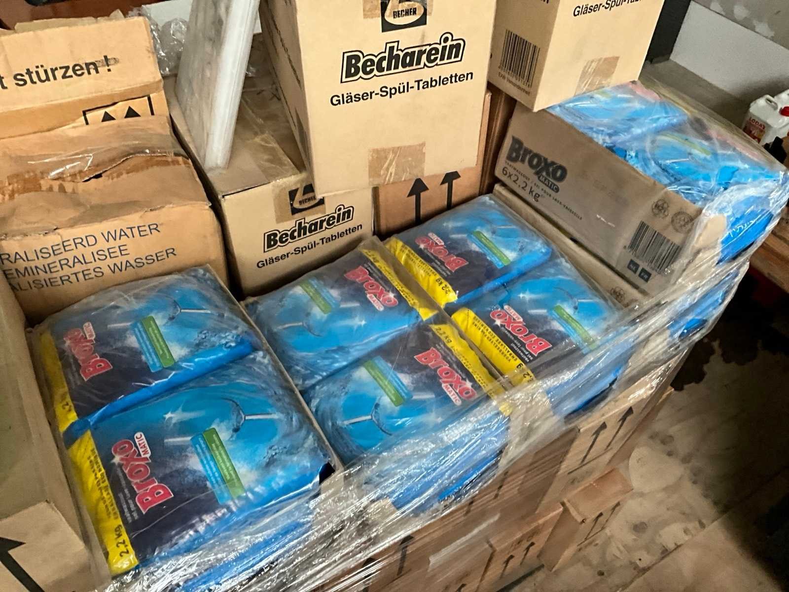 Bestaande uit, green care: manadish sensitive, Glass cleaner; Tanet: superclean C, Orange; Becher becharien en broxo matic vaatwasserzout