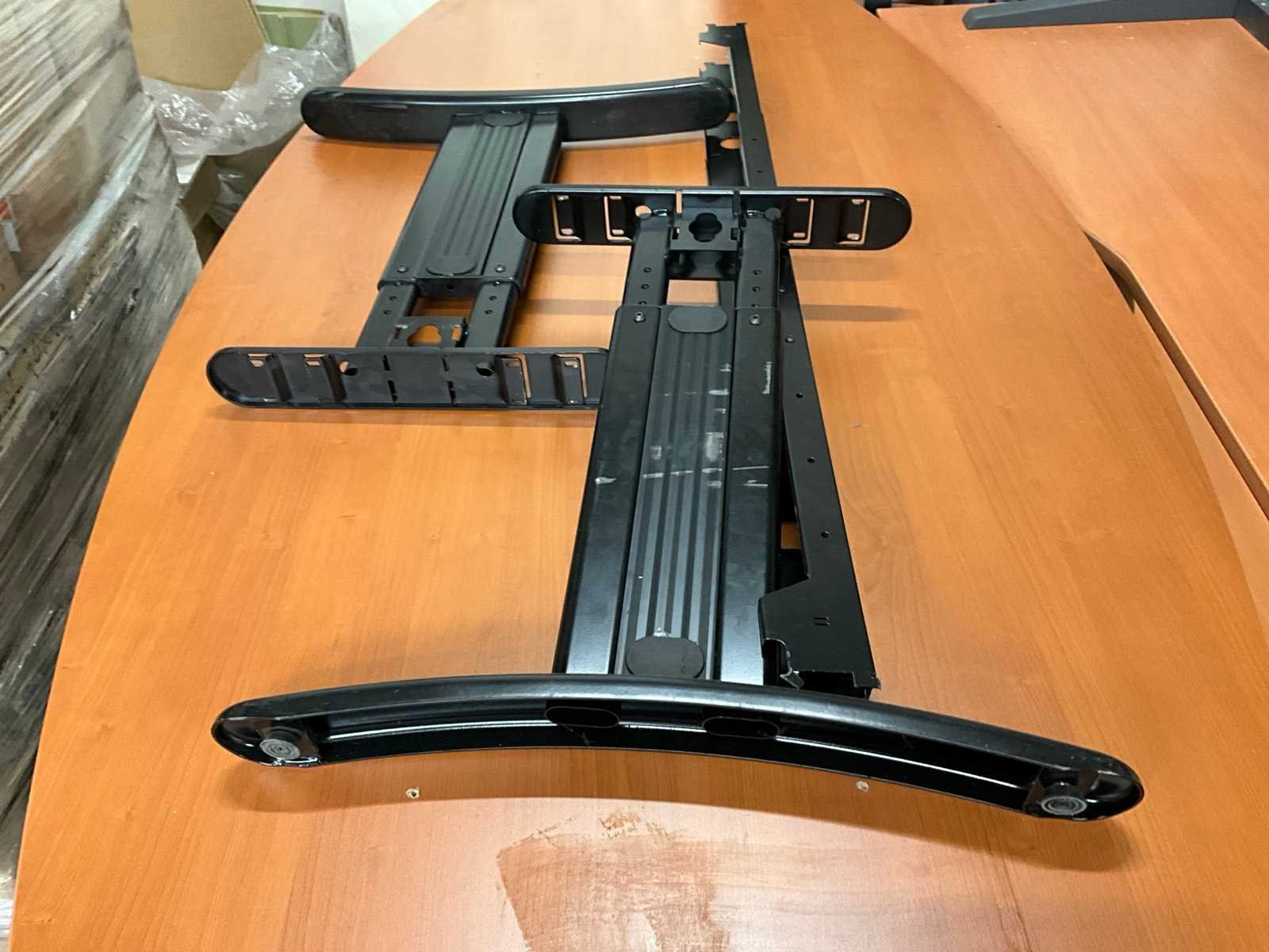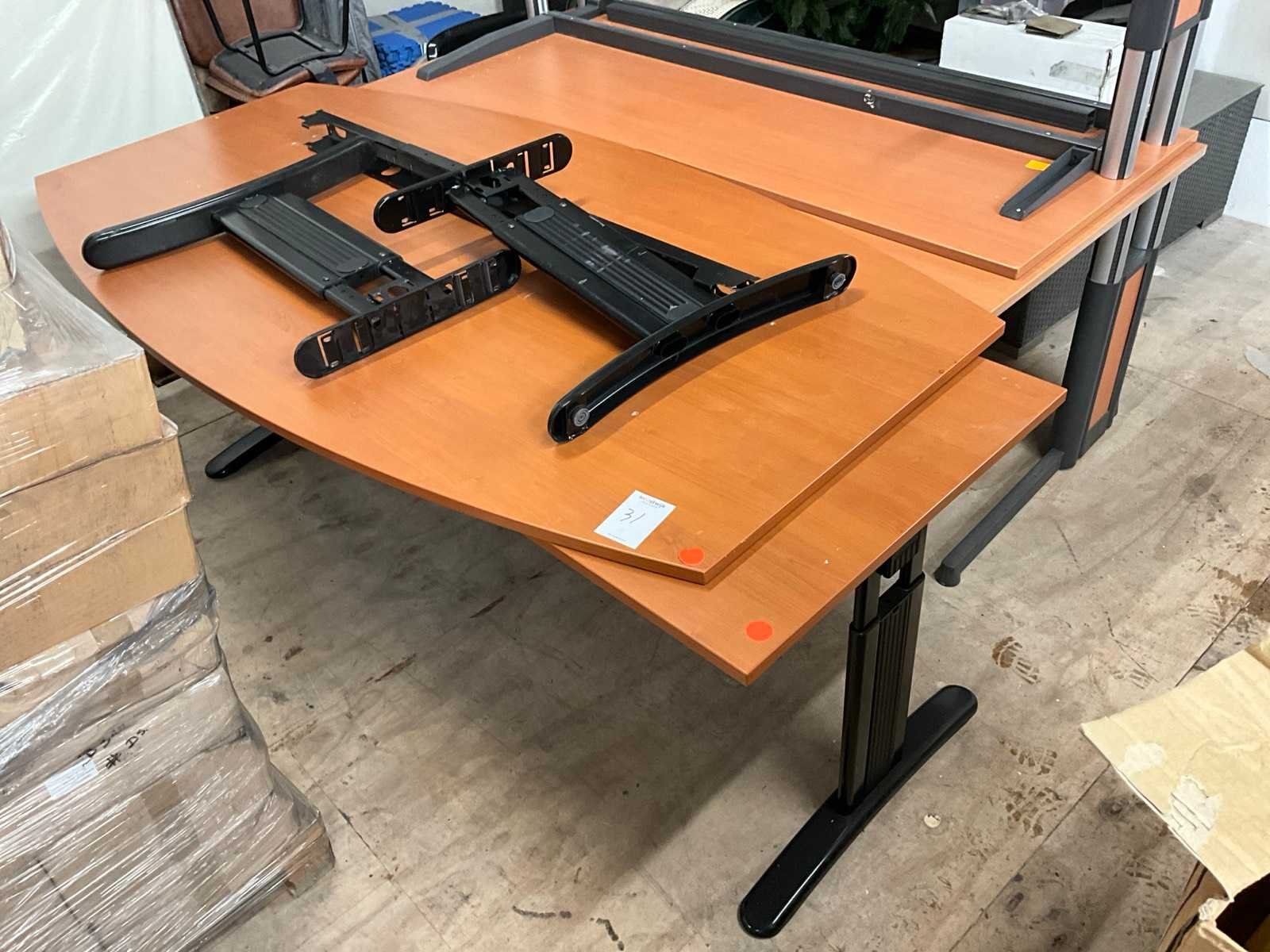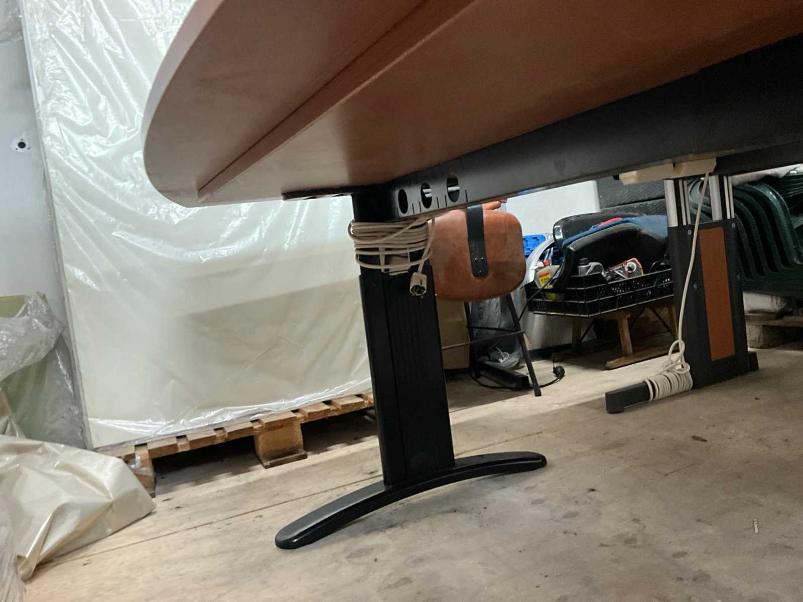 Hoogte handmatig verstelbaar, 1x ovaal blad, 1x recht, 1x poten los zonder bevestigingsmateriaal